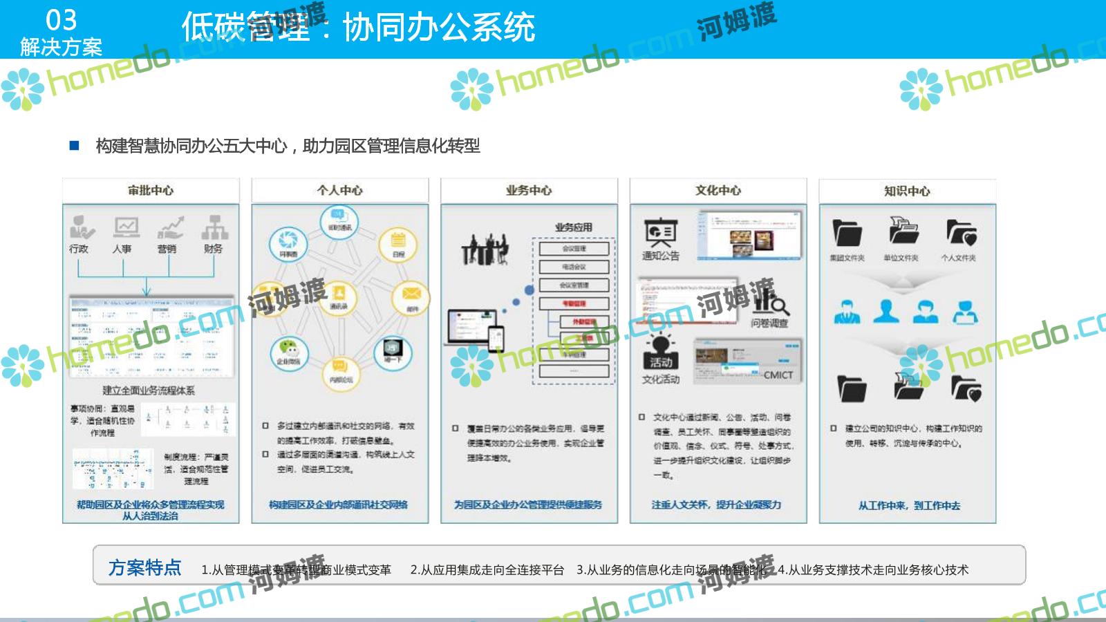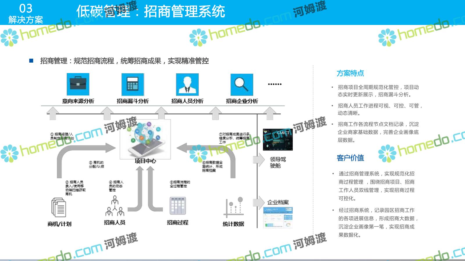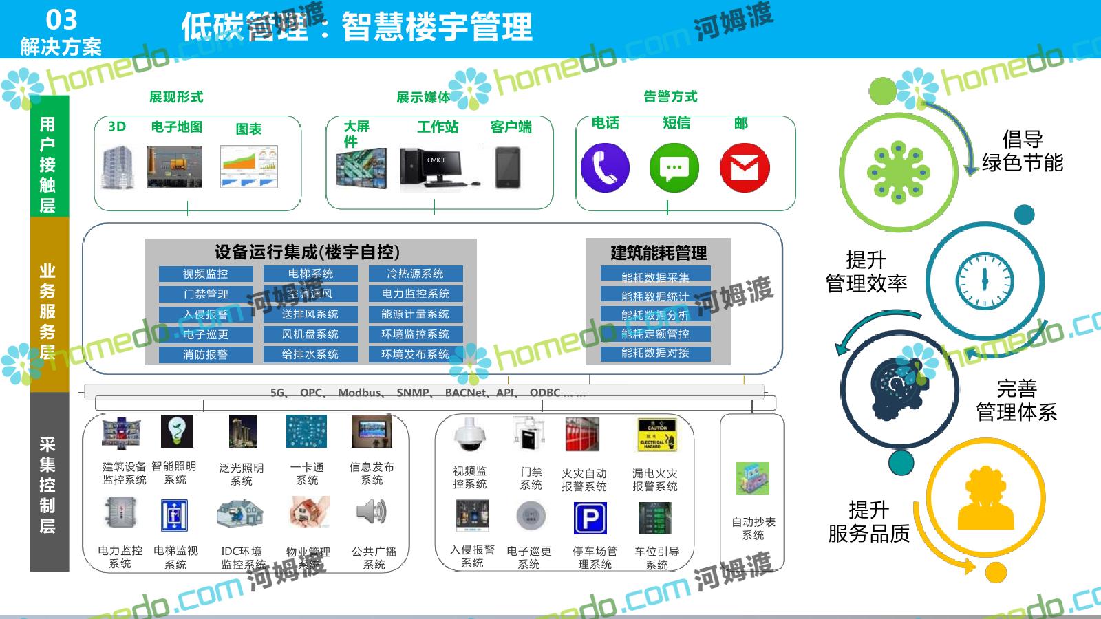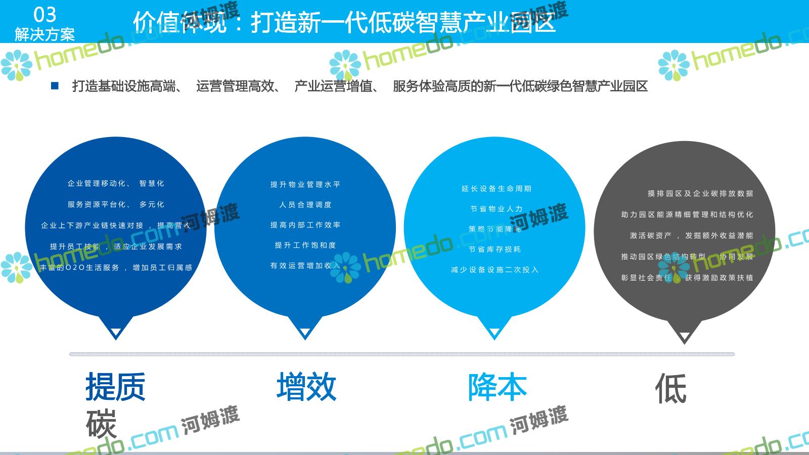 方案简介 围绕园区管理方、运营方、园区企业、园区公众四大主体,通过“智能底座+数字管控+绿色产服”的建设路径,中移 集成为园区提供“咨询规划、定制研发、实施交付、运营 推广”的一站式服务,做园区零碳转型的贴身管家。