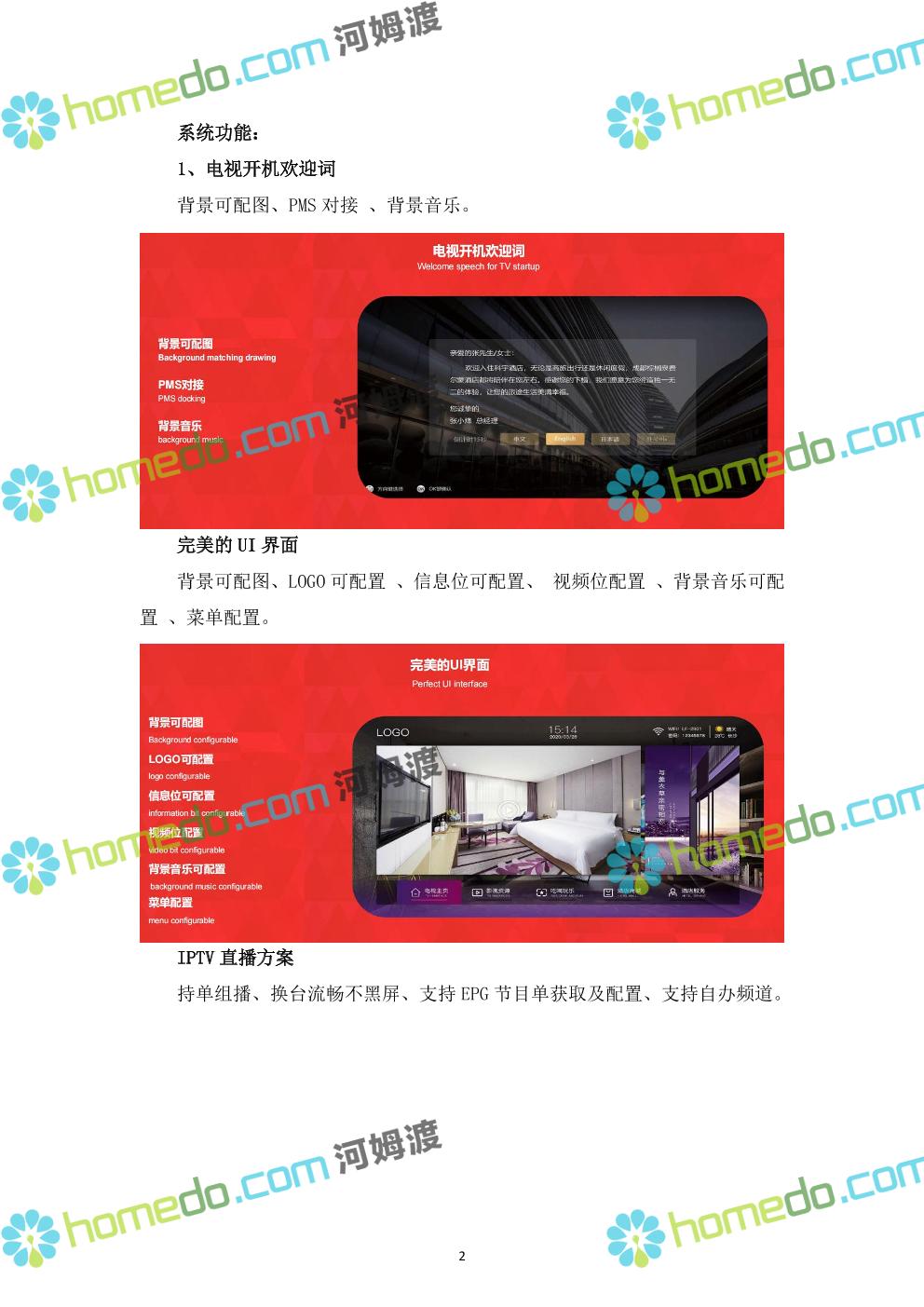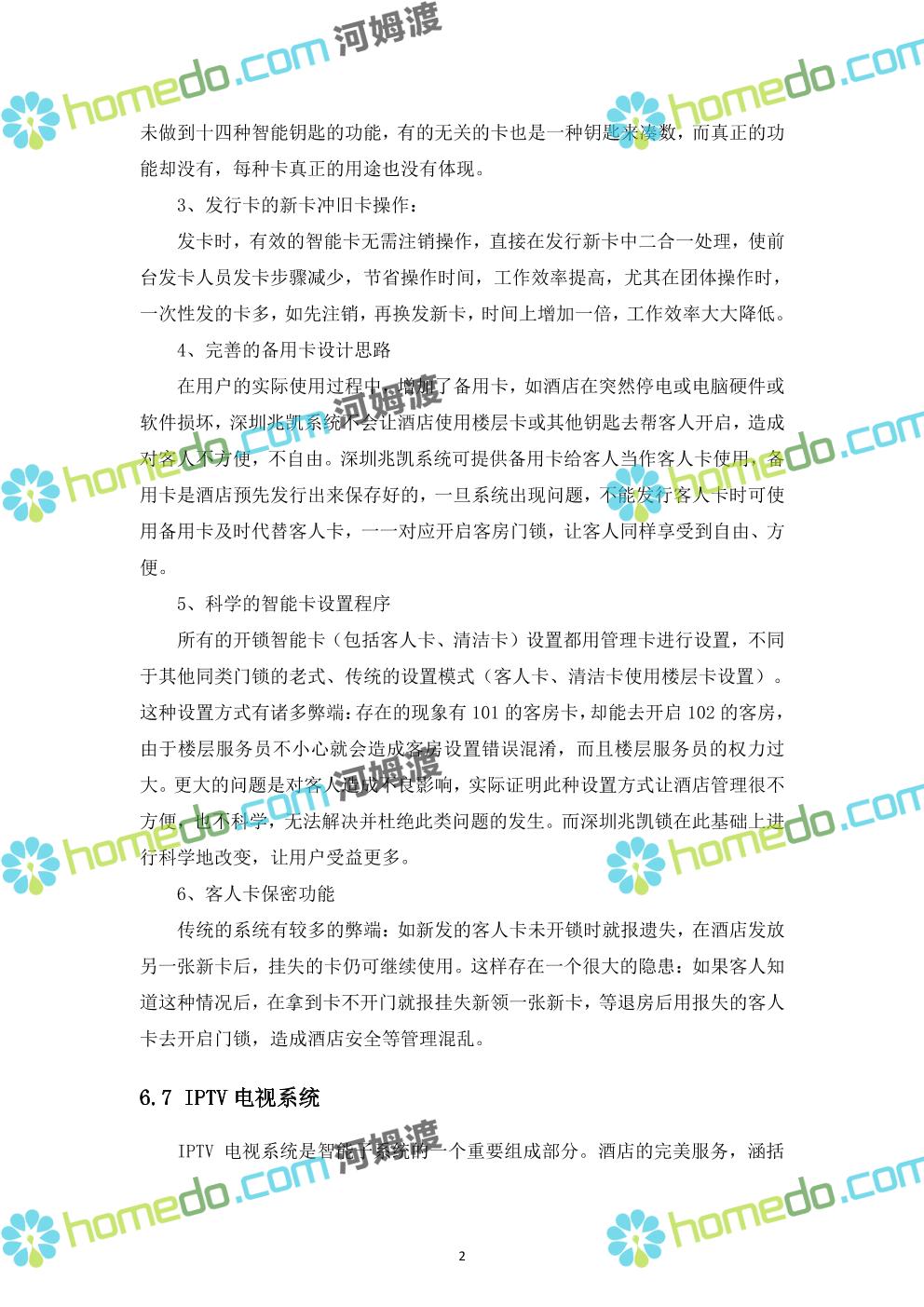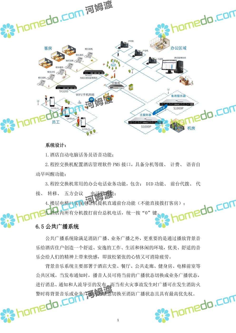 方案简介 ****酒店是一座集餐饮、住宿、休闲等服务于一体的专业酒店。针对酒店智能化系统工程的要求,为了适应娱乐业、餐饮业、休闲旅游业及商业服务业的发展,为客人提供更优质、更舒适、更快捷的服务;为提高酒店内部的管理效率和提升酒店的形象,结合我公司在酒店行业多年的设计及施工经验,就酒店智能化系统建设我公司提供如下设计方案。