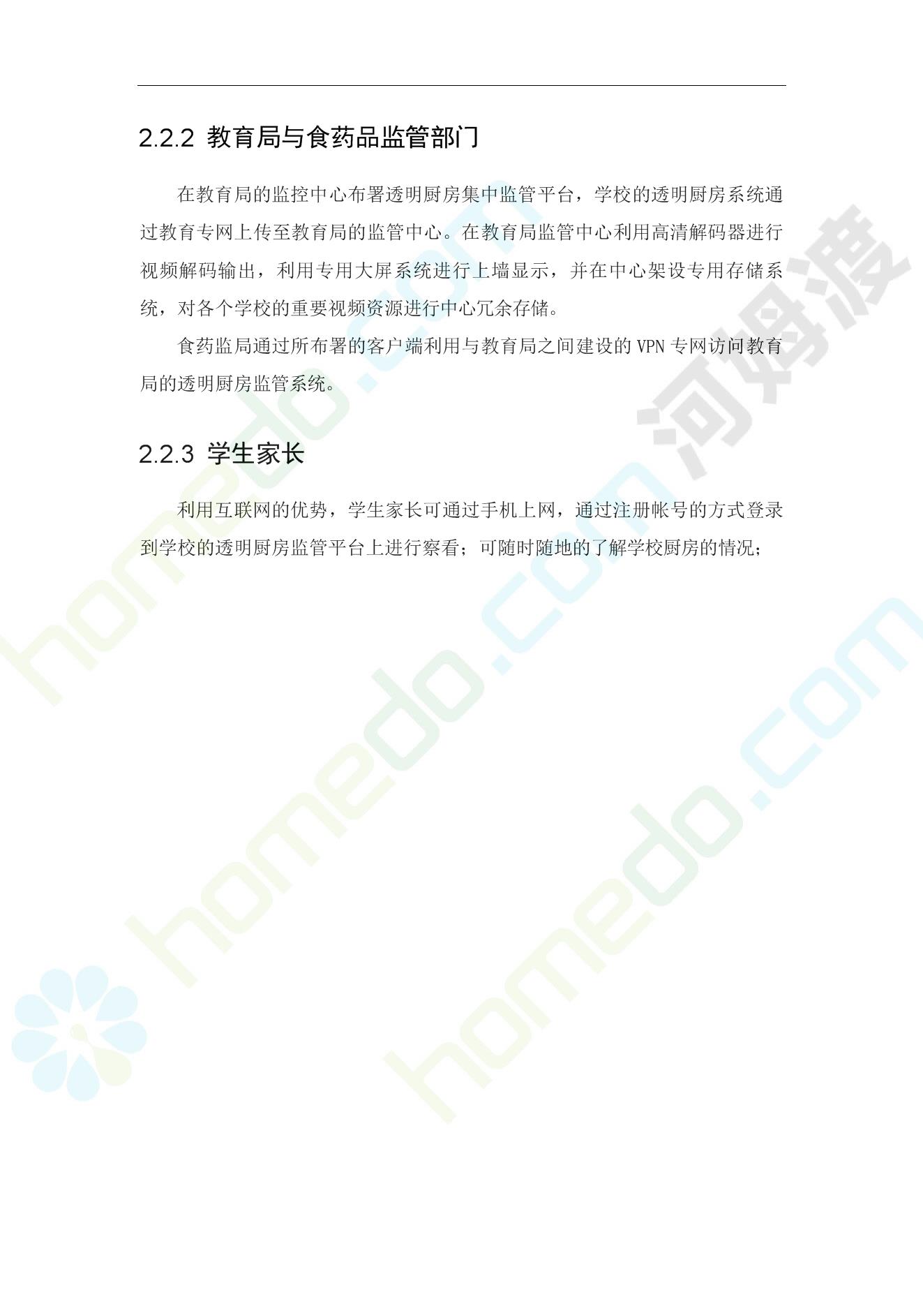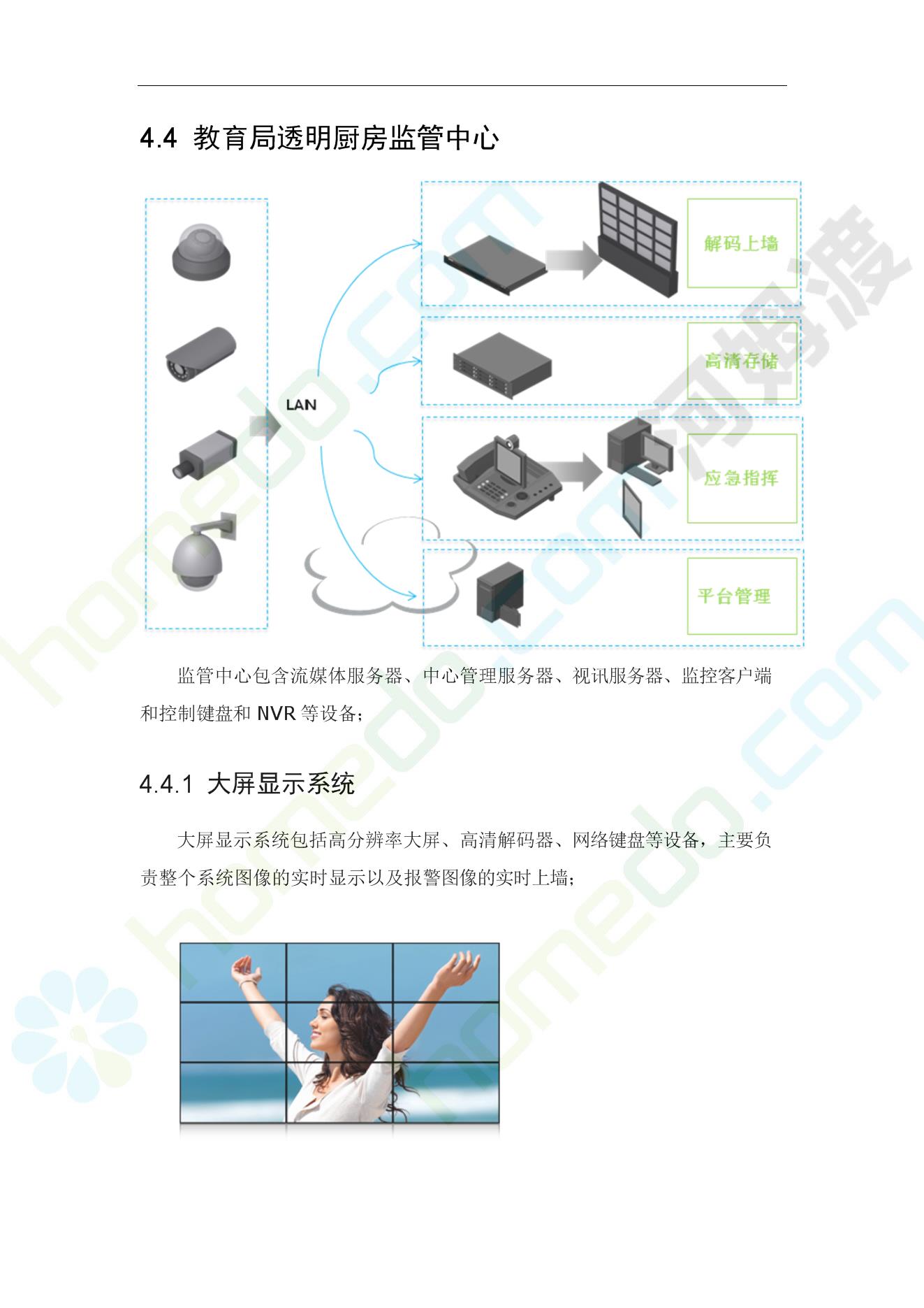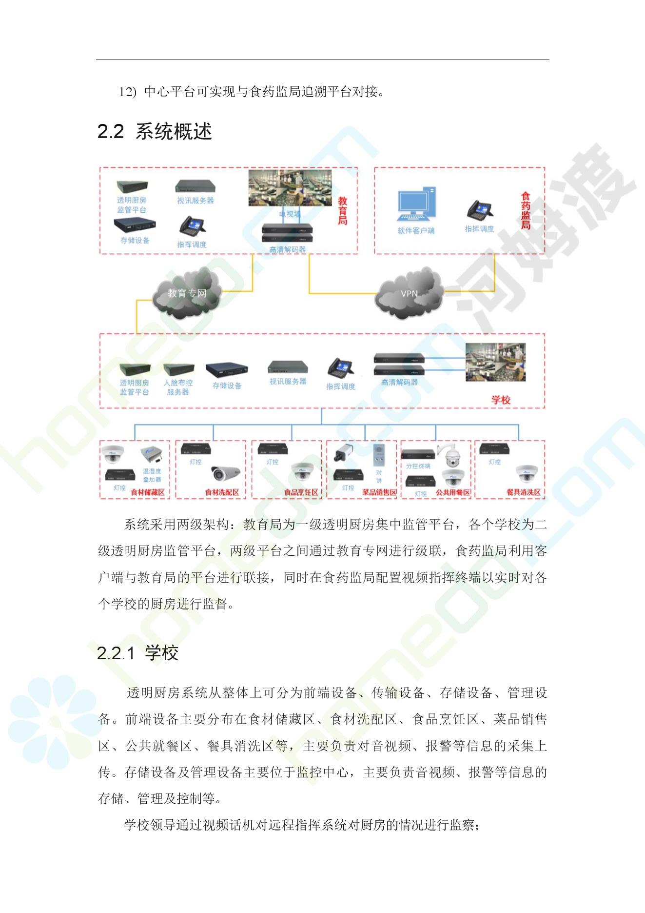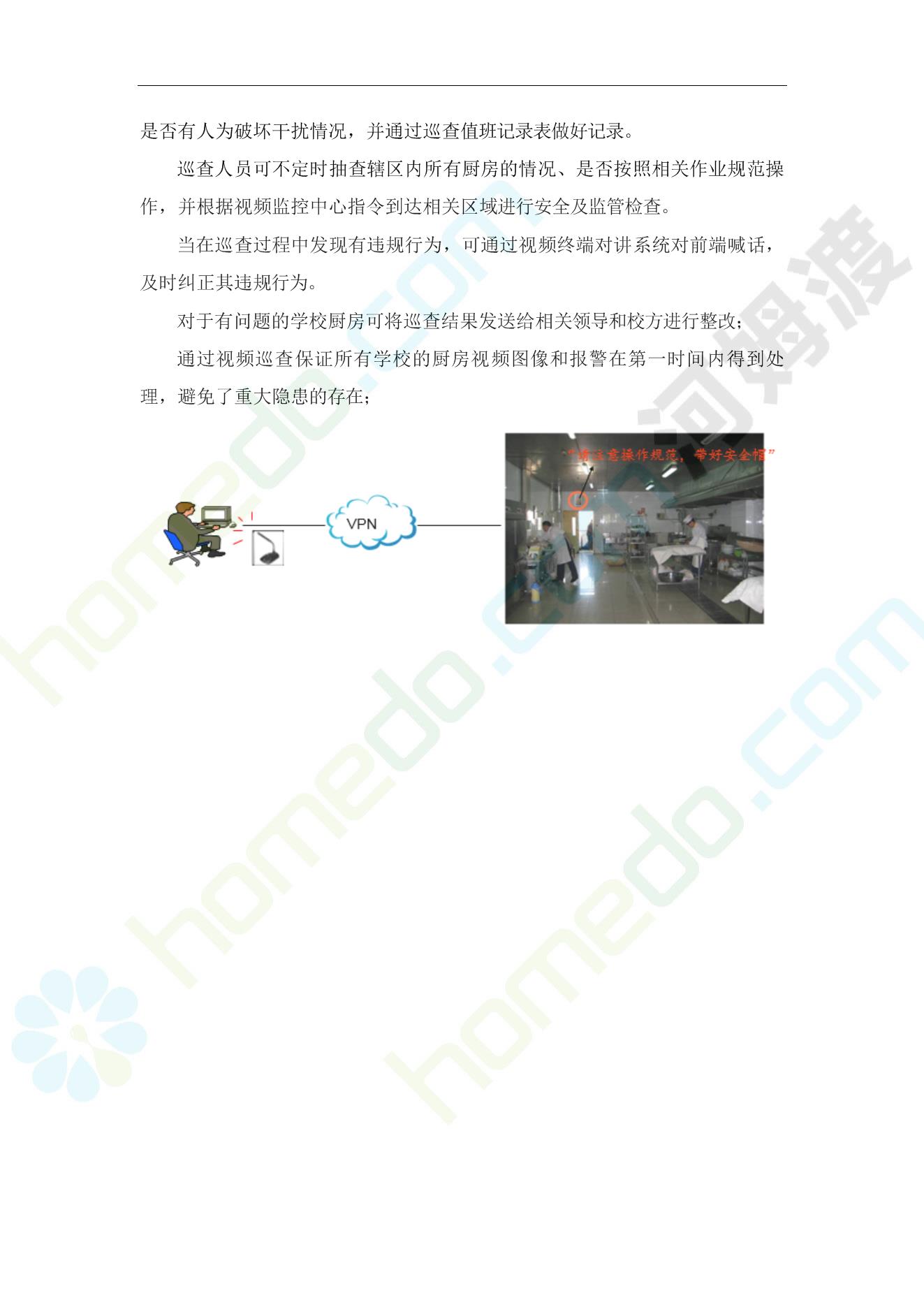 方案简介 病从口入,学校食堂食品卫生安全始终牵挂着每个家长的心。严控食品风险,防止学校食堂发生食物中毒事件。各级主管部门非常重视食品安全工作,每年都针对防控学校食物中毒进行部署并提出要求。大多数地方和学校都能按照上级文件要求,结合本地实际,认真落实各项食品安全管理制度与措施。但是,仍有少数地方和学校对食品安全管理和传染病防控管理不到位,措施落实不力,存在不少漏洞和隐患,食物中毒和肠道传染病流行事件时有发生。恶心、呕吐、腹泻、发热、腹痛等事件的发生,影响了学生的身体健康和学校正常秩序。 因此教育主管部门、卫生部门以及安检等部门,强烈要求启动“透明厨房”建设工程,通过强化校园食堂现场管理实现多层次、多角度、