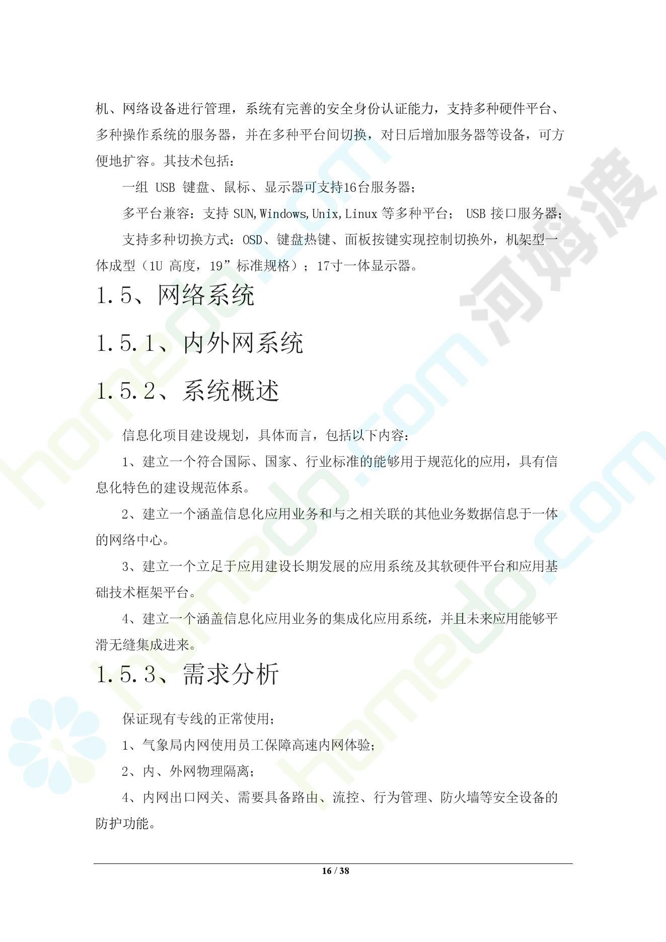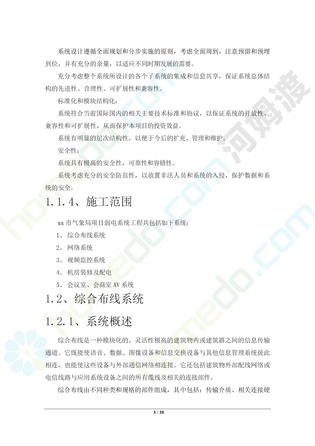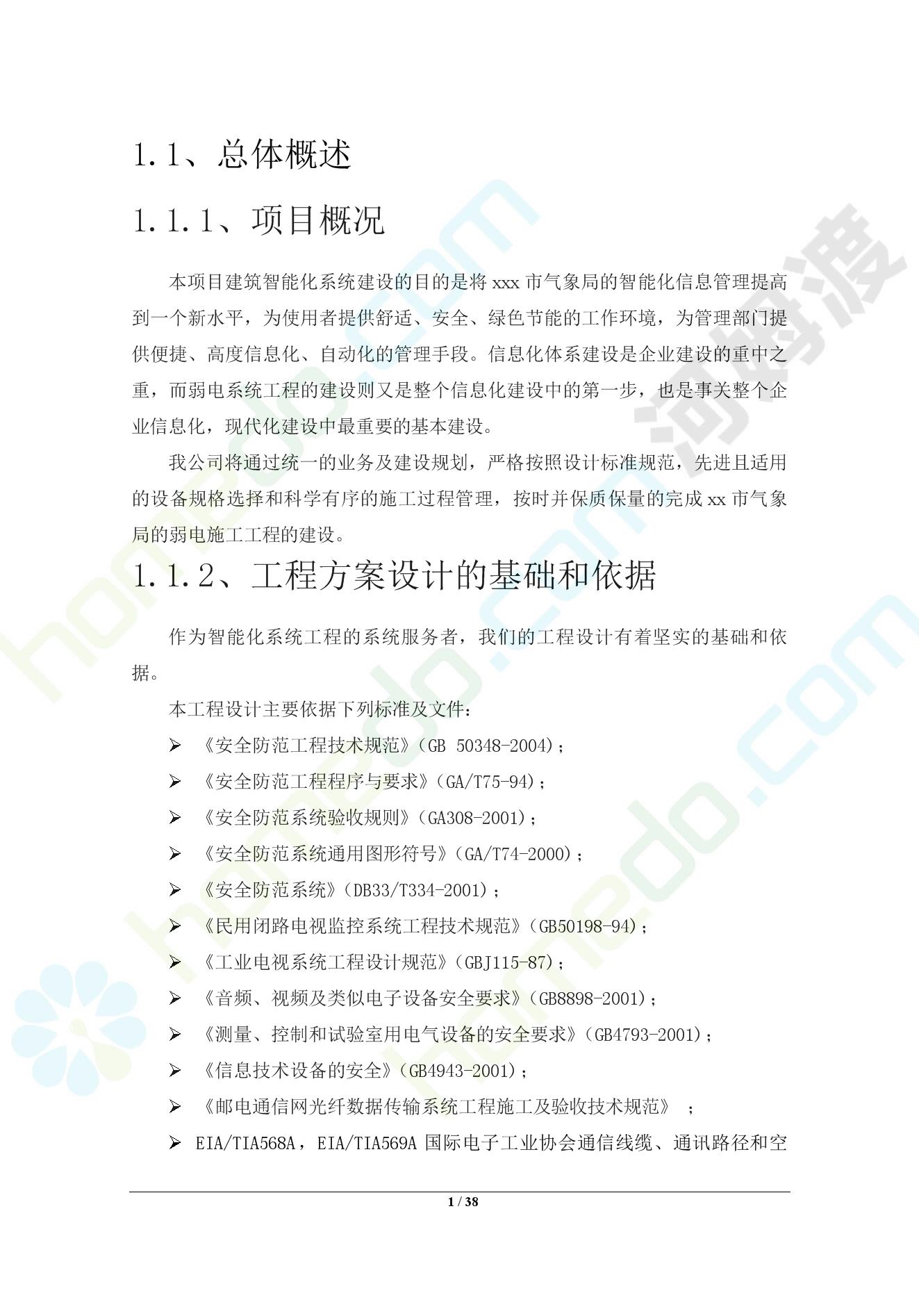 方案简介 本项目建筑智能化系统建设的目的是将xxx市气象局的智能化信息管理提高到一个新水平,为使用者提供舒适、安全、绿色节能的工作环境,为管理部门提供便捷、高度信息化、自动化的管理手段。信息化体系建设是企业建设的重中之重,而弱电系统工程的建设则又是整个信息化建设中的第一步,也是事关整个企业信息化,现代化建设中最重要的基本建设