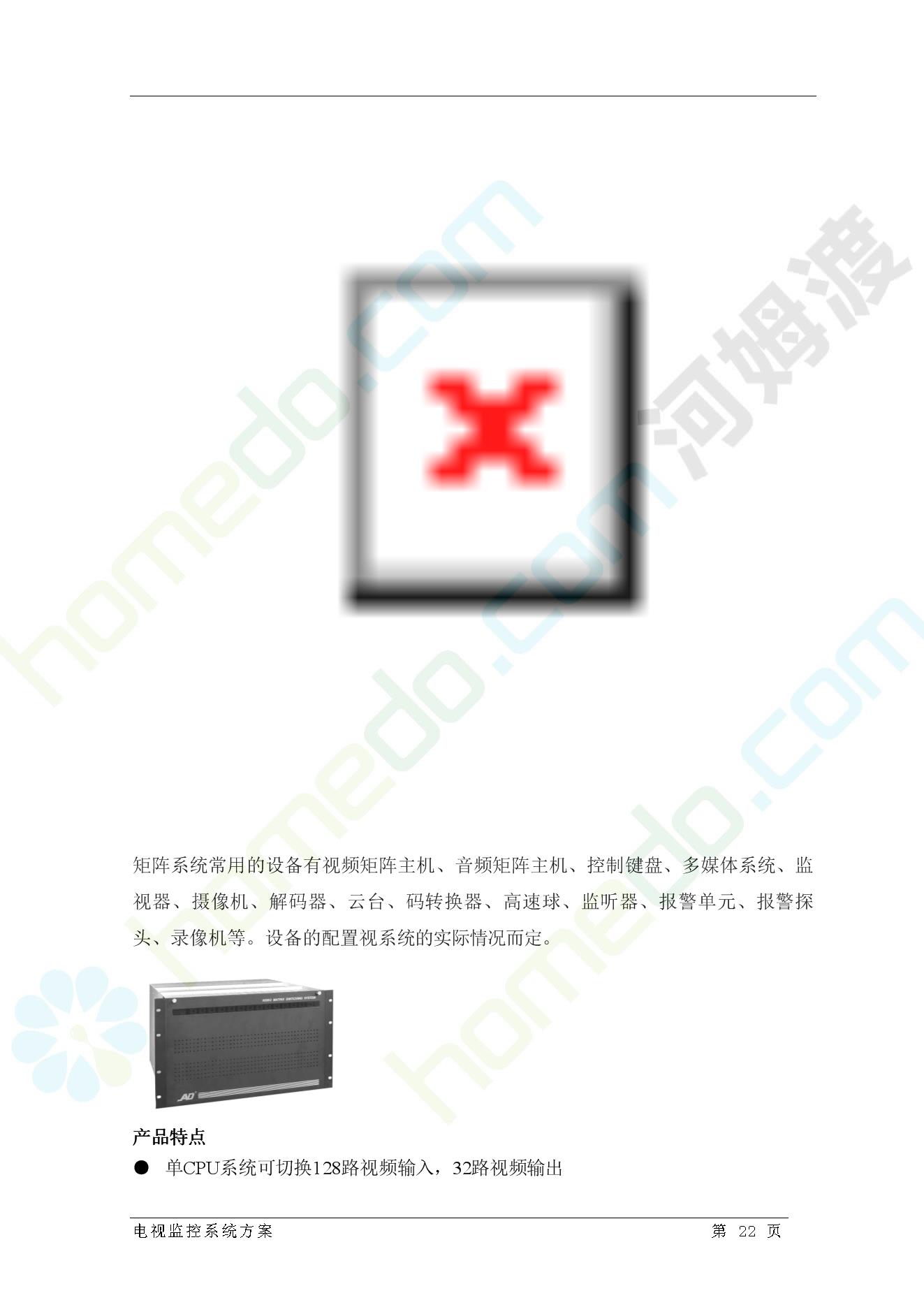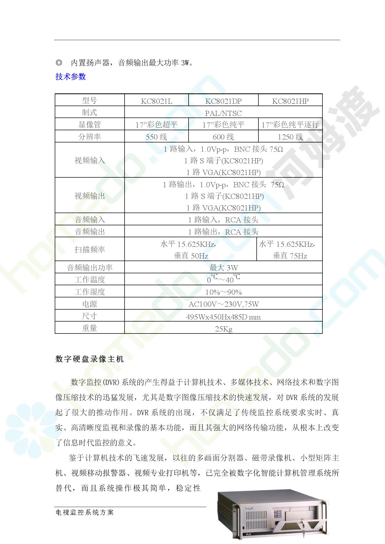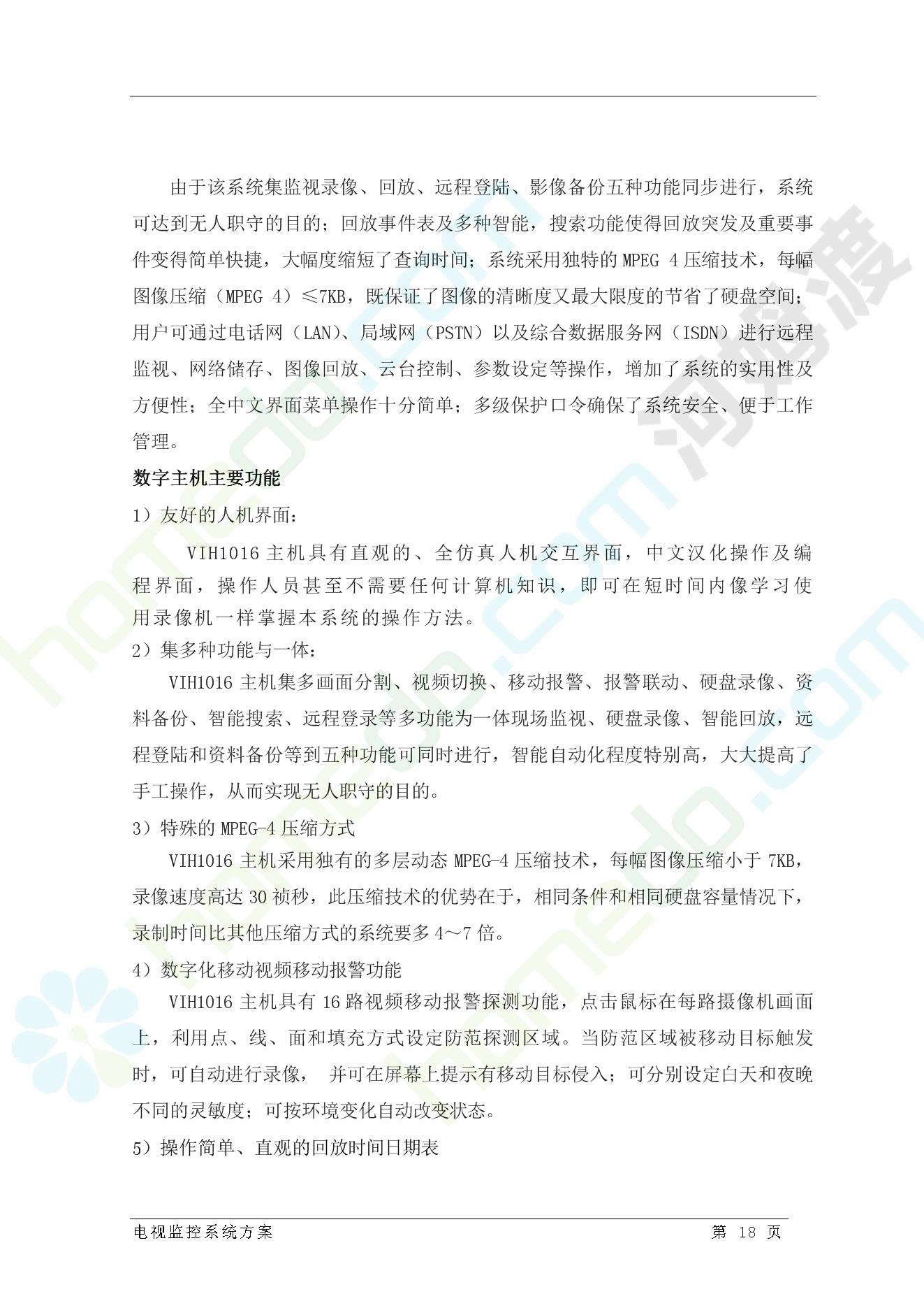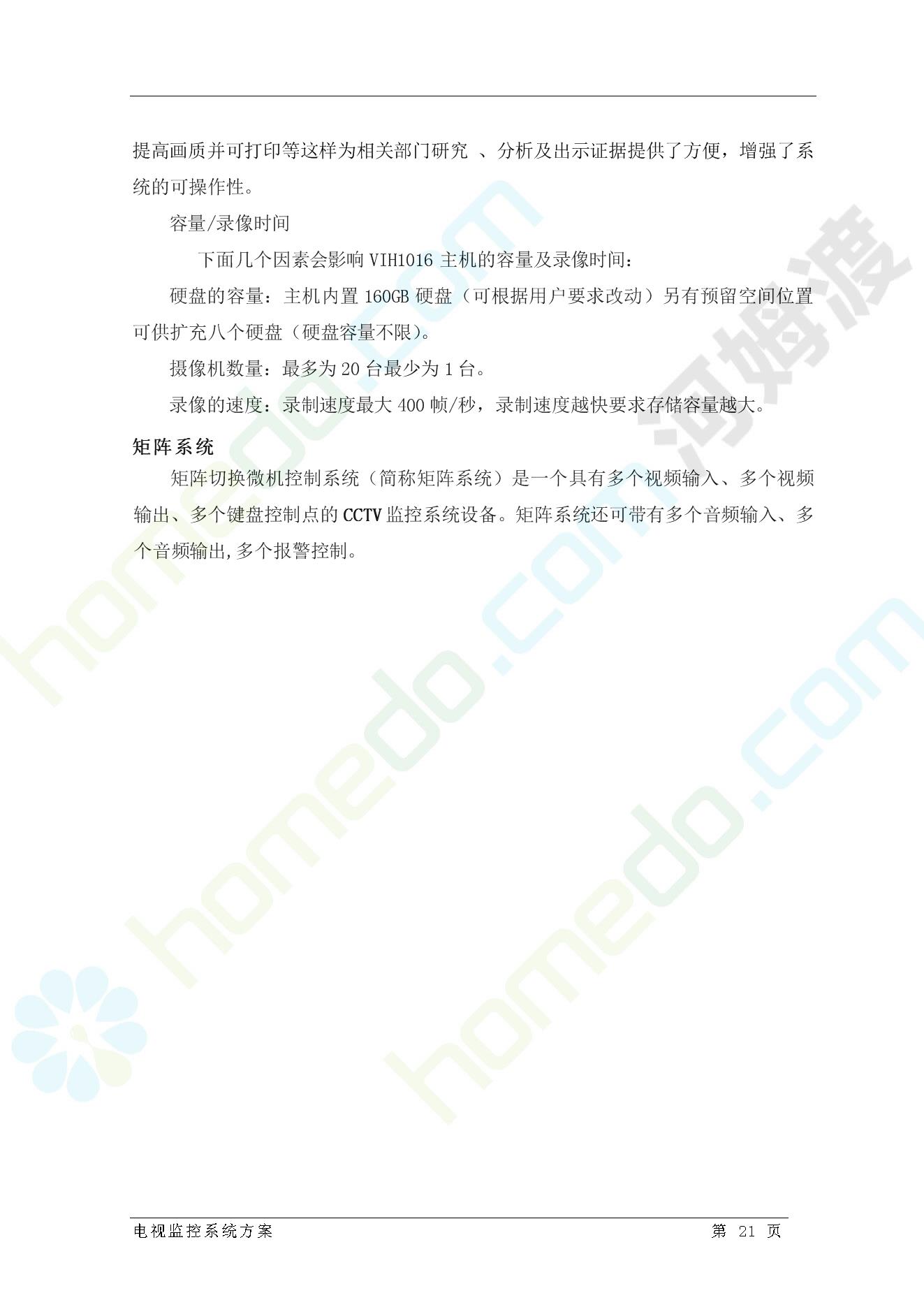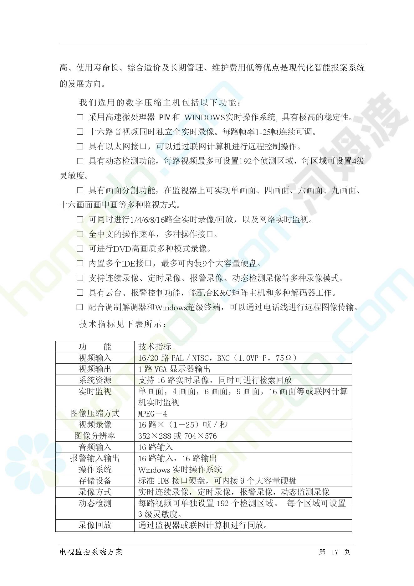 方案简介 第一章. 系统概述 2 第二章. 设计依据和原则 3 2.1. 设计依据 3 2.2. 设计原则 3 第三章. 设计思想 4 第四章. 系统总体设计 5 4.1. 布点原则 5 4.2. 方案优选 5 4.3. 技术防范重点 7 第五章. 系统组成 8 5.1. 系统组成 8 5.2. 系统指标 8 第六章. 设备选型 9 6.1. 前端器材布置 9 6.2. 摄像机安装及效果 9 6.3. 选用产品性能概述 11 第七章. 中控室的环境要求 26 第八章. 管线敷设要求 27 8.1. 电缆敷设: 27 8.2. 抗干扰措施: 27 第九章. 防雷接地 28