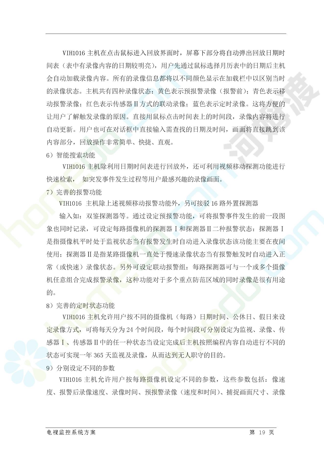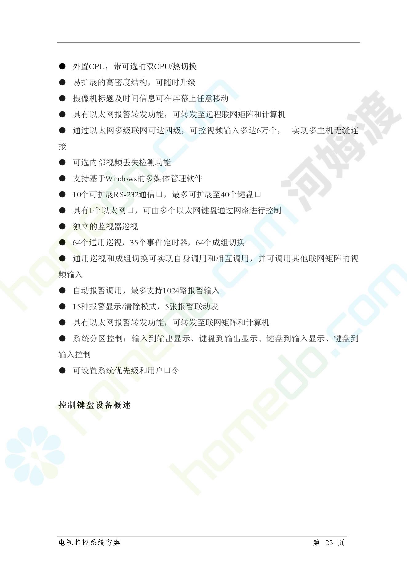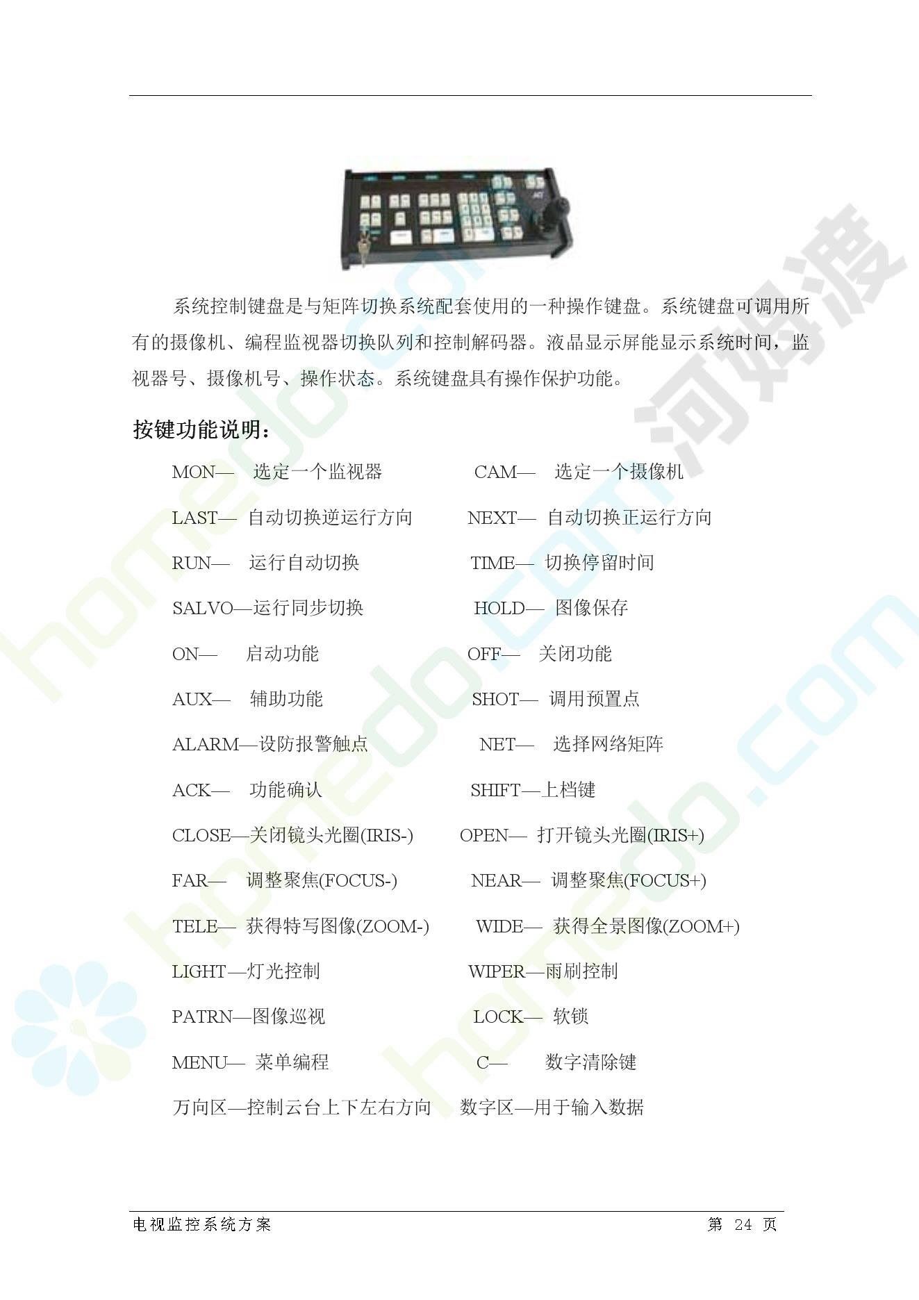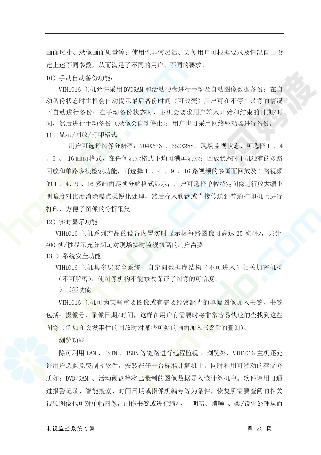 方案简介 第一章. 系统概述 2 第二章. 设计依据和原则 3 2.1. 设计依据 3 2.2. 设计原则 3 第三章. 设计思想 4 第四章. 系统总体设计 5 4.1. 布点原则 5 4.2. 方案优选 5 4.3. 技术防范重点 7 第五章. 系统组成 8 5.1. 系统组成 8 5.2. 系统指标 8 第六章. 设备选型 9 6.1. 前端器材布置 9 6.2. 摄像机安装及效果 9 6.3. 选用产品性能概述 11 第七章. 中控室的环境要求 26 第八章. 管线敷设要求 27 8.1. 电缆敷设: 27 8.2. 抗干扰措施: 27 第九章. 防雷接地 28