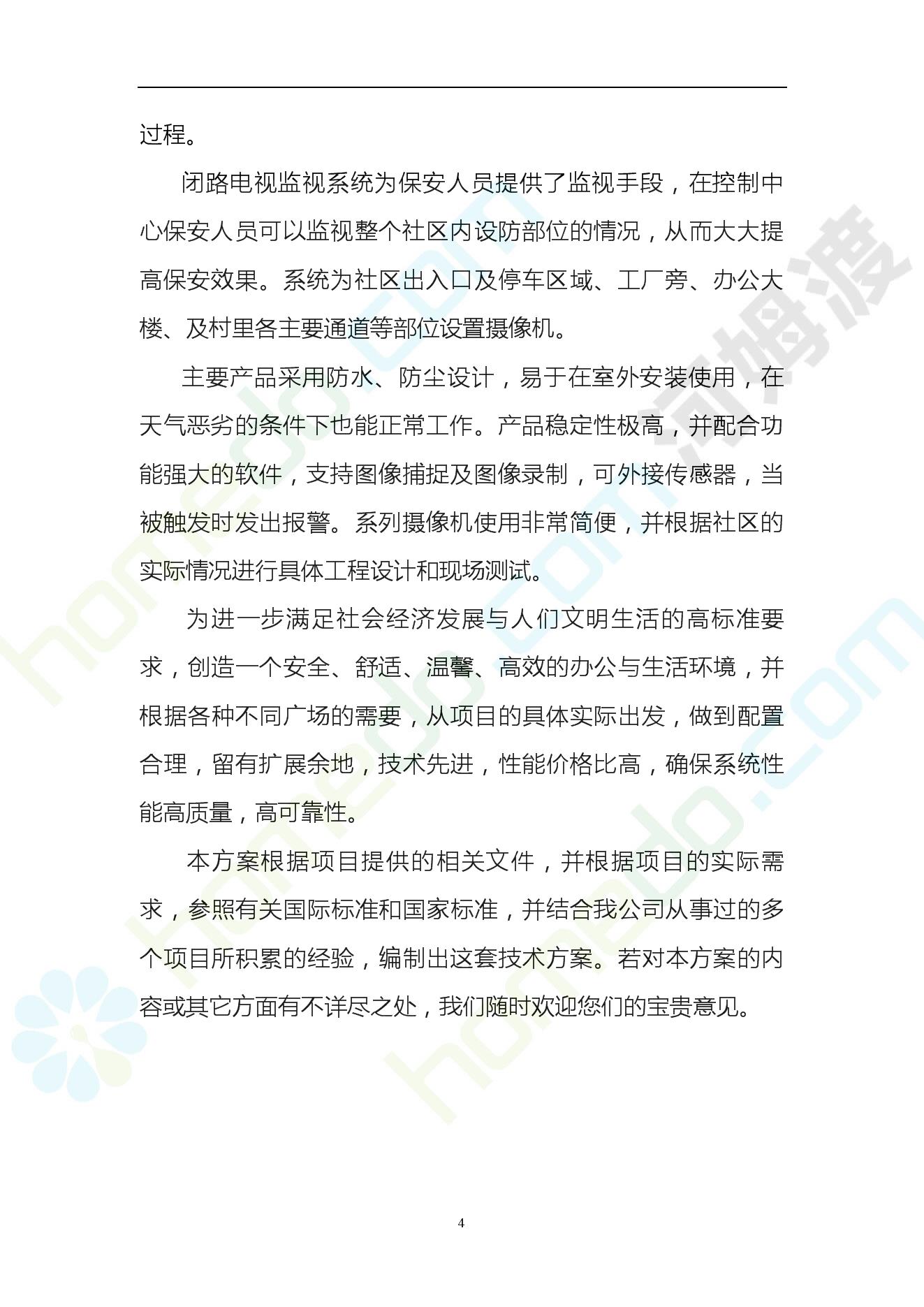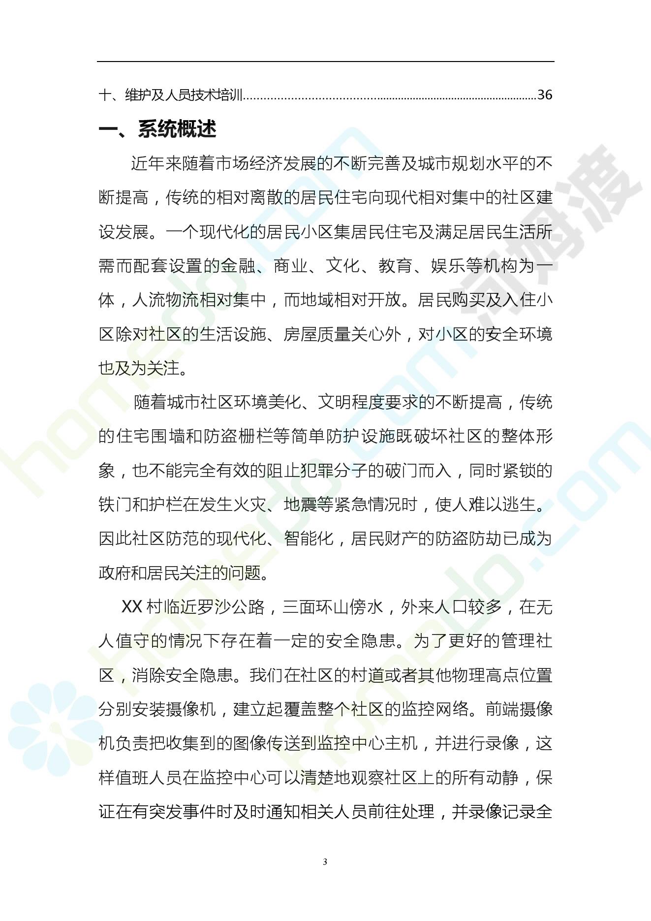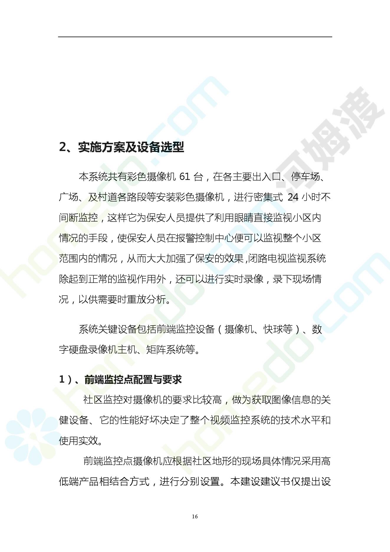 方案简介 社区防范的现代化、智能化,居民财产的防盗防劫成为政府和居民关注的问题。为了更好的管理社区,消除安全隐患。我们在社区的村道或者其他物理高点位置分别安装摄像机,建立起覆盖整个社区的监控网络。前端摄像机负责把收集到的图像传送到监控中心主机,并进行录像,这样值班人员在监控中心可以清楚地观察社区上的所有动静,保证在有突发事件时及时通知相关人员前往处理,并录像记录全过程。