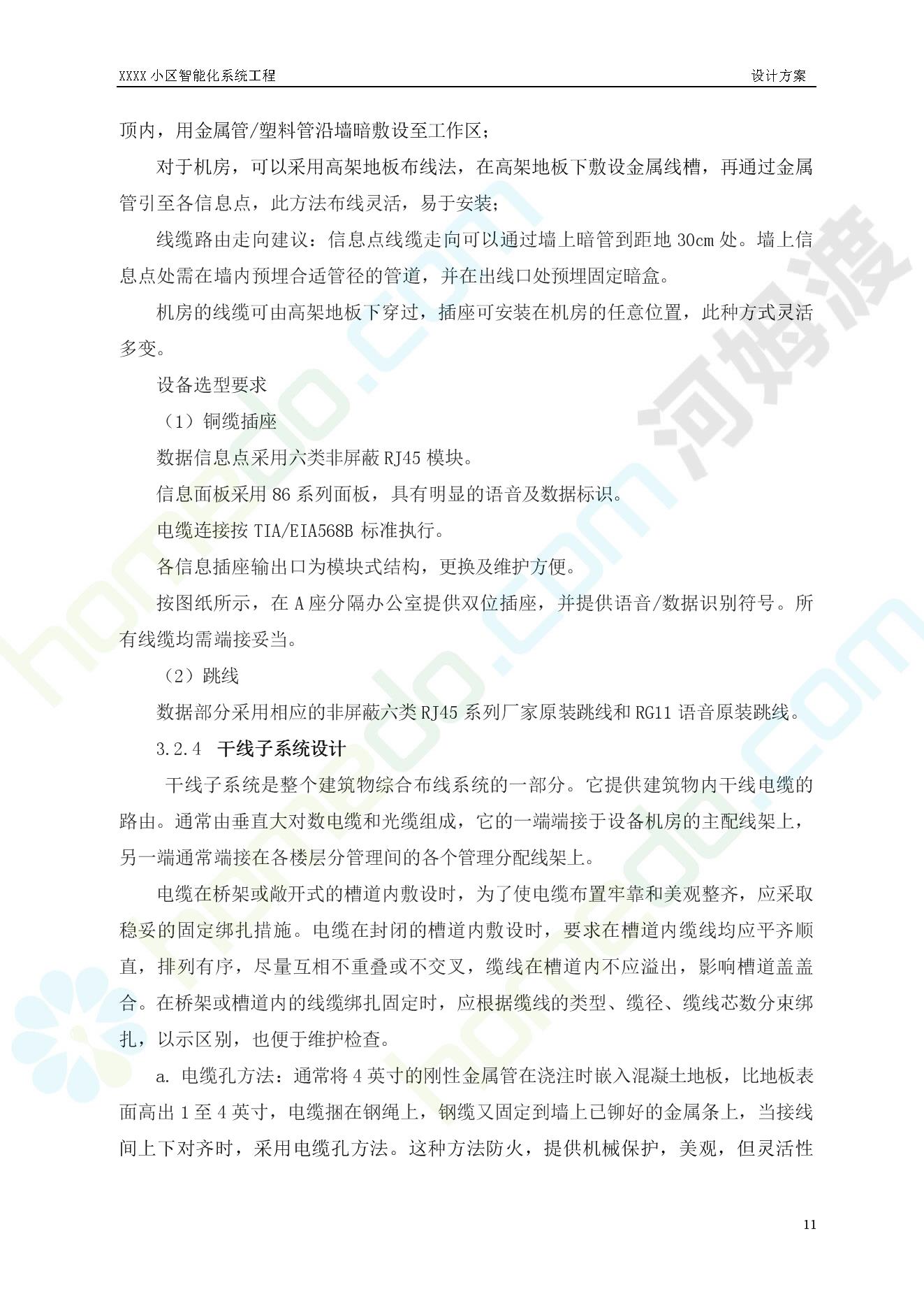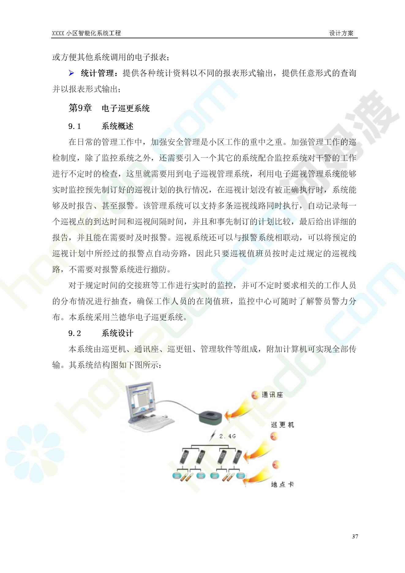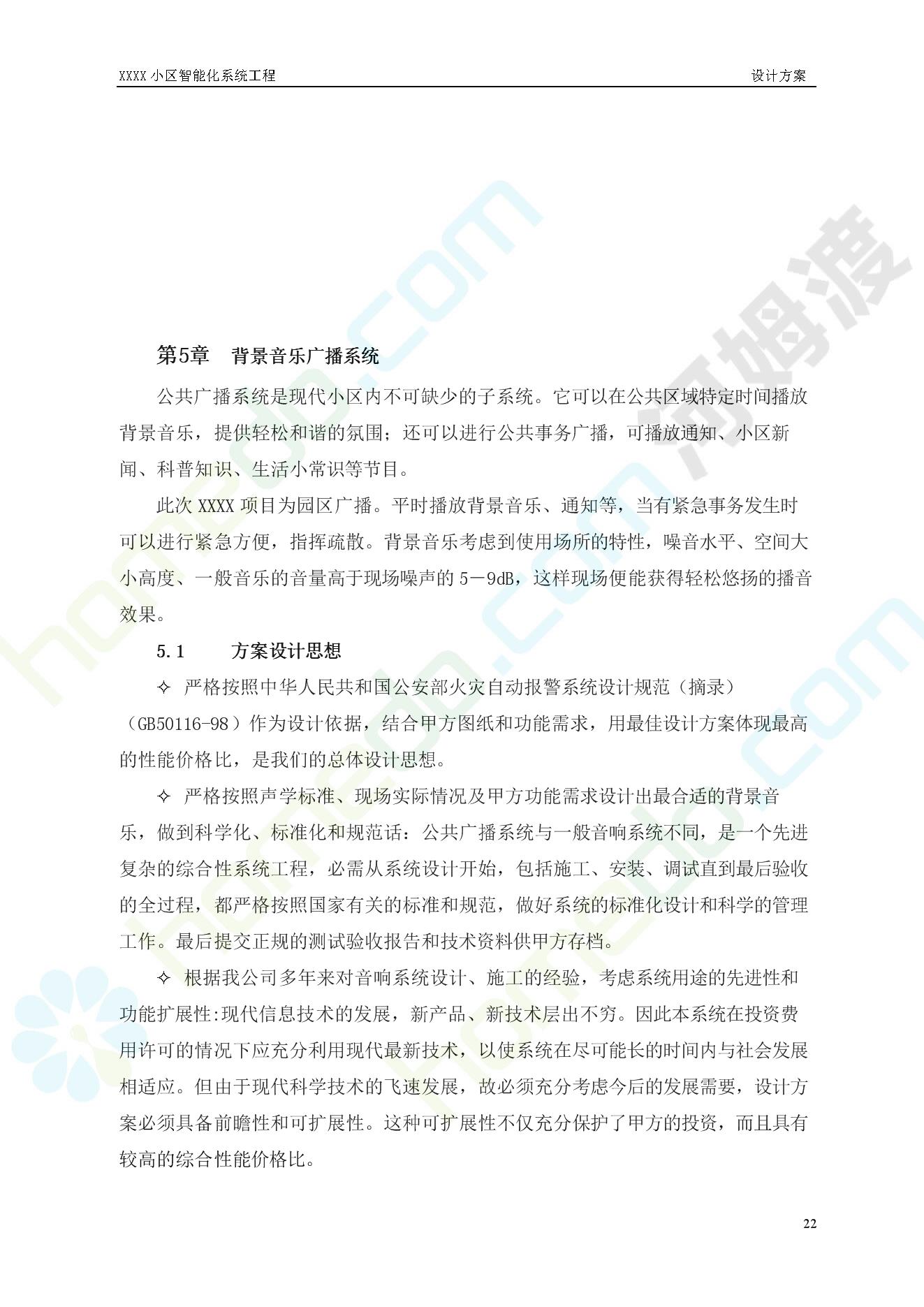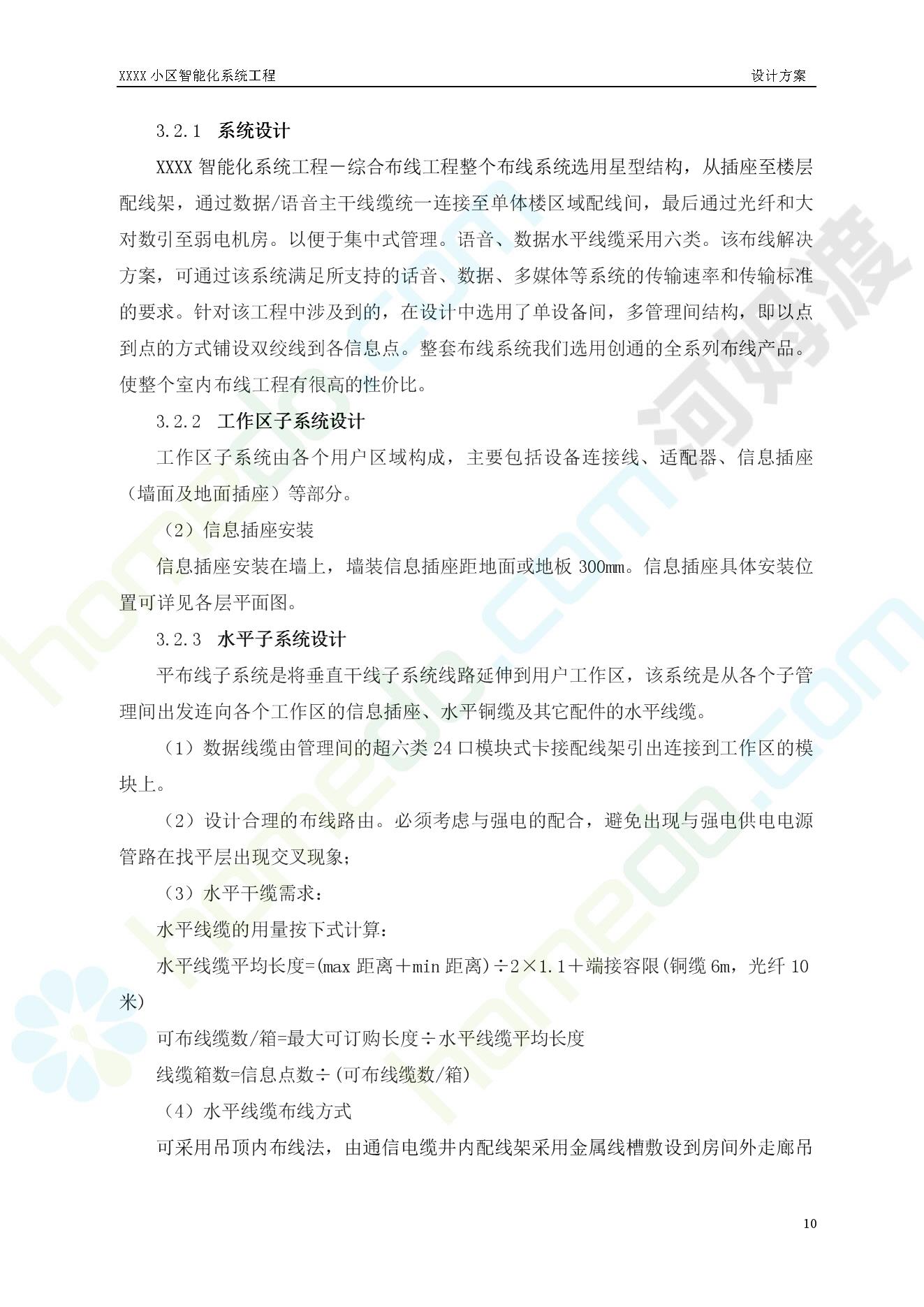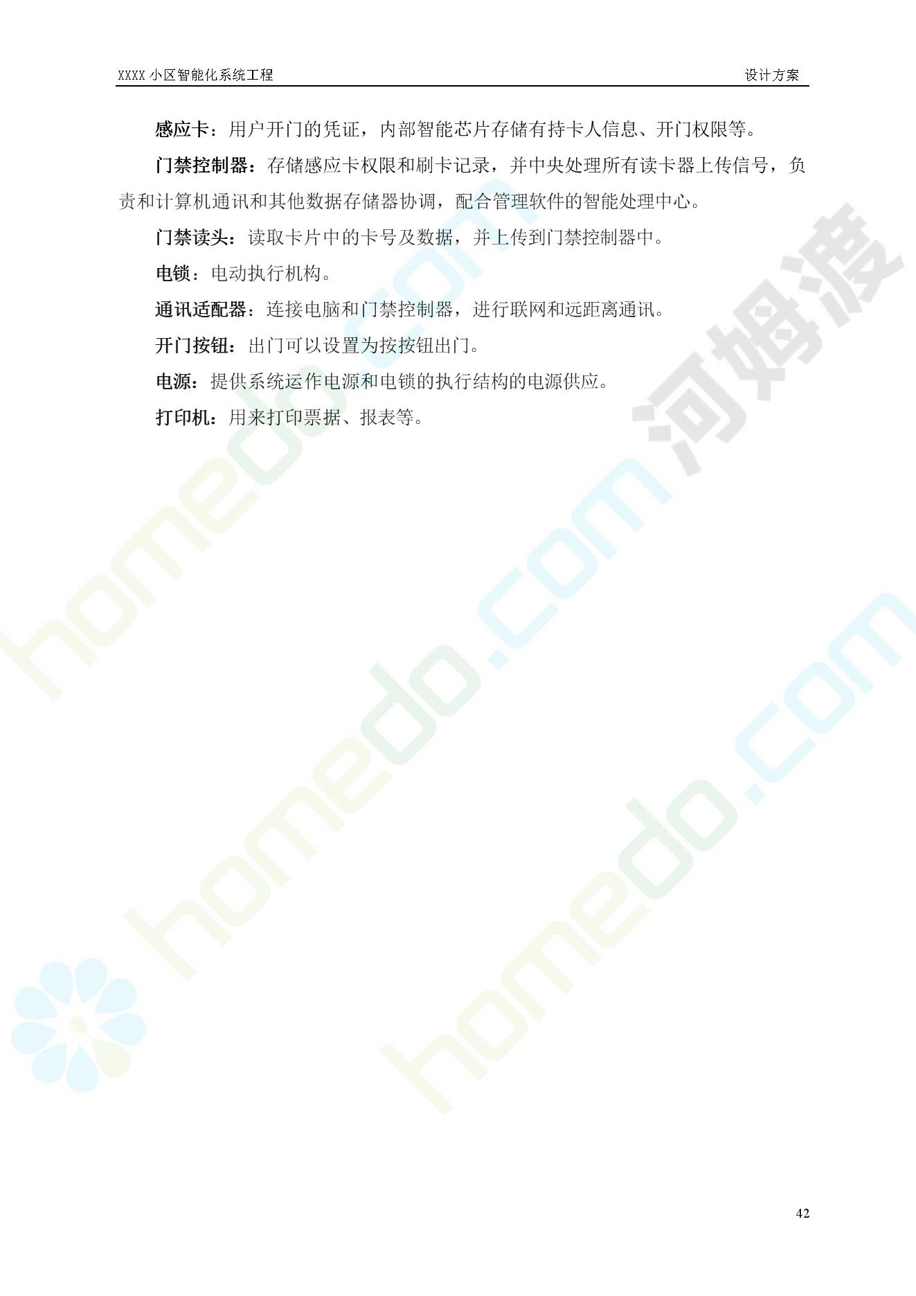 方案简介 XXXX小区,择址郑州XX区,尊踞XXXX路与XXXX交叉口向西XX米路南,XXXX置业有限公司开发建设的高端精品住宅,项目总占地面积XX亩,总建筑面积XX万平方米,由XX栋多层低密度住宅和XX栋XX高层建筑组成。 本项目按照全面规划、统一设计,局部实施,并能各自独立运行的原则考虑,最终小区全面竣工综合联网组成一个完整的智能化网络系统。