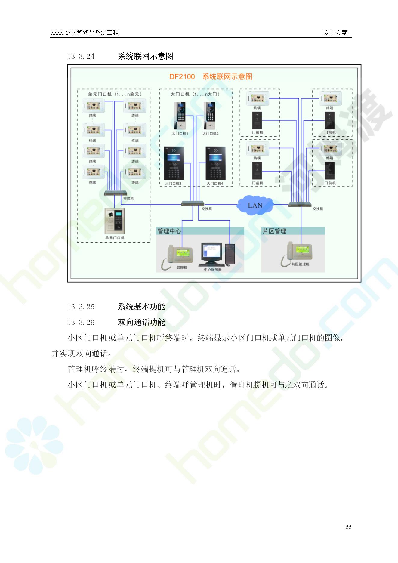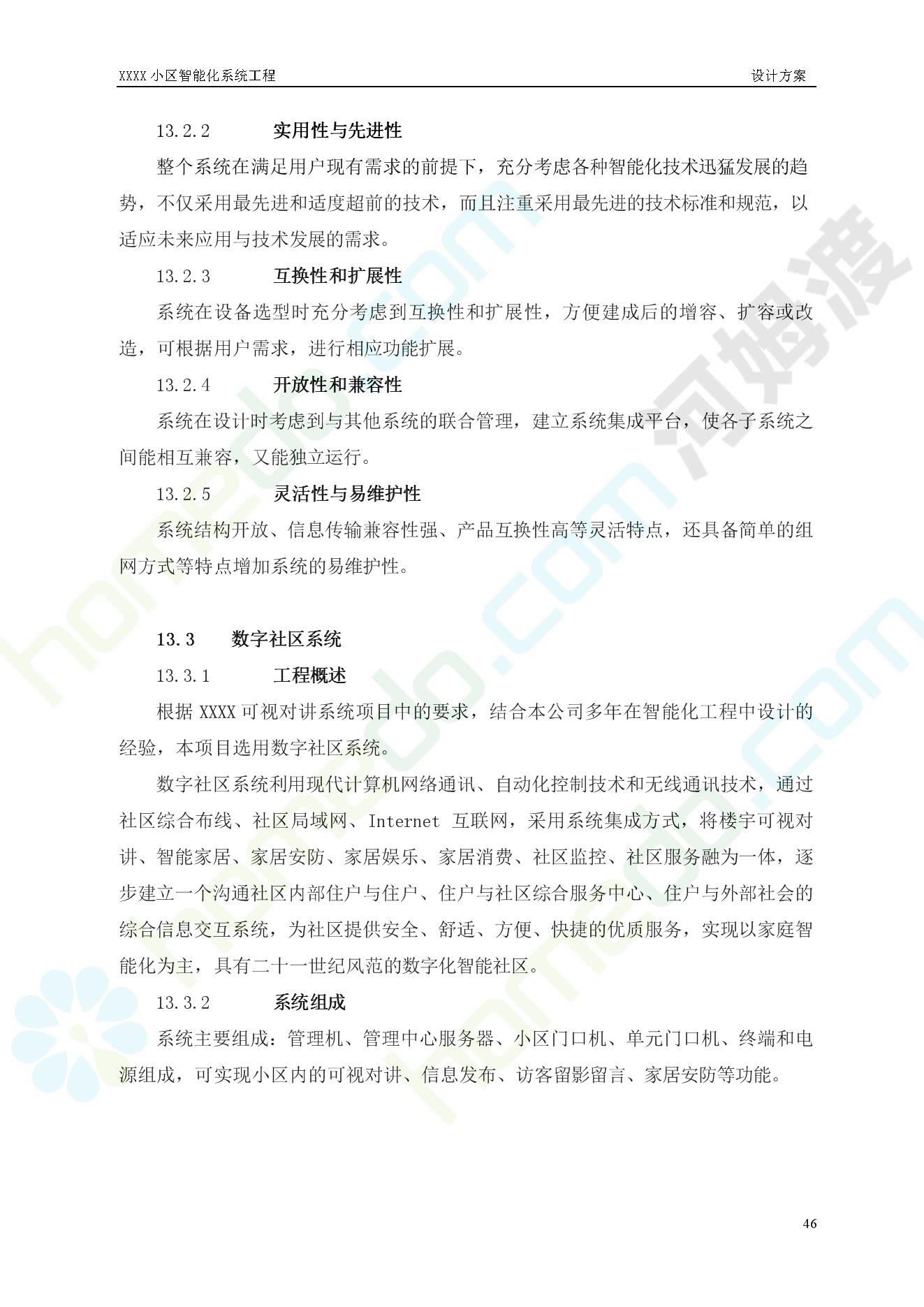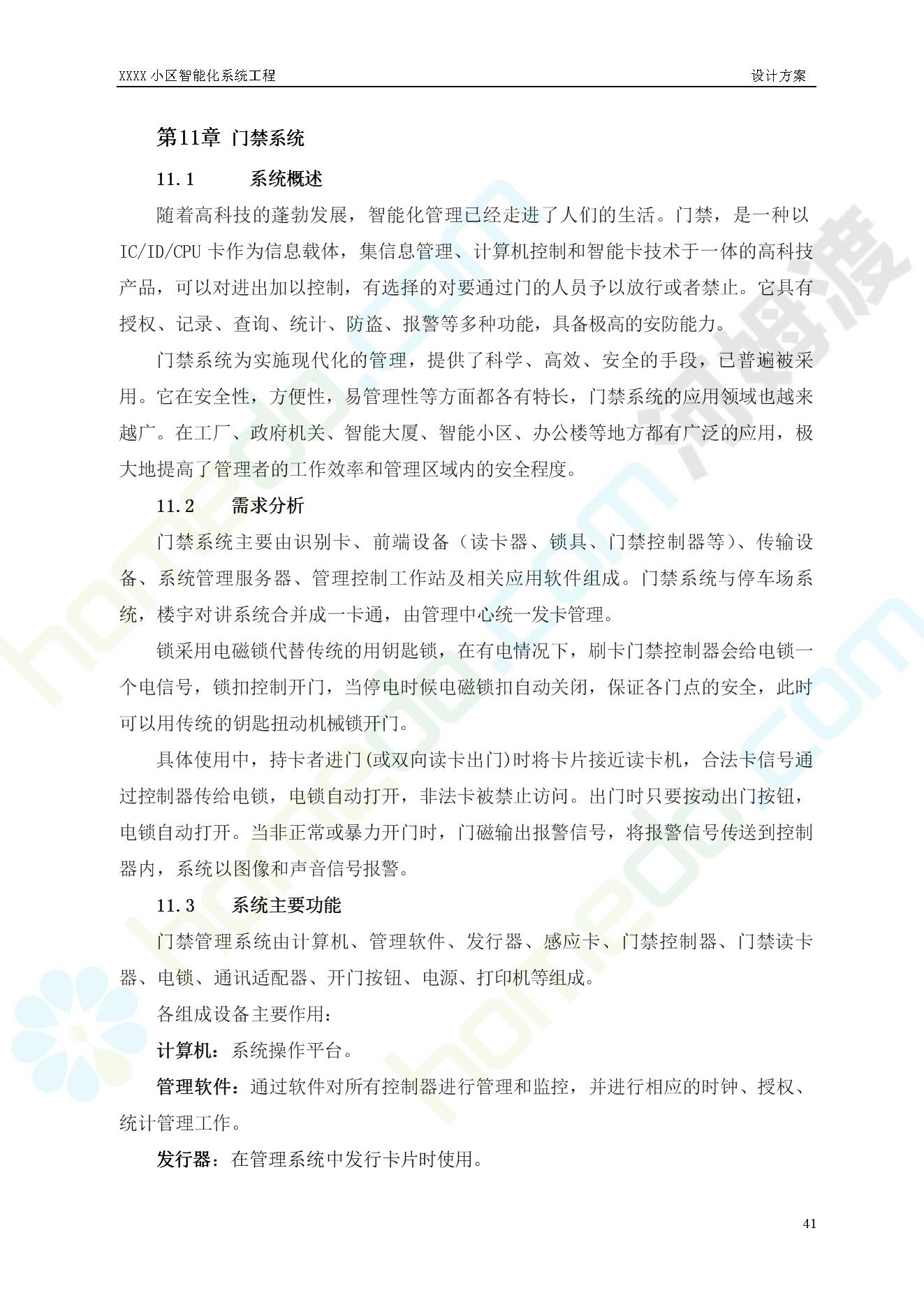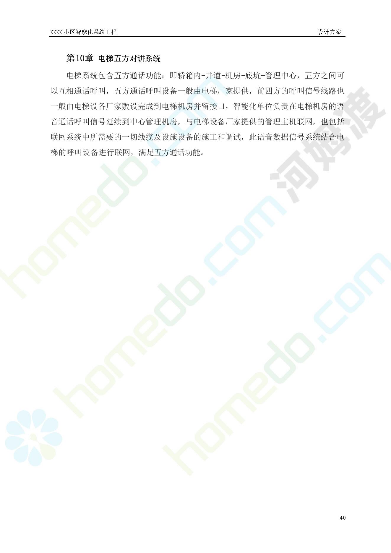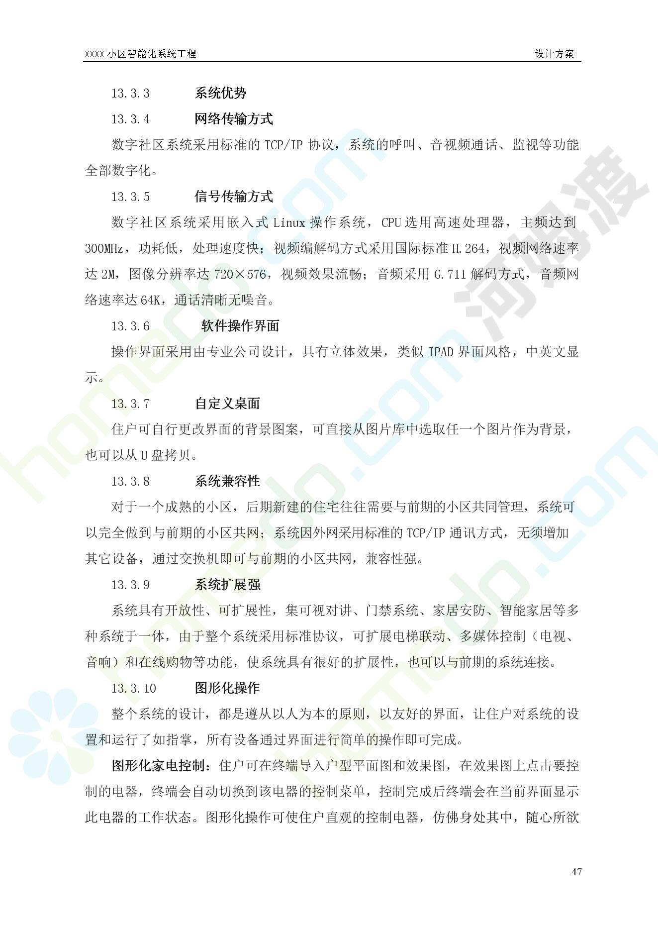 方案简介 XXXX小区,择址郑州XX区,尊踞XXXX路与XXXX交叉口向西XX米路南,XXXX置业有限公司开发建设的高端精品住宅,项目总占地面积XX亩,总建筑面积XX万平方米,由XX栋多层低密度住宅和XX栋XX高层建筑组成。 本项目按照全面规划、统一设计,局部实施,并能各自独立运行的原则考虑,最终小区全面竣工综合联网组成一个完整的智能化网络系统。