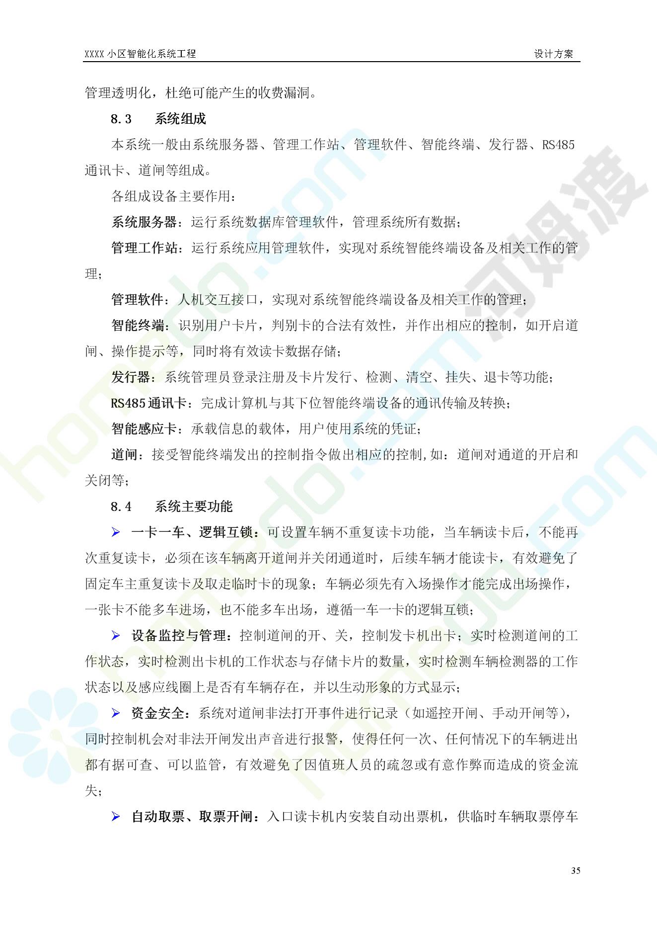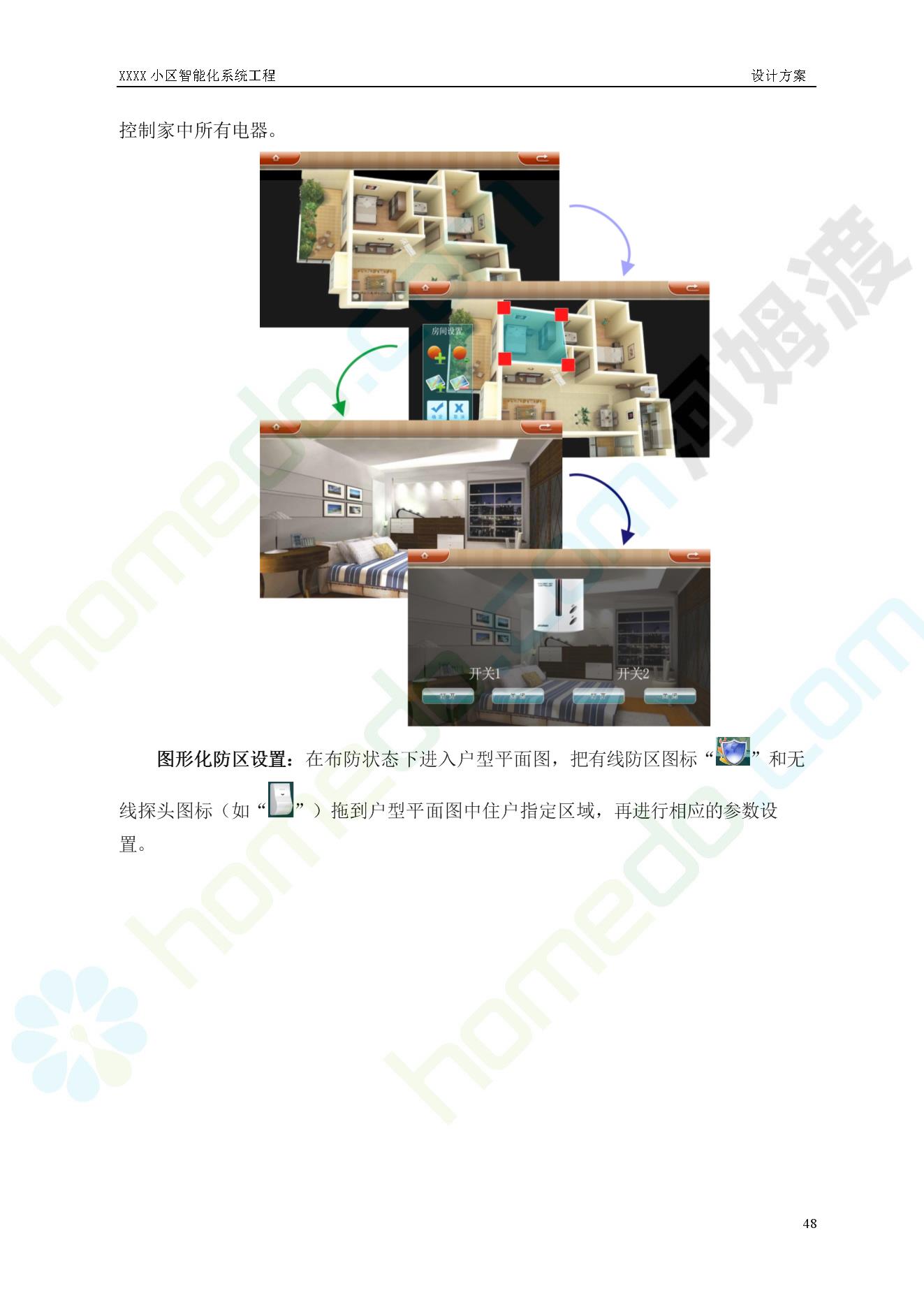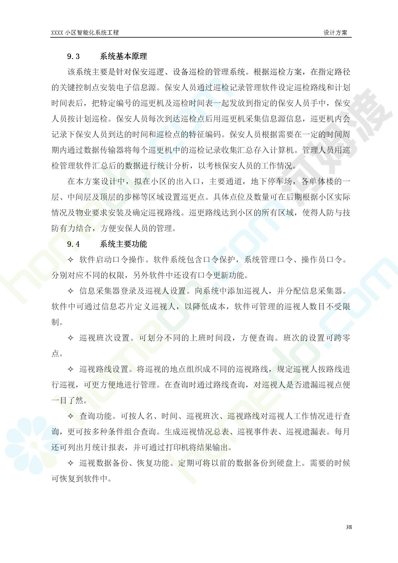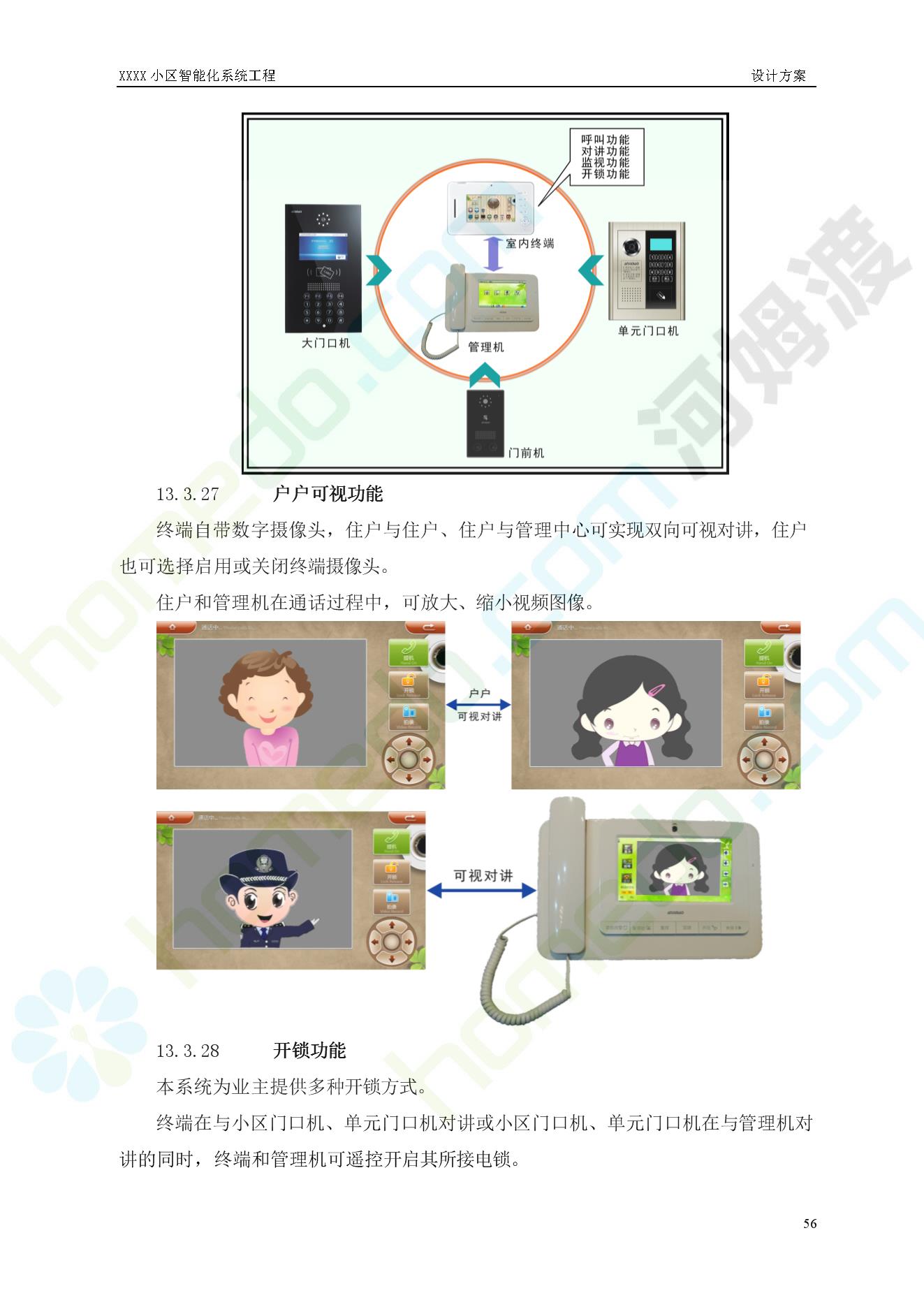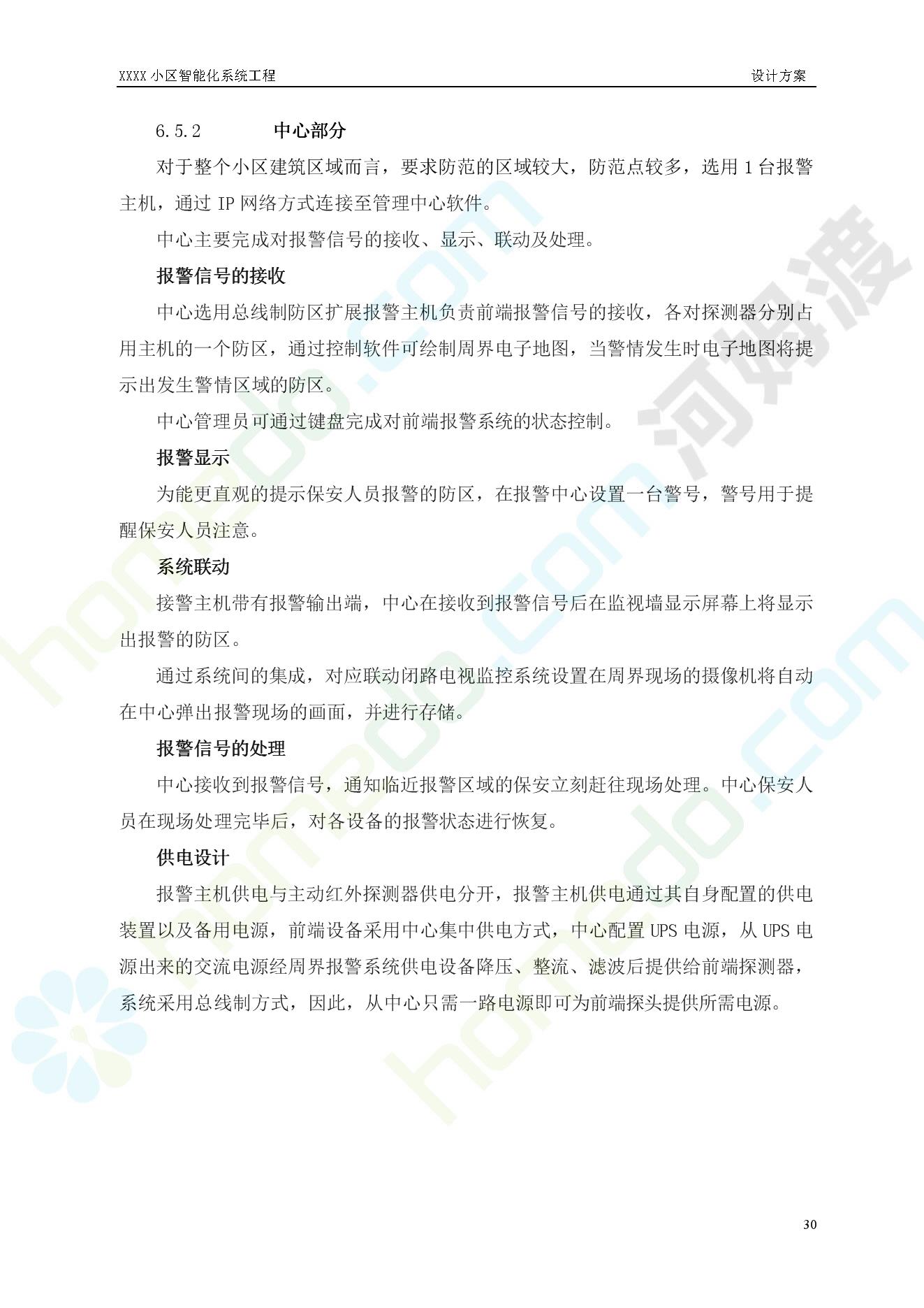 方案简介 XXXX小区,择址郑州XX区,尊踞XXXX路与XXXX交叉口向西XX米路南,XXXX置业有限公司开发建设的高端精品住宅,项目总占地面积XX亩,总建筑面积XX万平方米,由XX栋多层低密度住宅和XX栋XX高层建筑组成。 本项目按照全面规划、统一设计,局部实施,并能各自独立运行的原则考虑,最终小区全面竣工综合联网组成一个完整的智能化网络系统。
