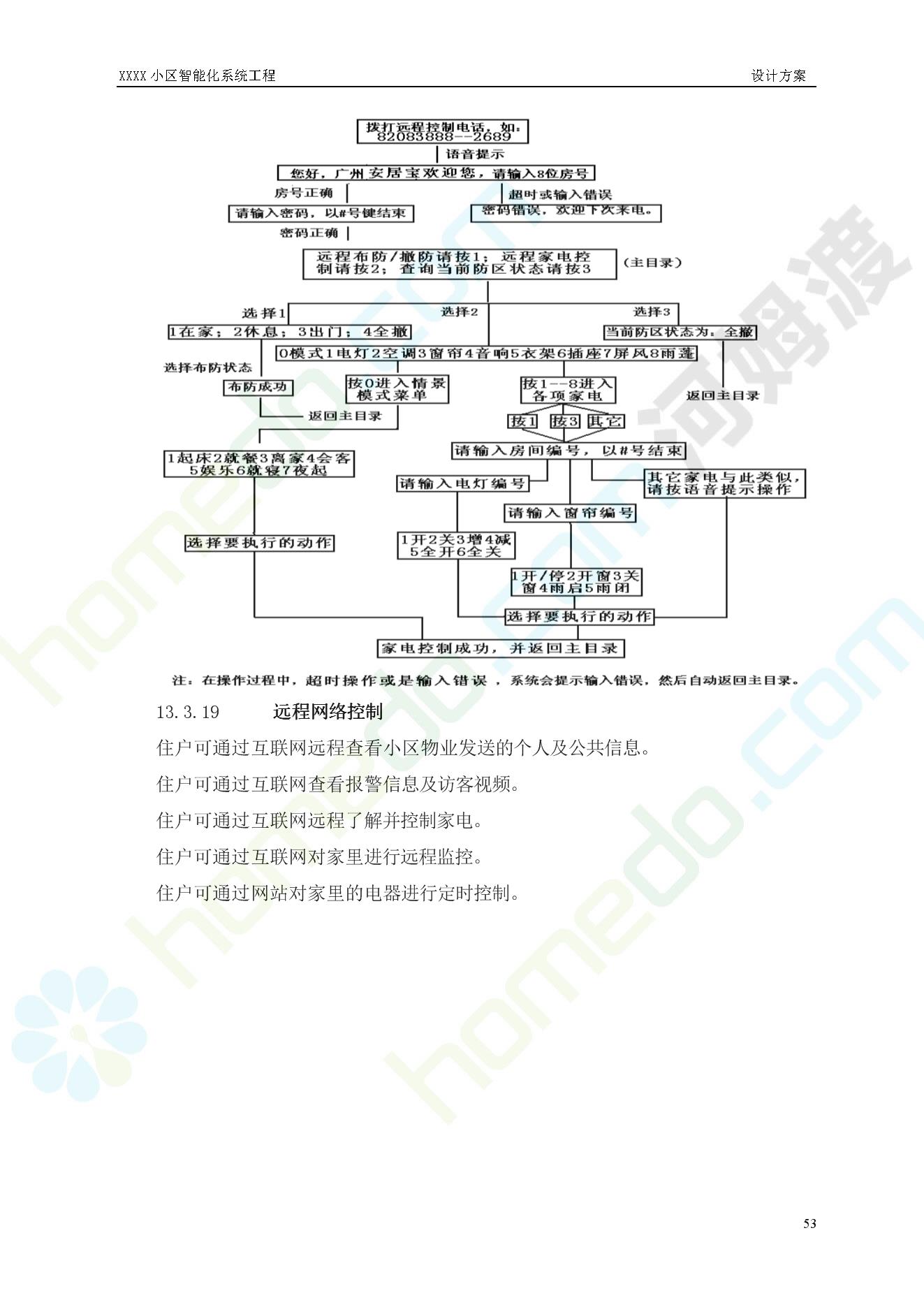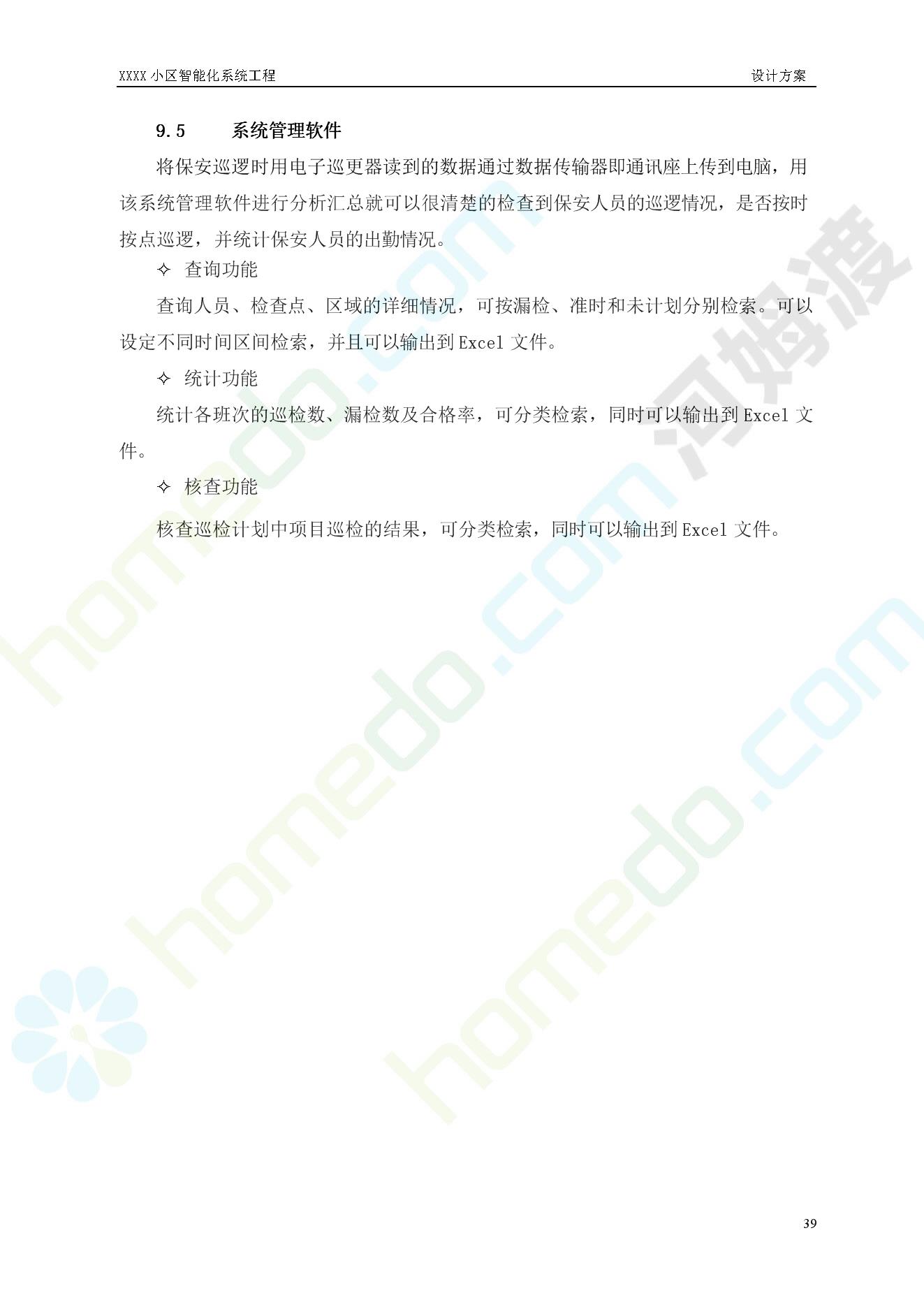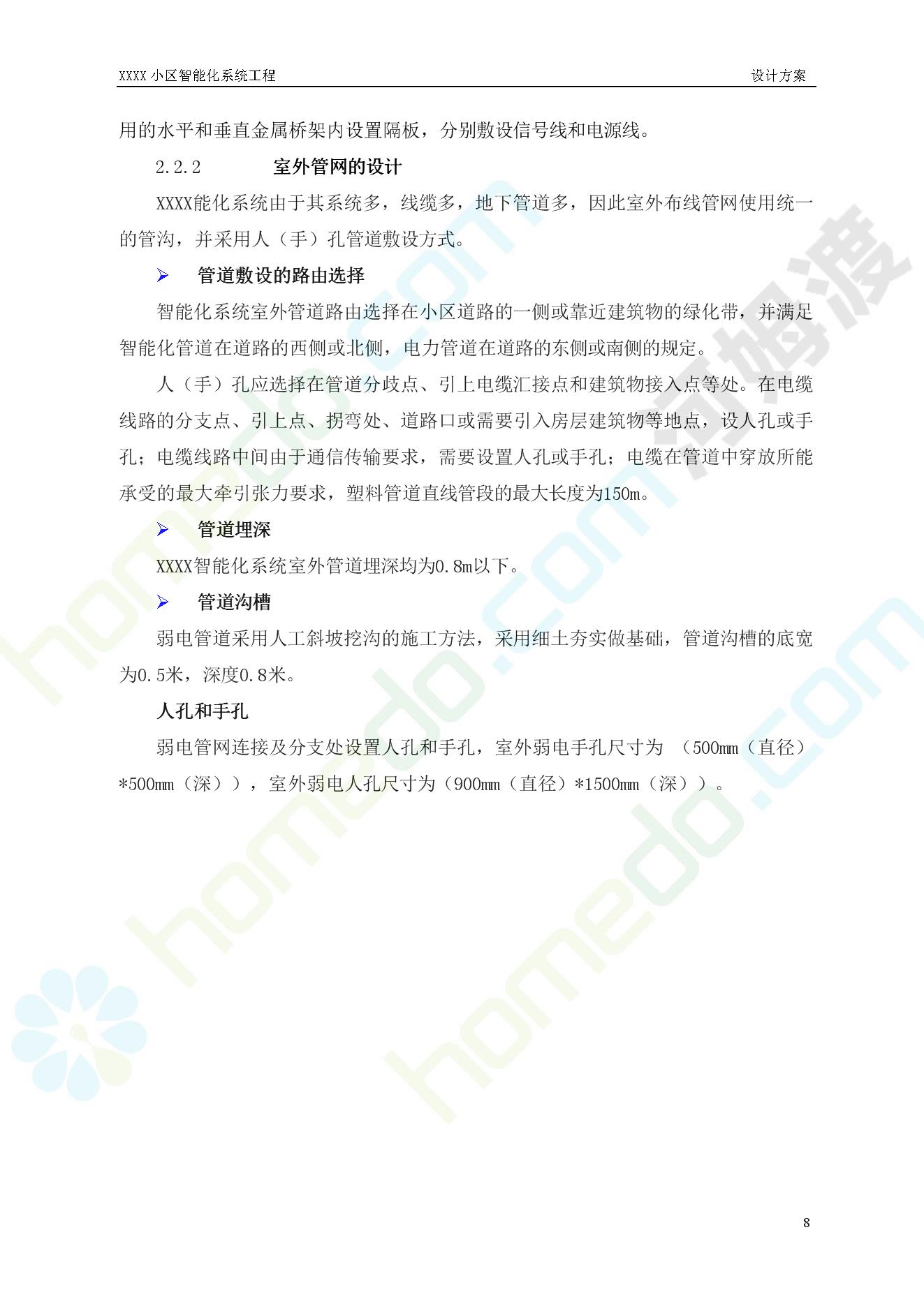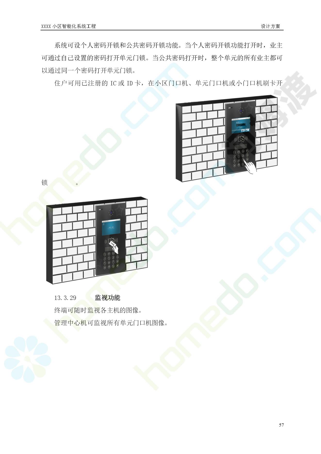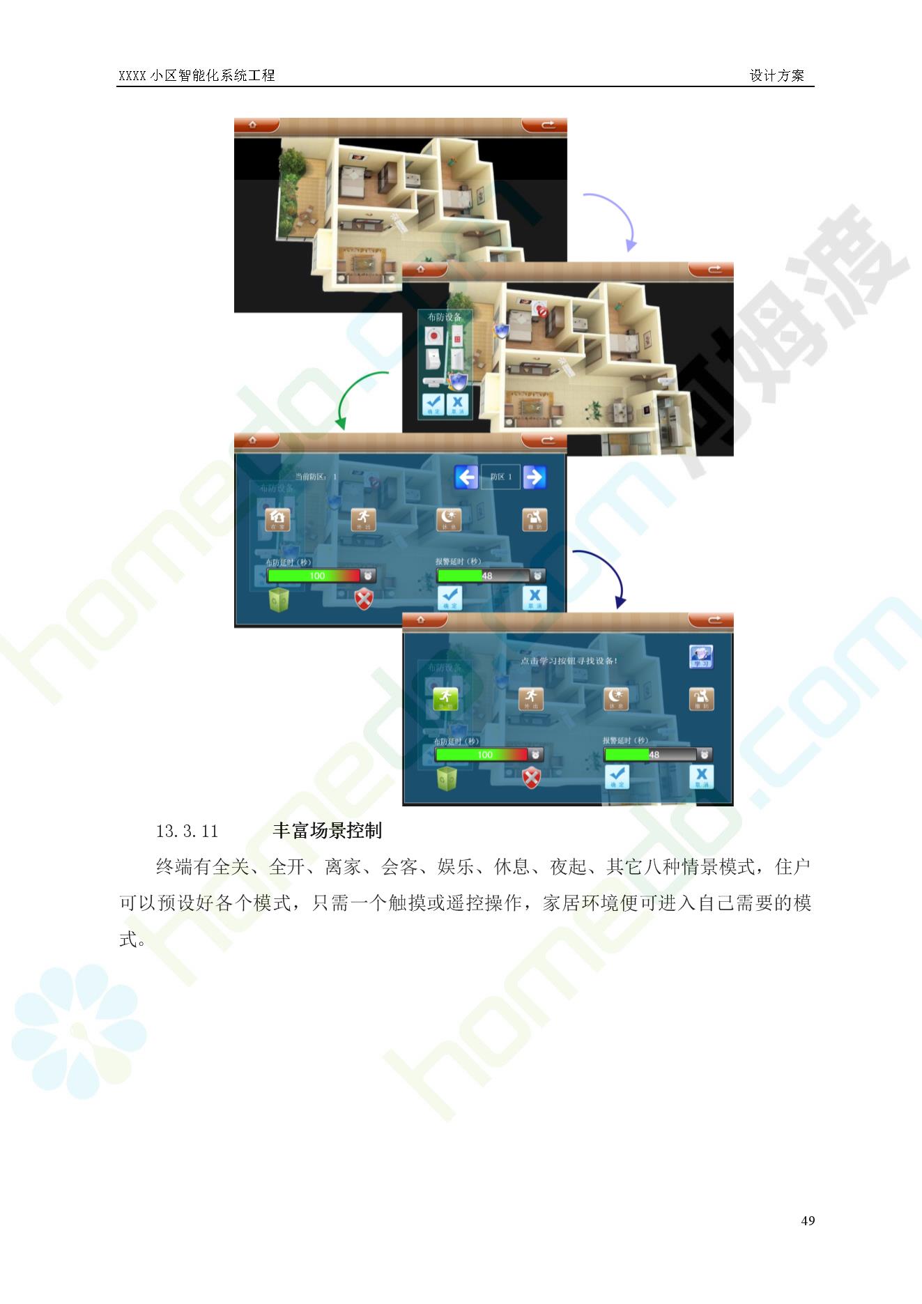 方案简介 XXXX小区,择址郑州XX区,尊踞XXXX路与XXXX交叉口向西XX米路南,XXXX置业有限公司开发建设的高端精品住宅,项目总占地面积XX亩,总建筑面积XX万平方米,由XX栋多层低密度住宅和XX栋XX高层建筑组成。 本项目按照全面规划、统一设计,局部实施,并能各自独立运行的原则考虑,最终小区全面竣工综合联网组成一个完整的智能化网络系统。