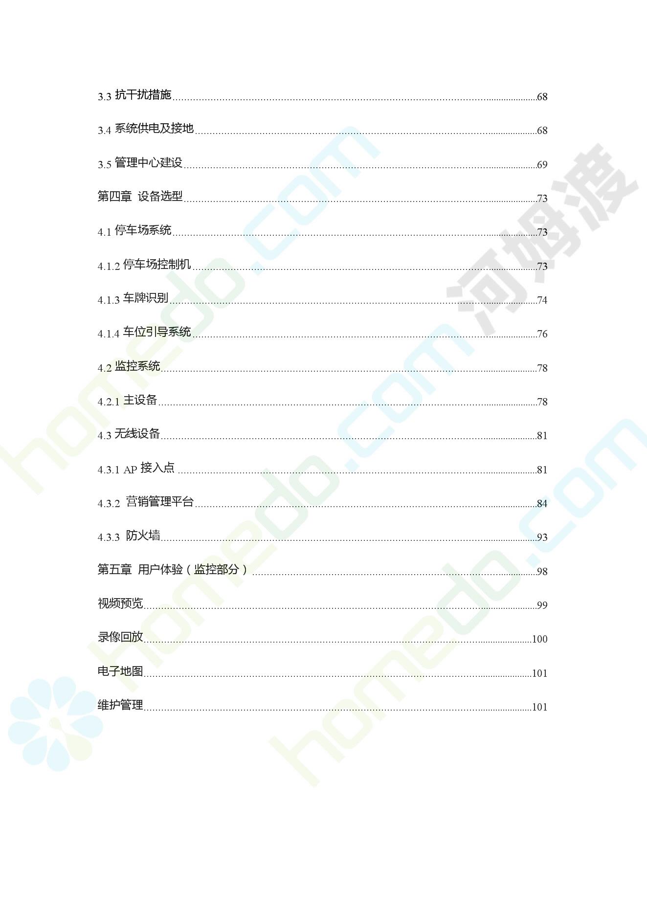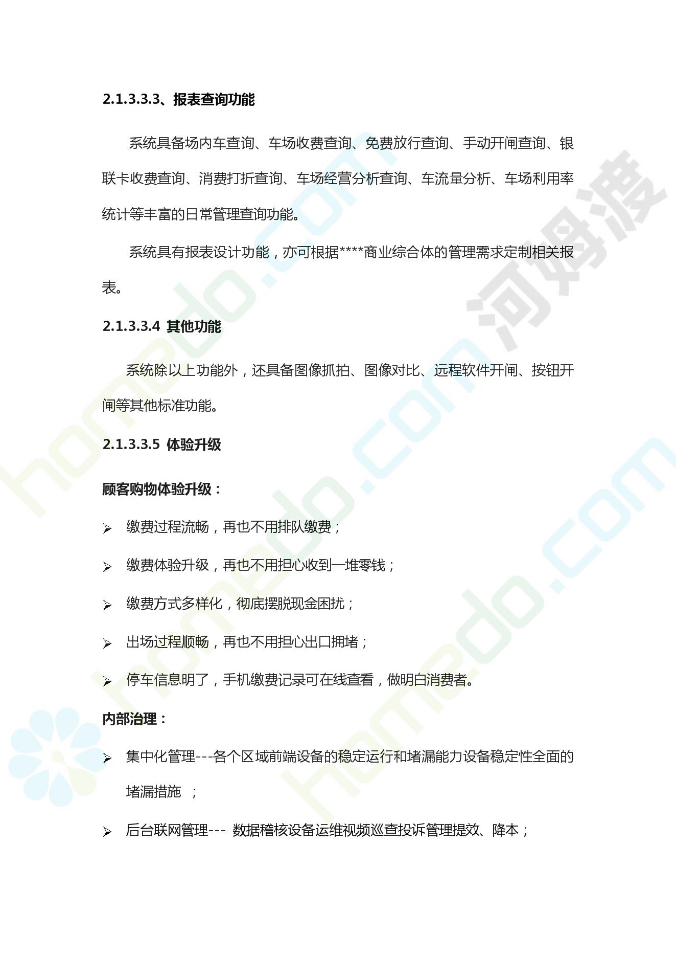 方案简介 针对****项目智慧商圈系统,主要设计停车场出入口管理系统、停车场车位引导及反向寻车系统、智能视频监控系统、智能巡更系统,无线覆盖系统,各系统控制器均采用网络结构,接入交换机,根据物业管理需要,可设置不同的管理中心和客户端。