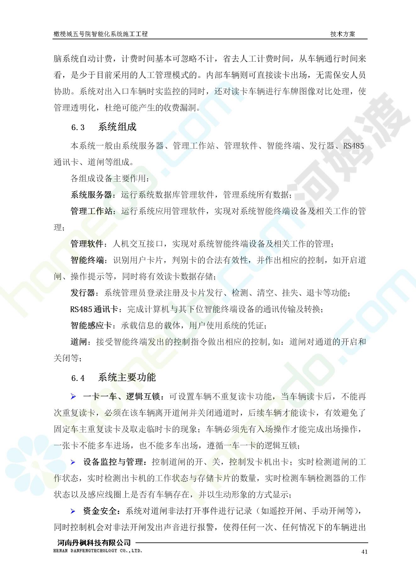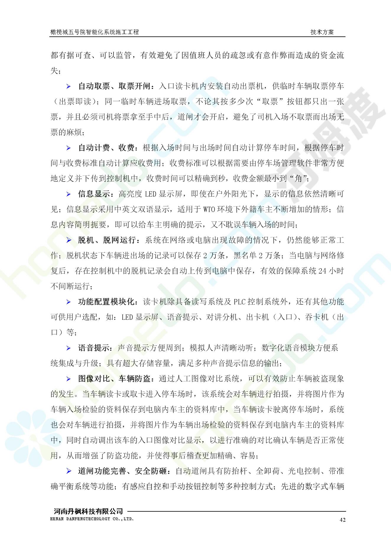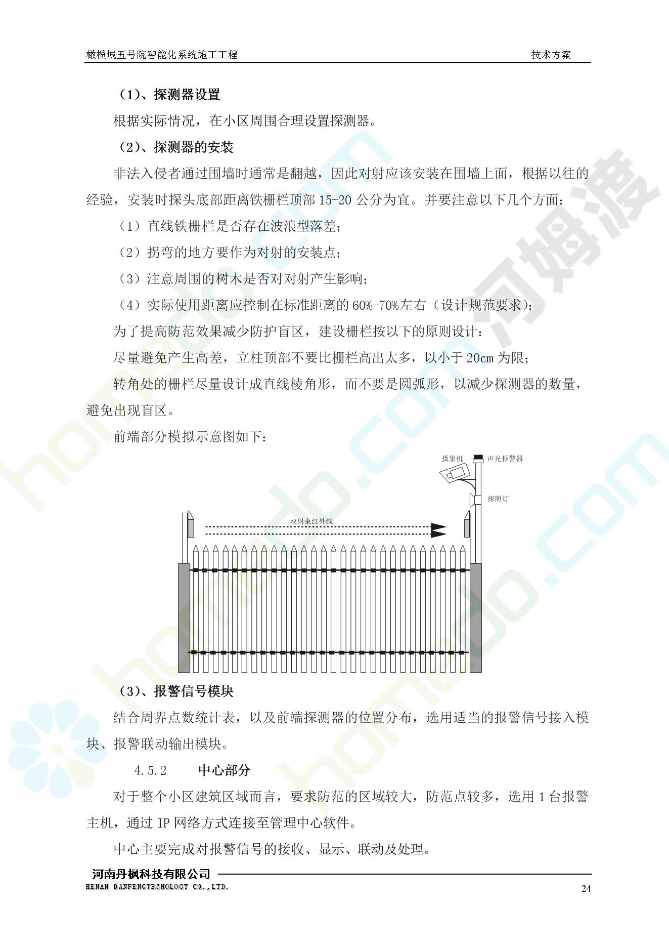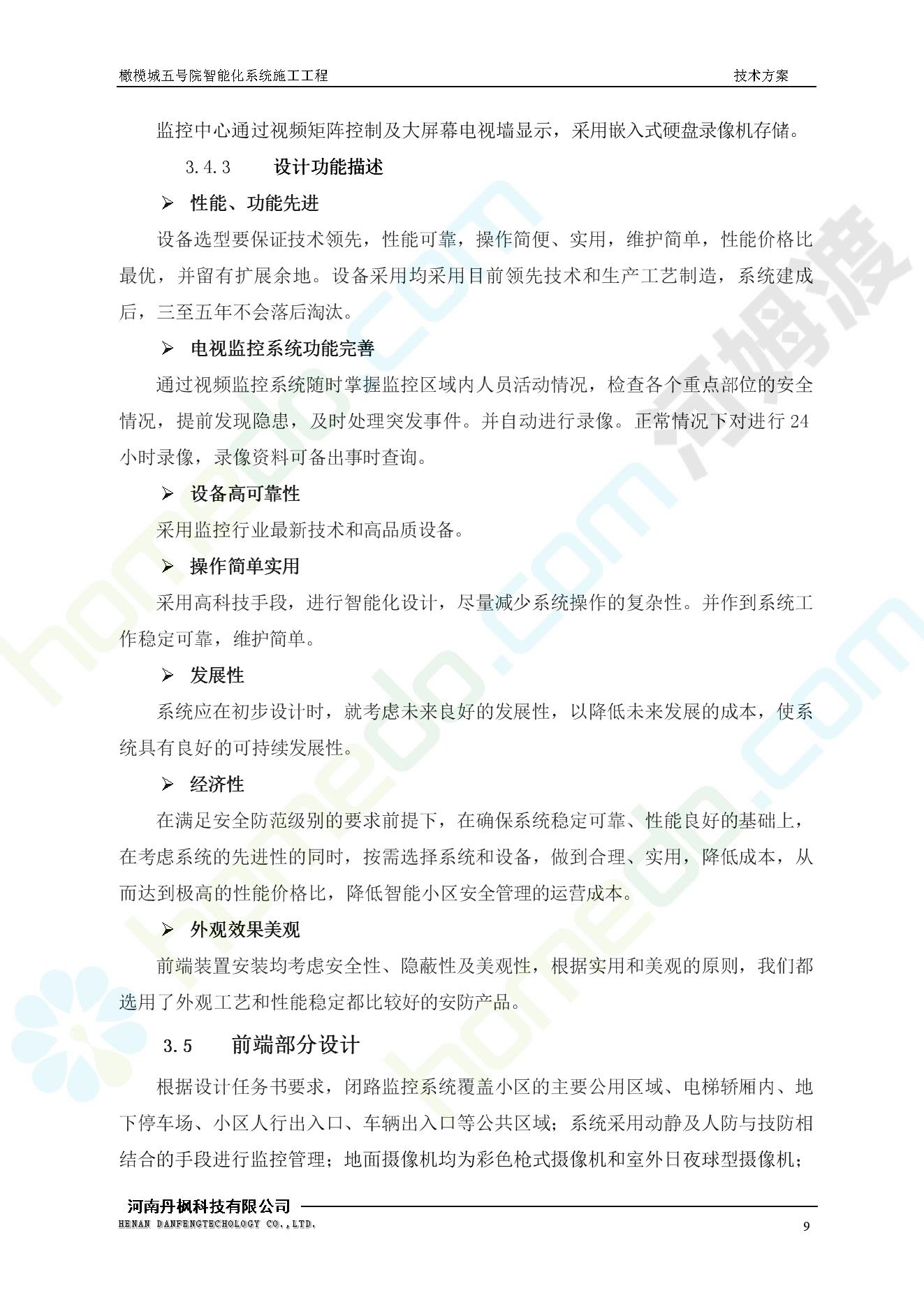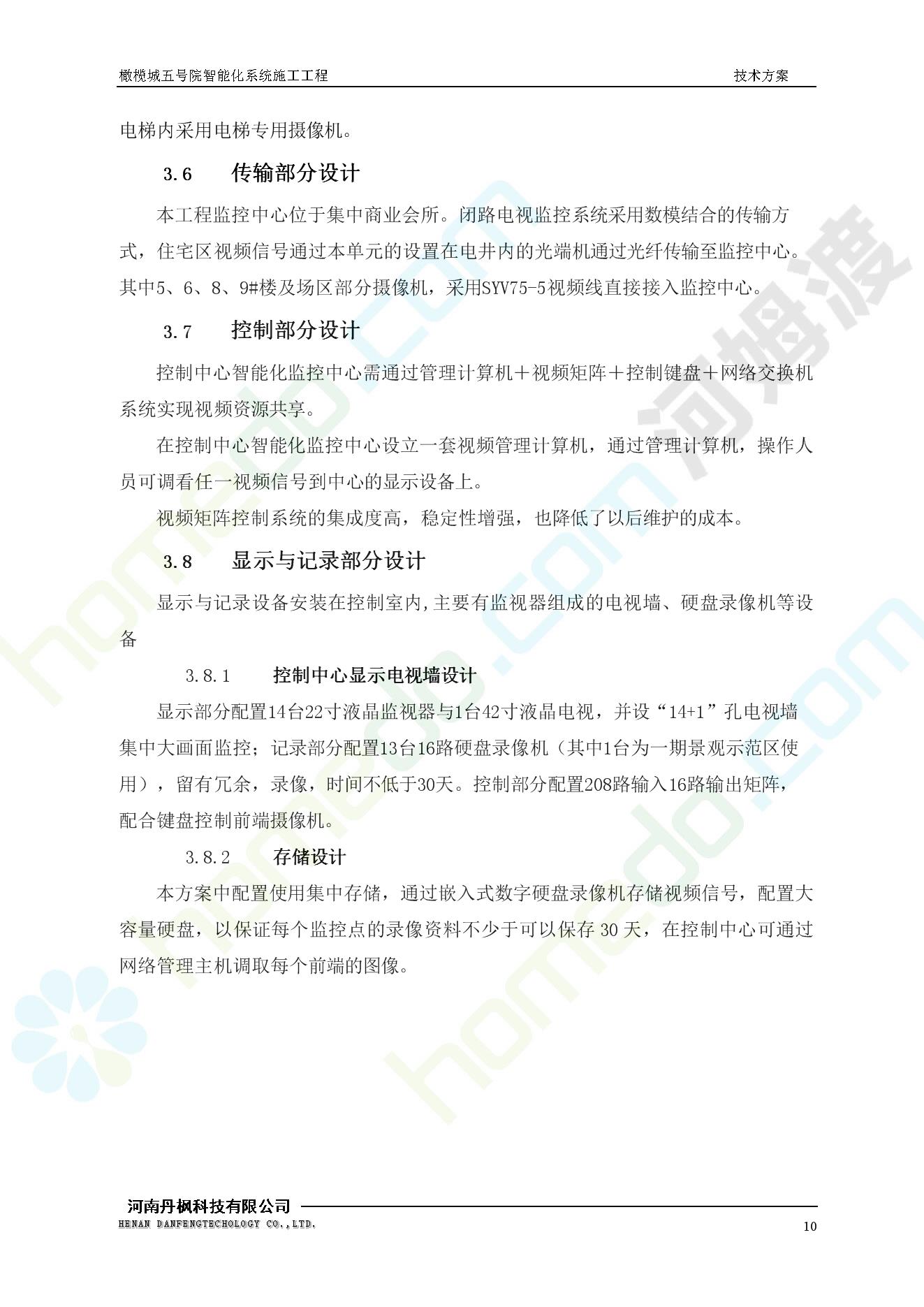 方案简介 本项目为橄榄城五号院智能化系统施工工程。 橄榄城五号院位于郑州市二七区,南三环以南,连云路以西。总建筑面积367728.43m2,由12栋高层,18栋四层多层、1栋会所的法式风格建筑组成。其中:地下车库97406.71㎡,1#~12#楼为高层,21#楼~38#楼为四层多层。本项目按照全面规划、统一设计,局部实施,并能各自独立运行的原则考虑,最终小区全面竣工综合联网组成一个完整的智能化网络系统。