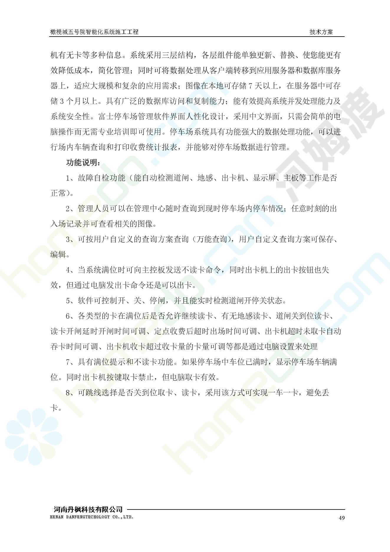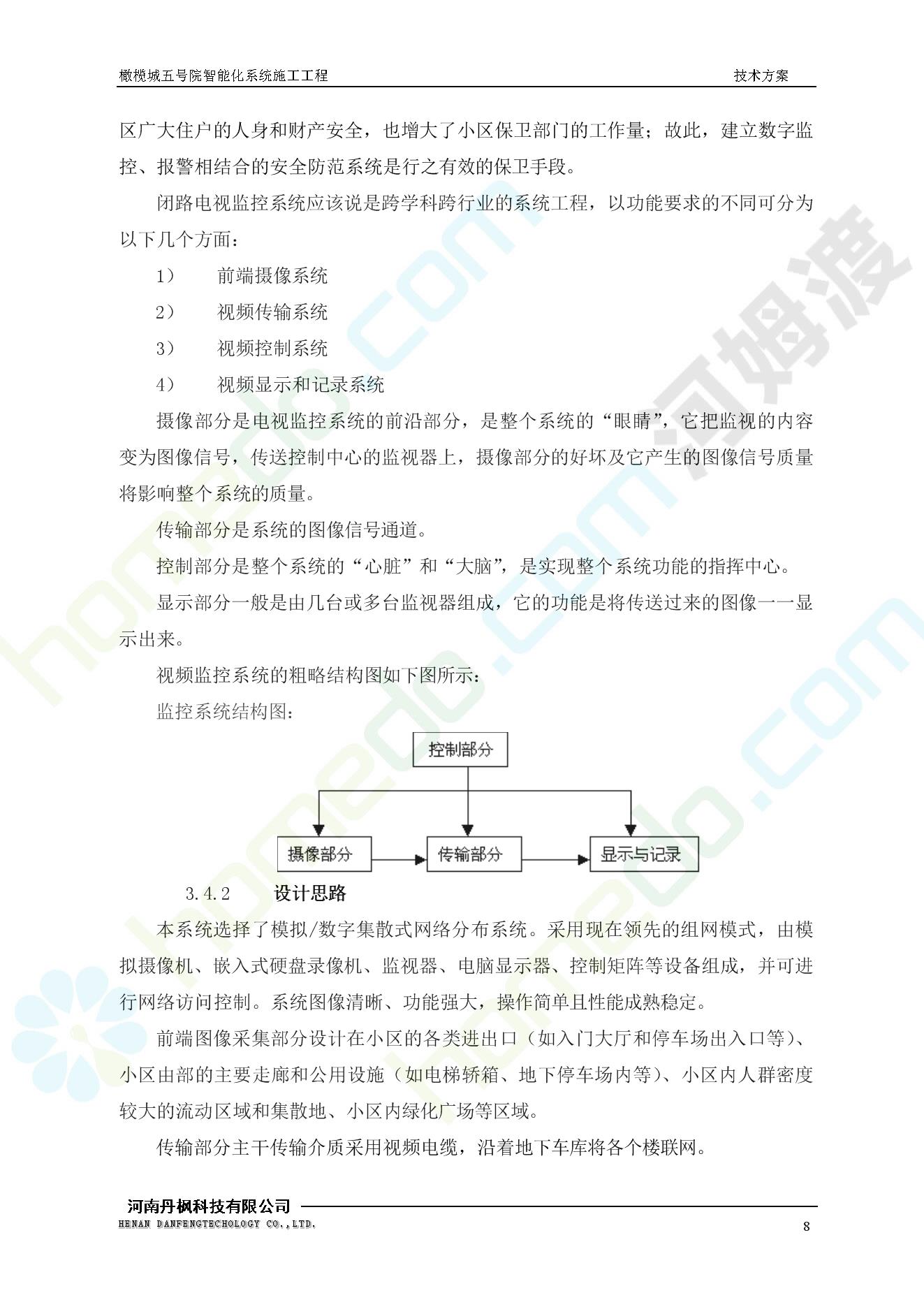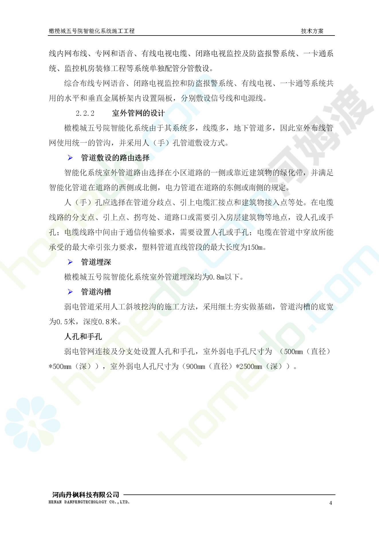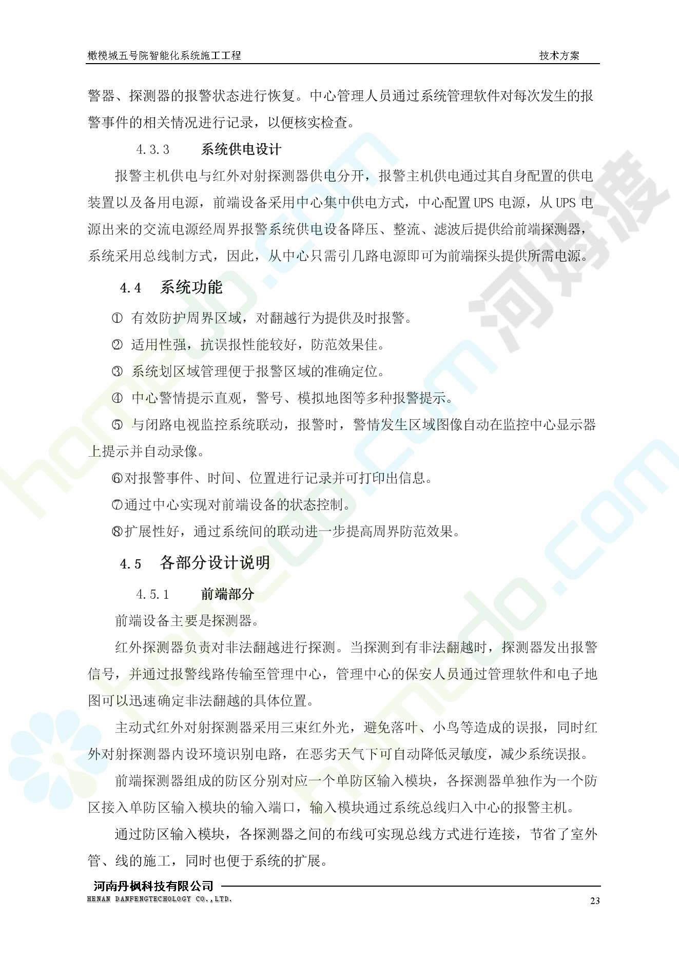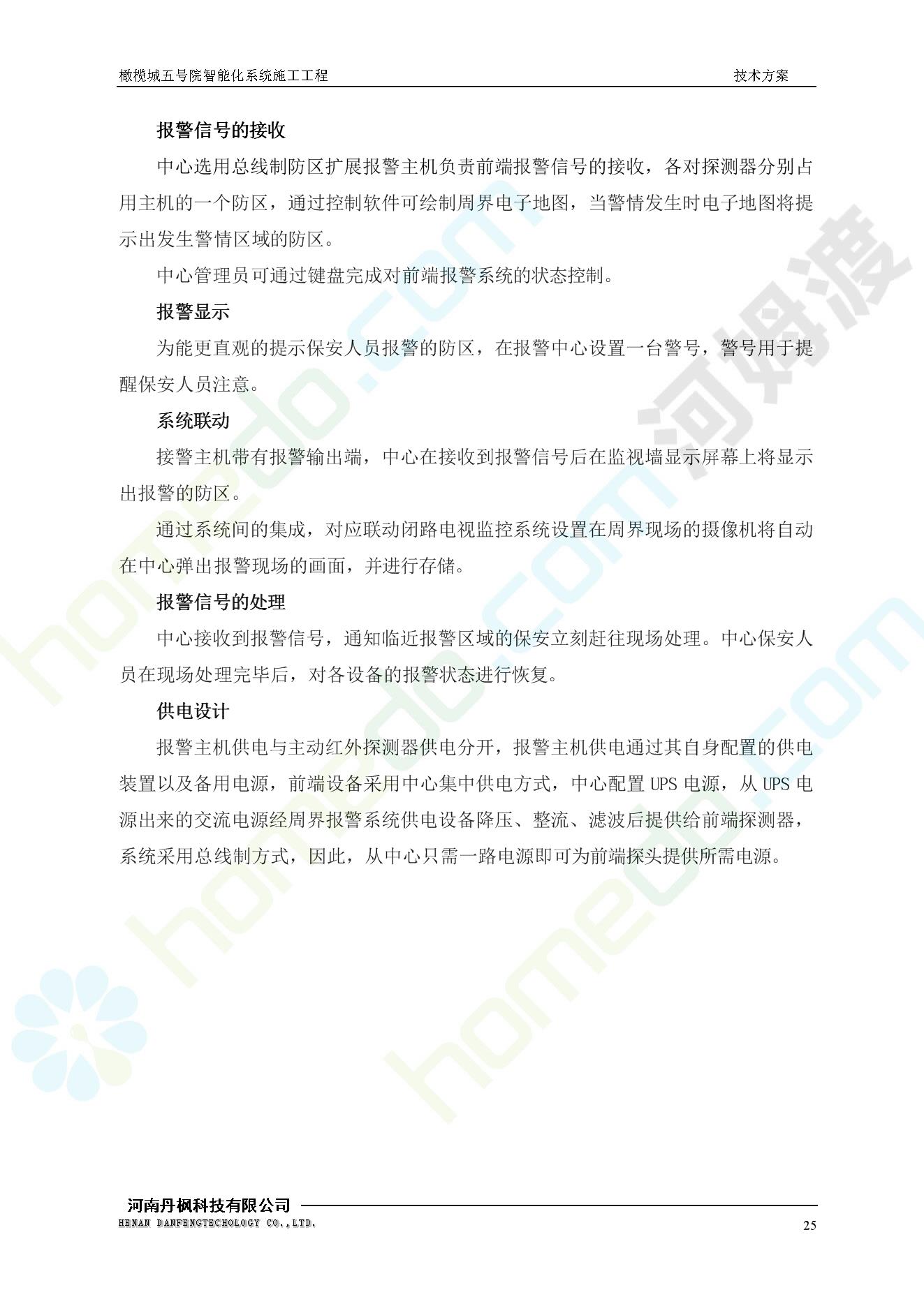 方案简介 本项目为橄榄城五号院智能化系统施工工程。 橄榄城五号院位于郑州市二七区,南三环以南,连云路以西。总建筑面积367728.43m2,由12栋高层,18栋四层多层、1栋会所的法式风格建筑组成。其中:地下车库97406.71㎡,1#~12#楼为高层,21#楼~38#楼为四层多层。本项目按照全面规划、统一设计,局部实施,并能各自独立运行的原则考虑,最终小区全面竣工综合联网组成一个完整的智能化网络系统。