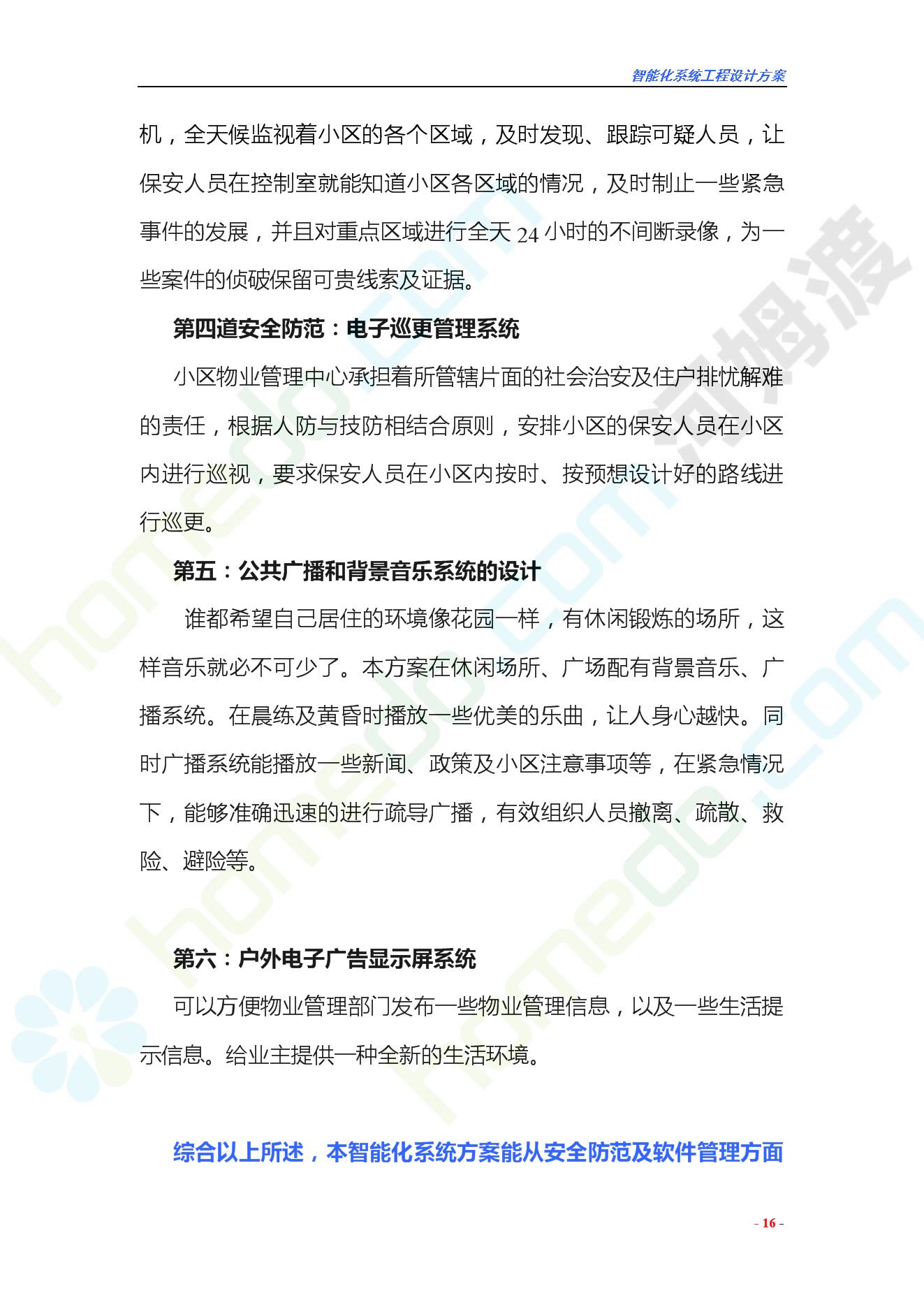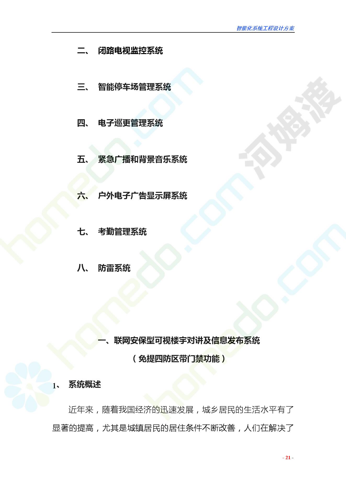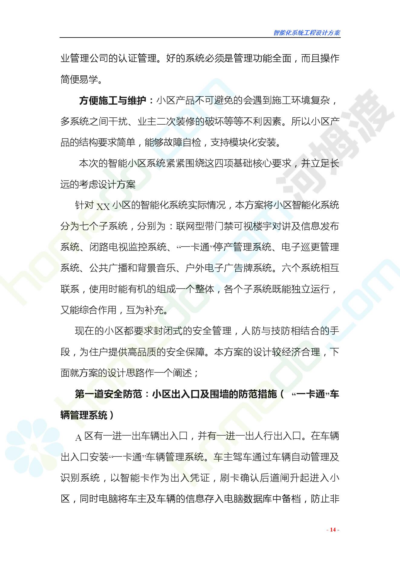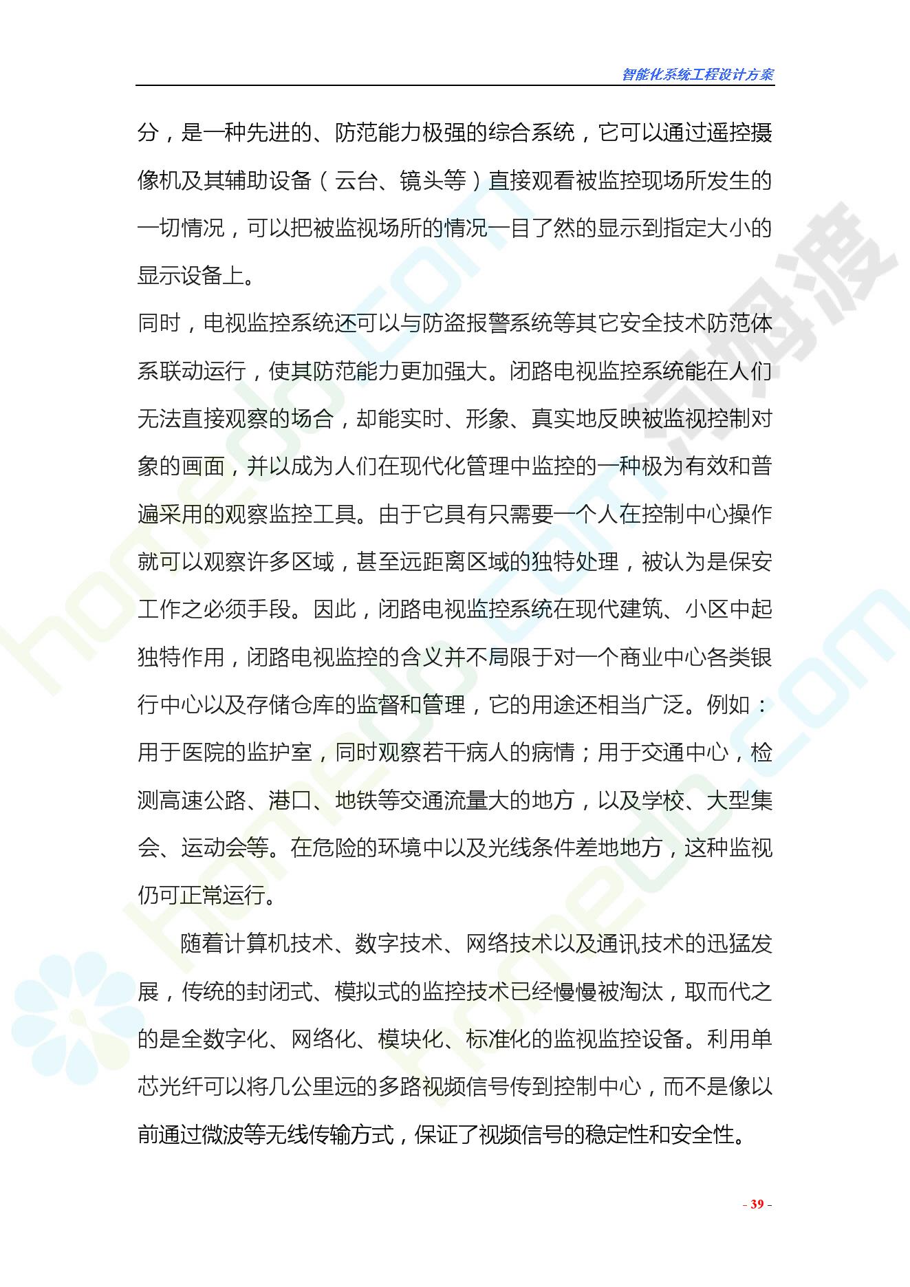 方案简介 智能化工程各系统要体现当今时代潮流,设计合理,具有既可独立控制,又能整体管理的功能,安装维护方便,安全可靠。