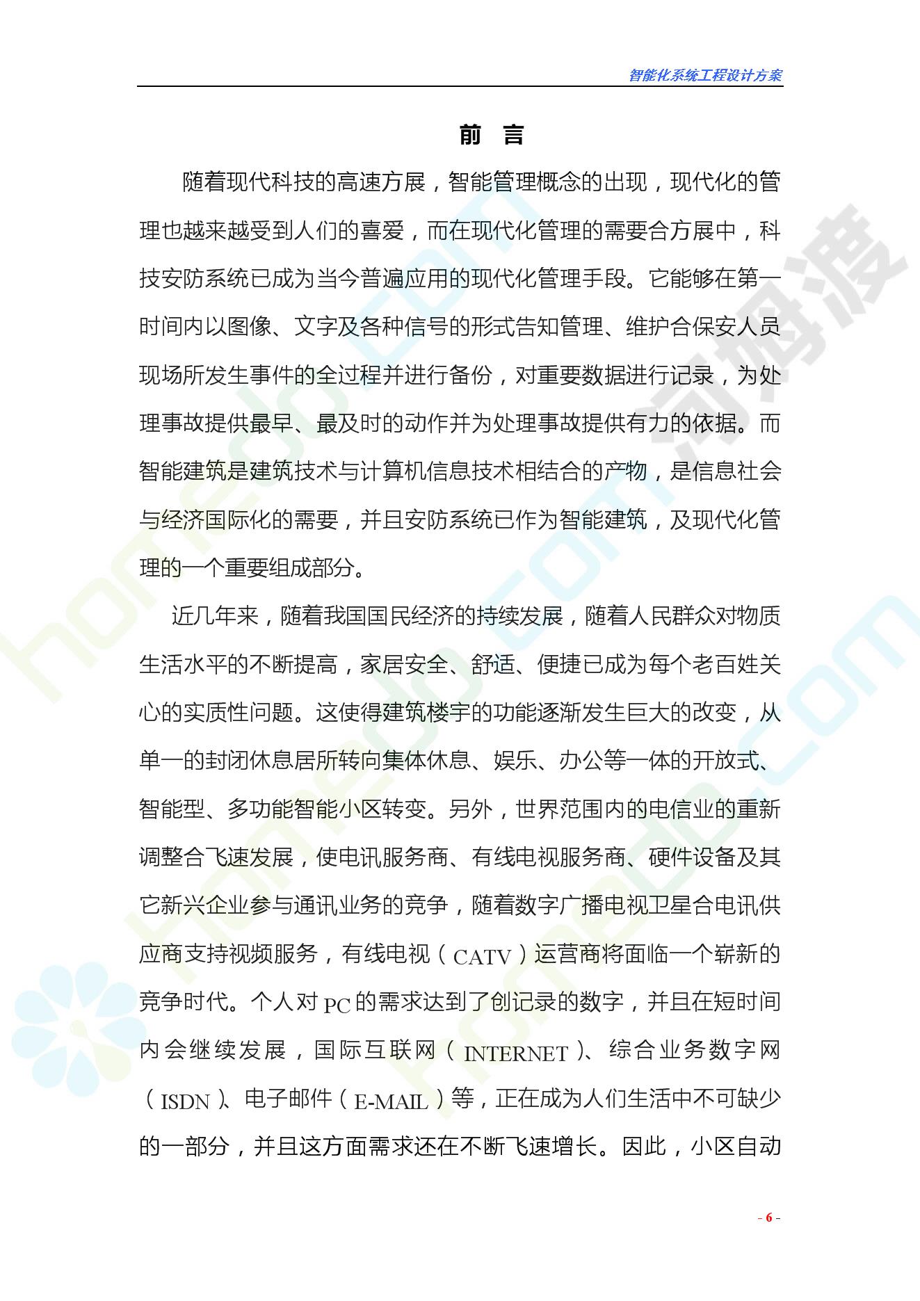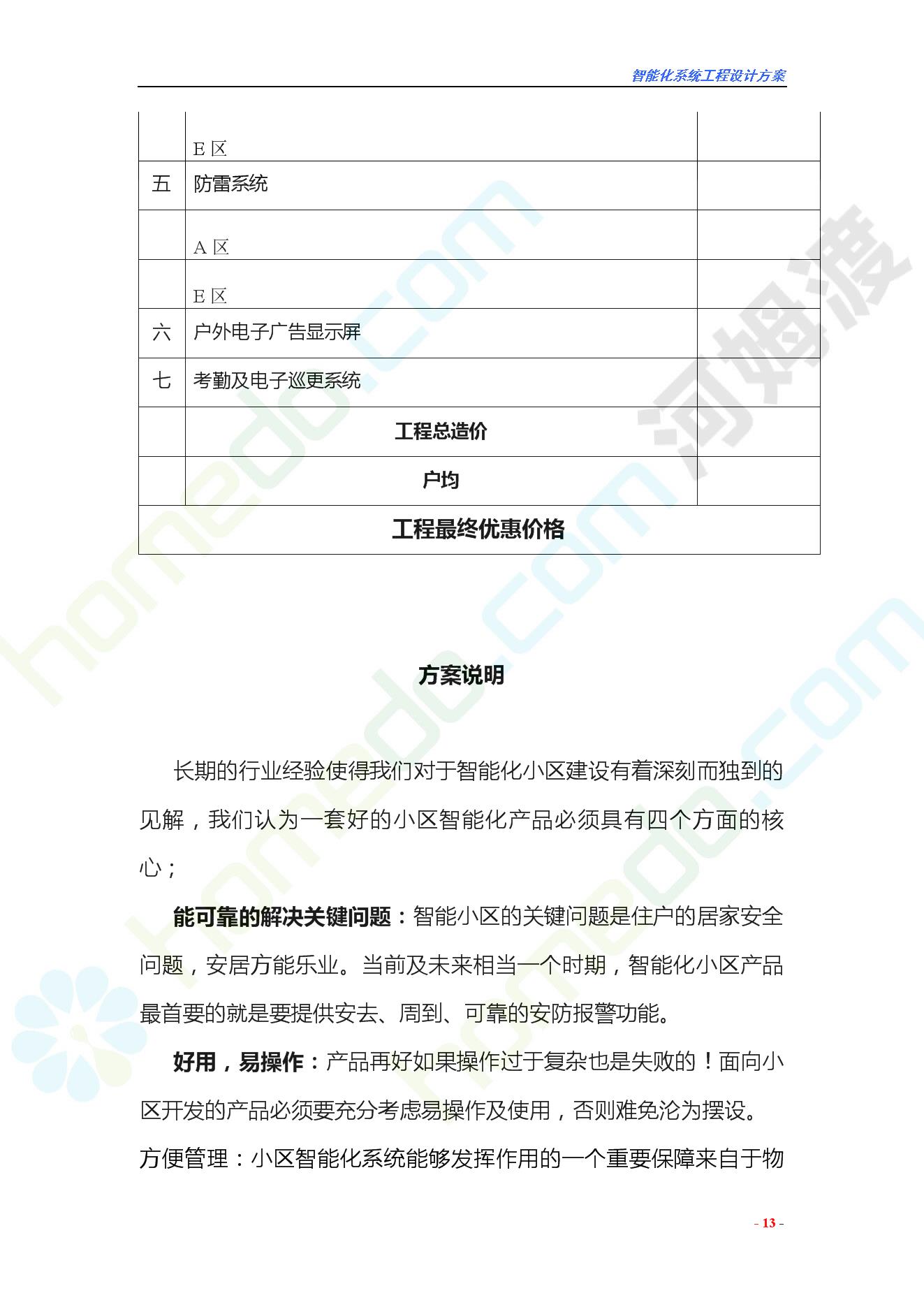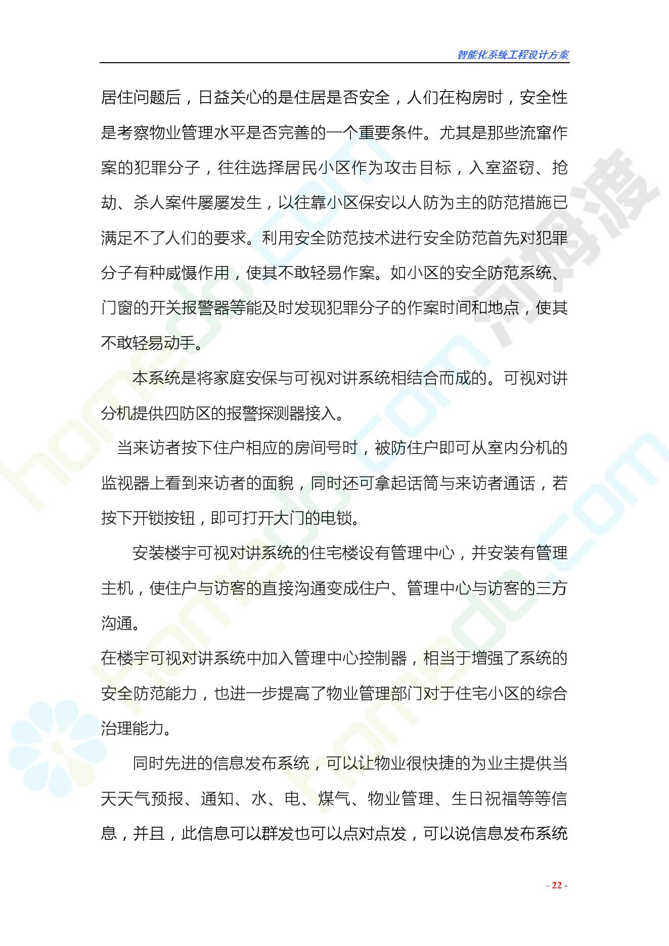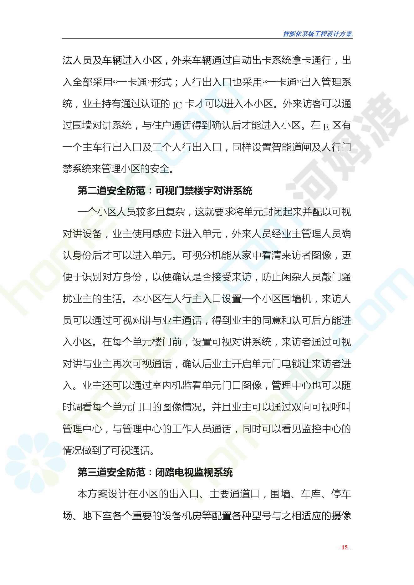 方案简介 智能化工程各系统要体现当今时代潮流,设计合理,具有既可独立控制,又能整体管理的功能,安装维护方便,安全可靠。