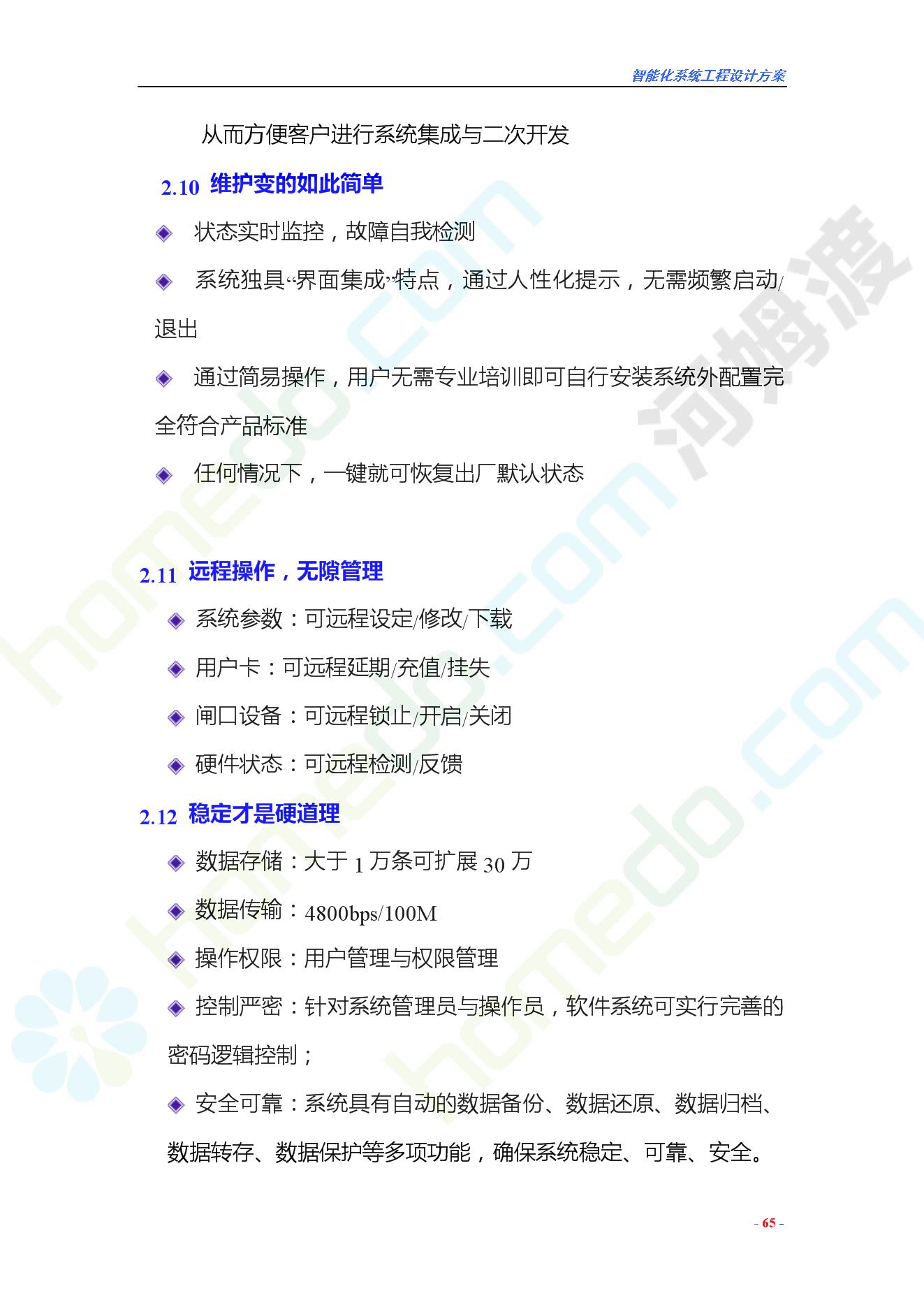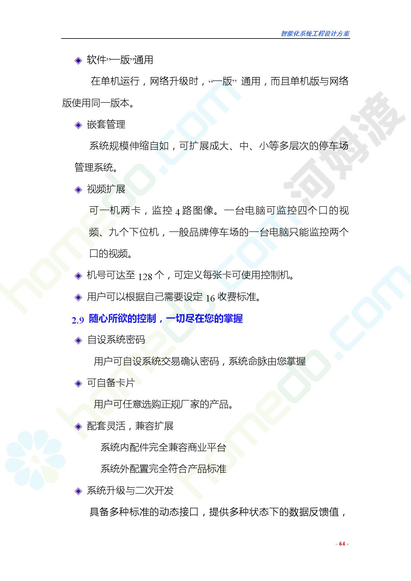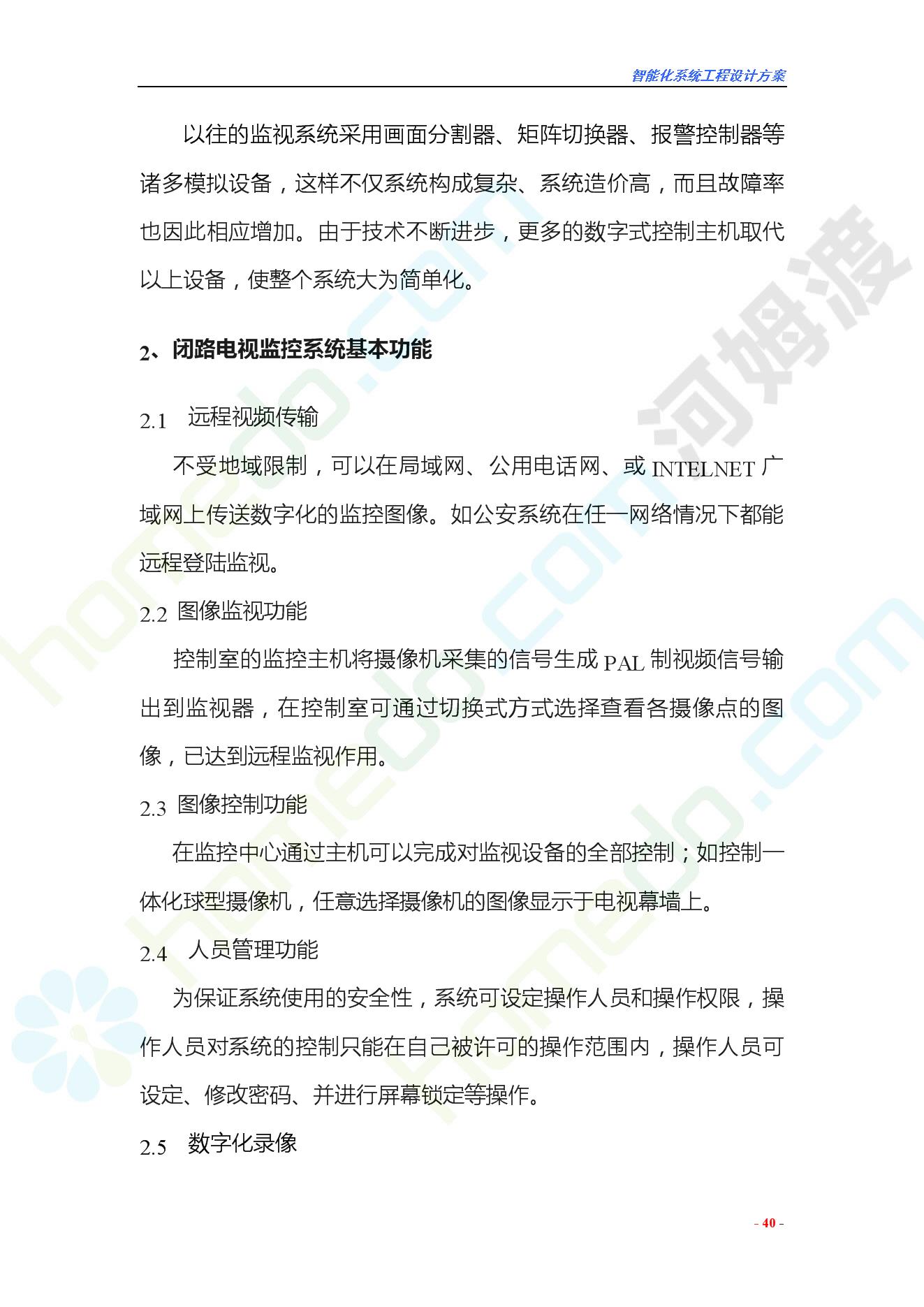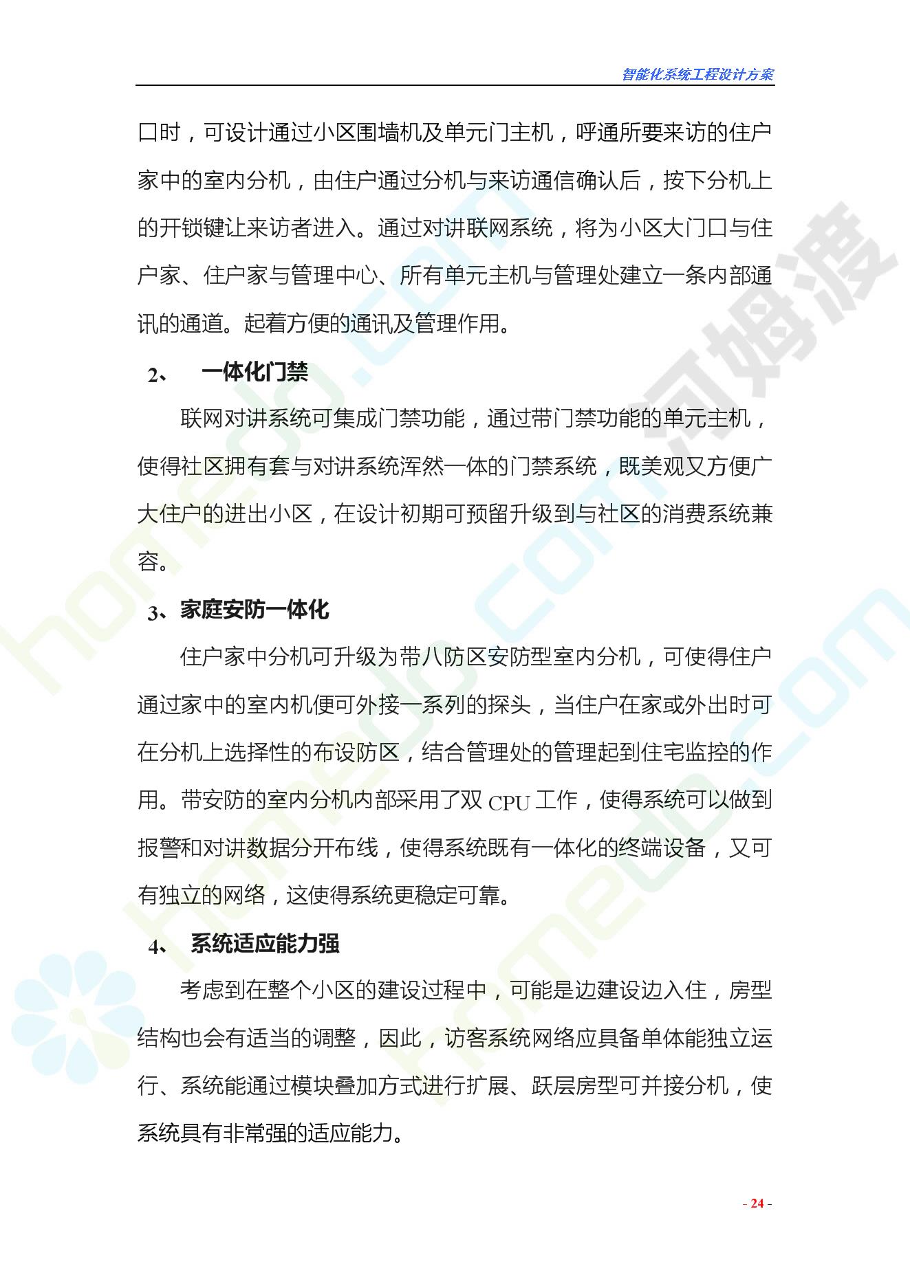 方案简介 智能化工程各系统要体现当今时代潮流,设计合理,具有既可独立控制,又能整体管理的功能,安装维护方便,安全可靠。