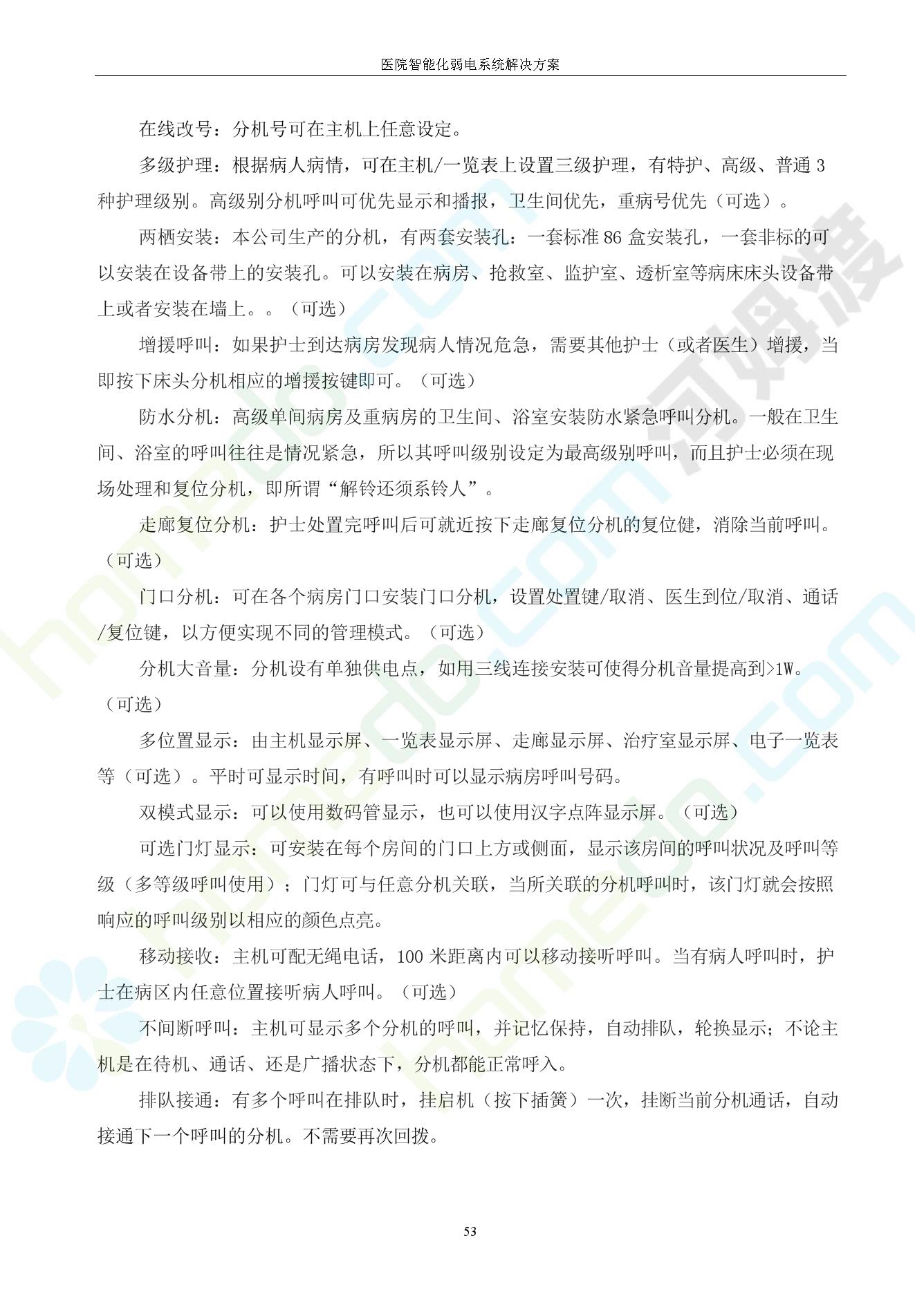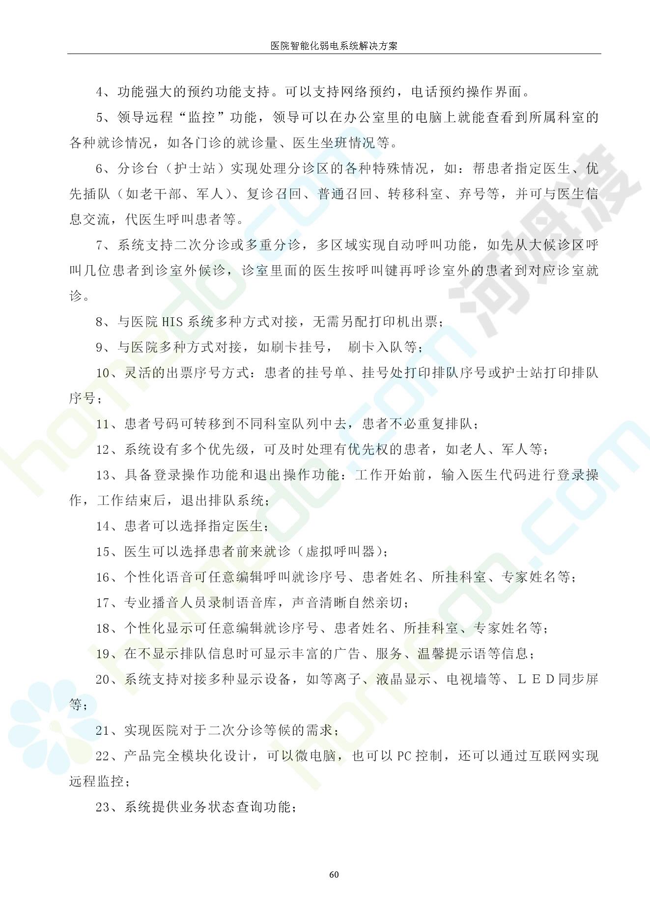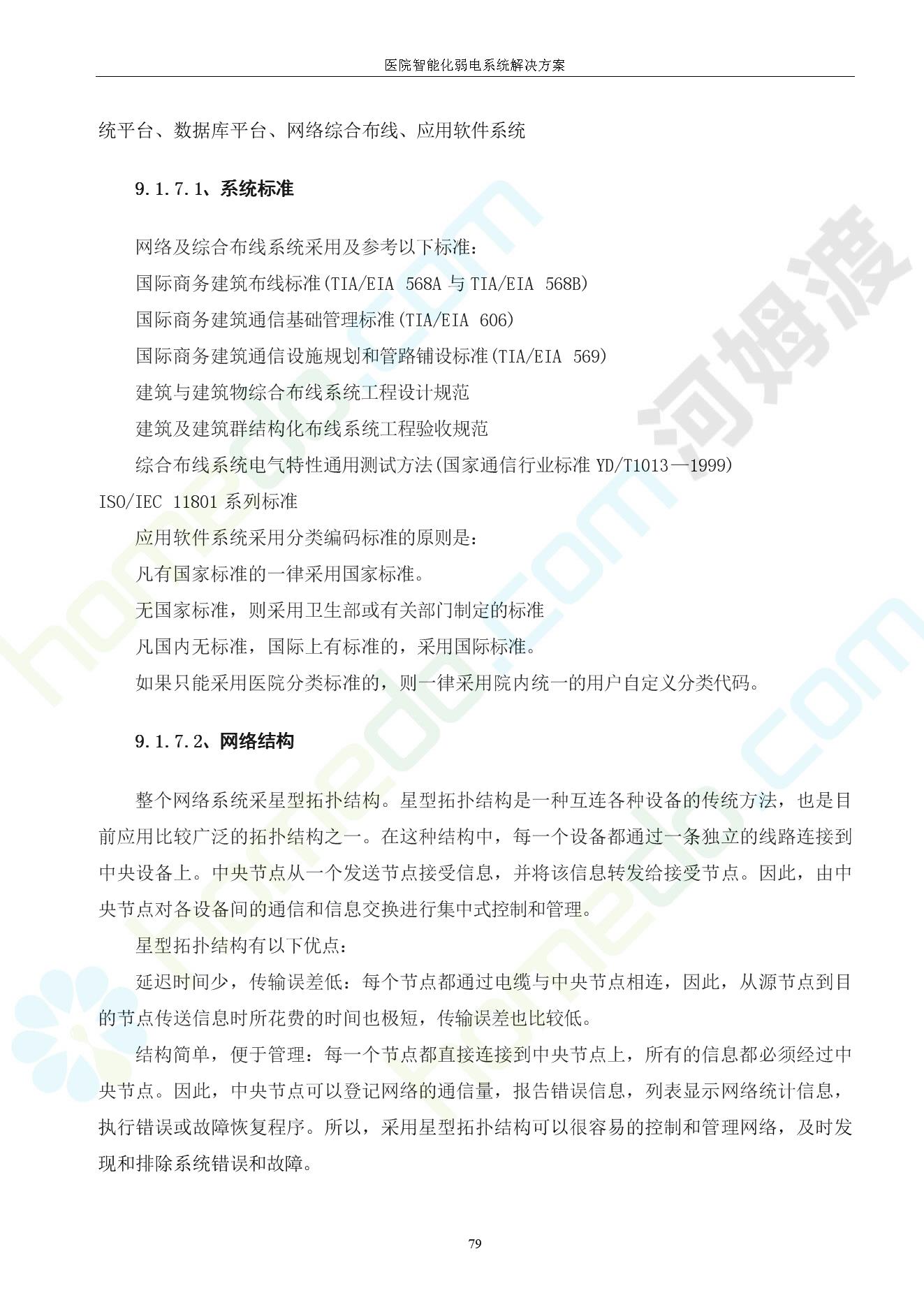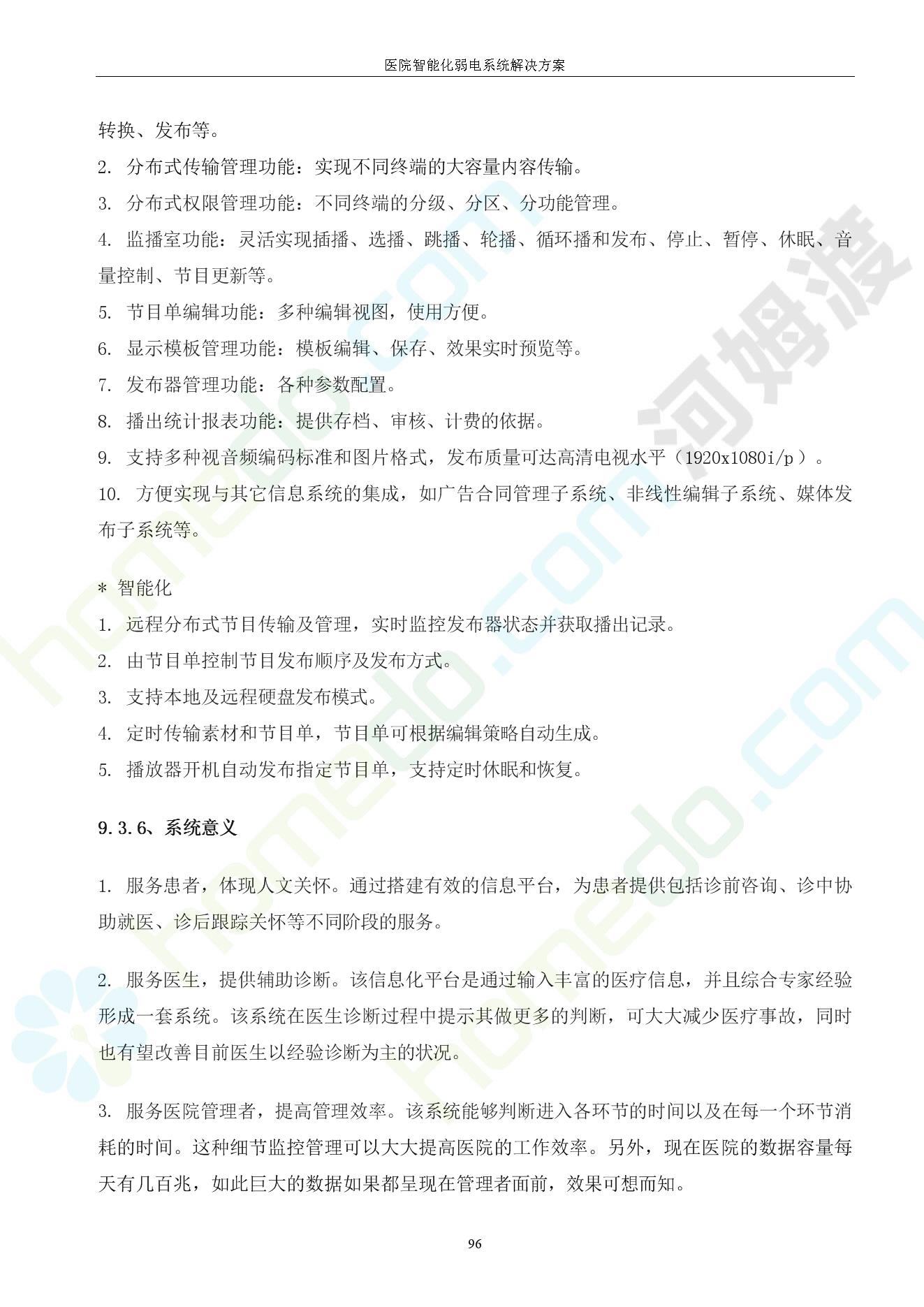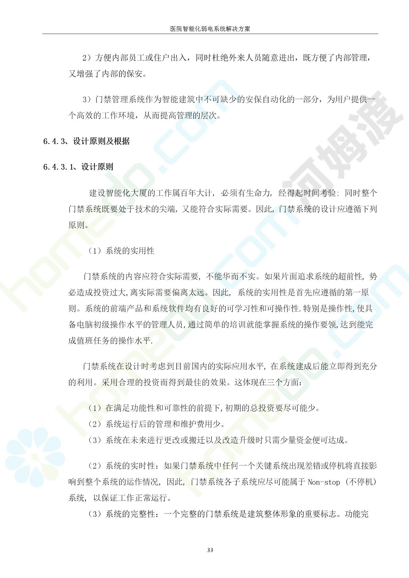 方案简介 由于智能化医院功能复杂,科技含量高,它的设计涉及到建筑学、 护理学、卫生学、生物学工程学等科学领域,加之医学发展快,与各种现代的高新技术相互渗透和结合,都影响医院的功能布局的设计