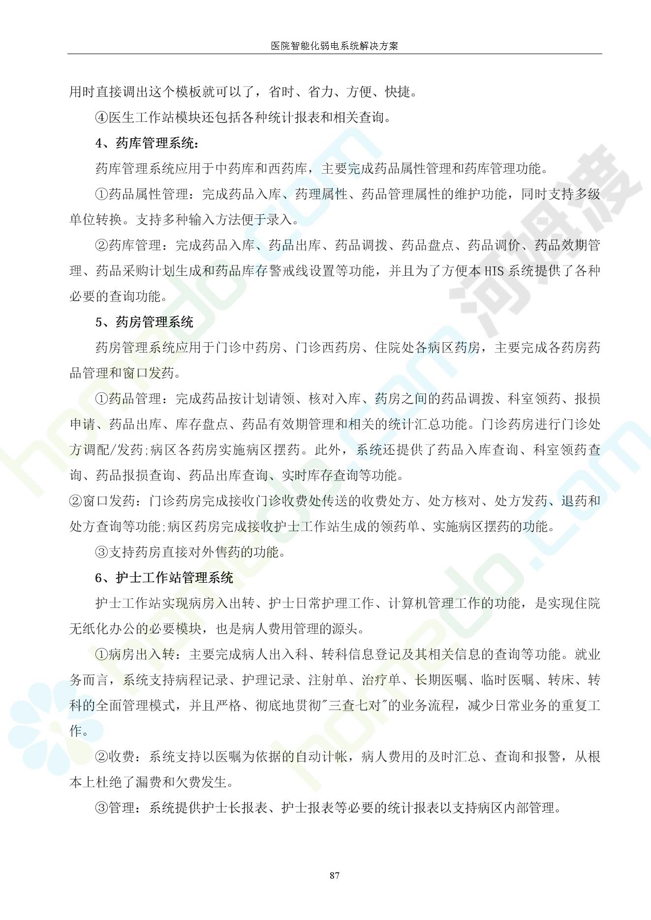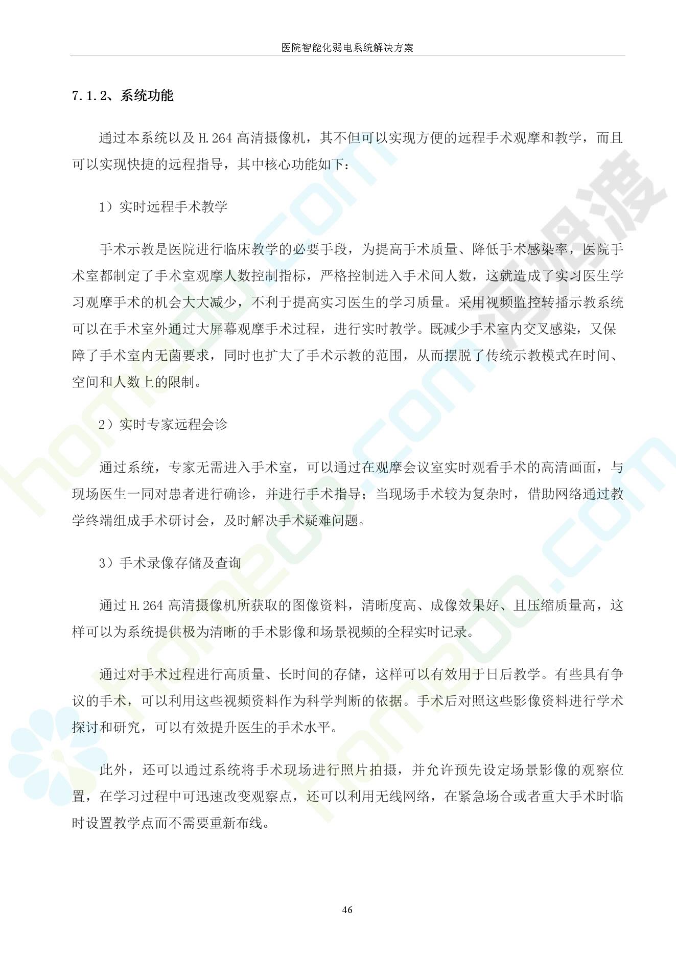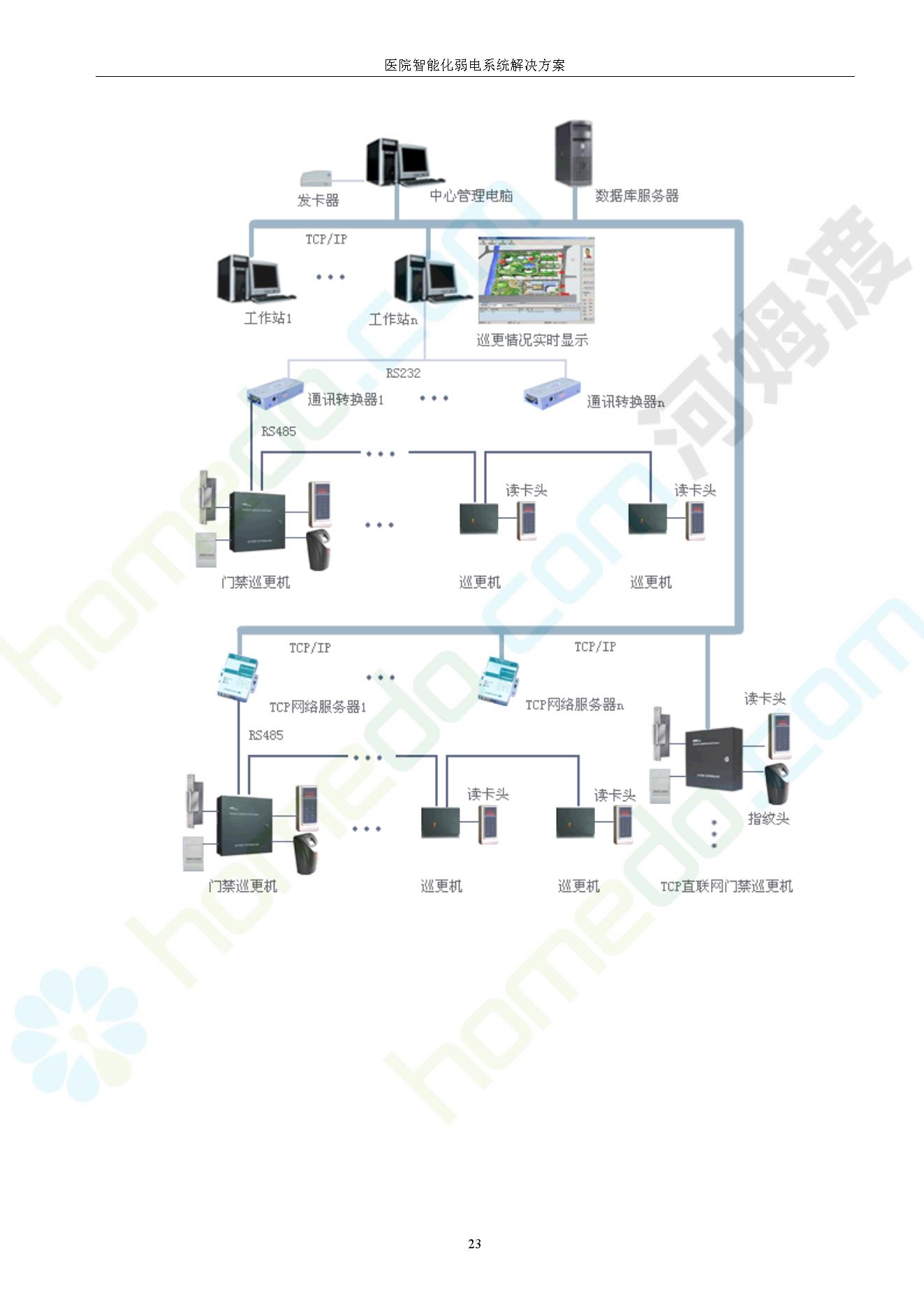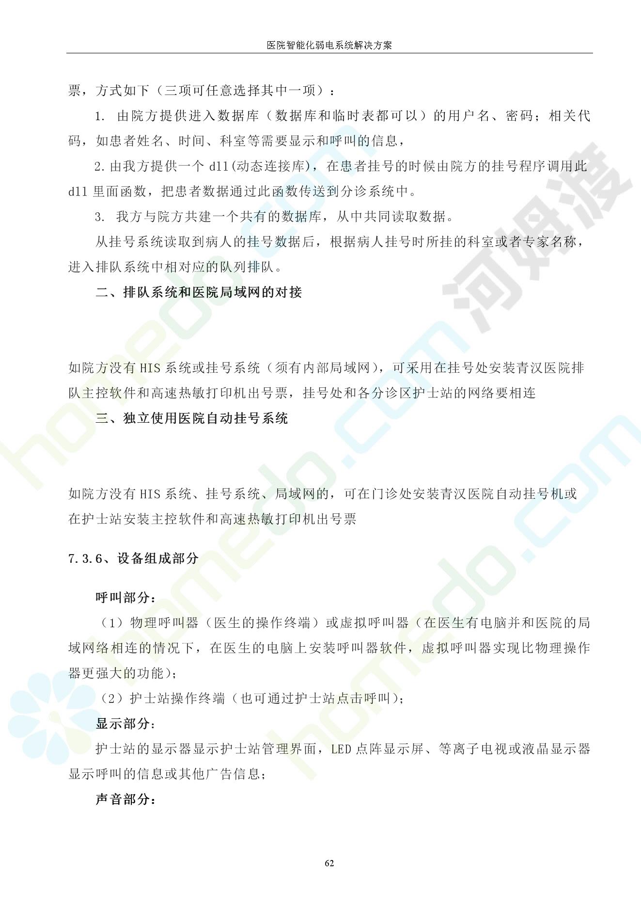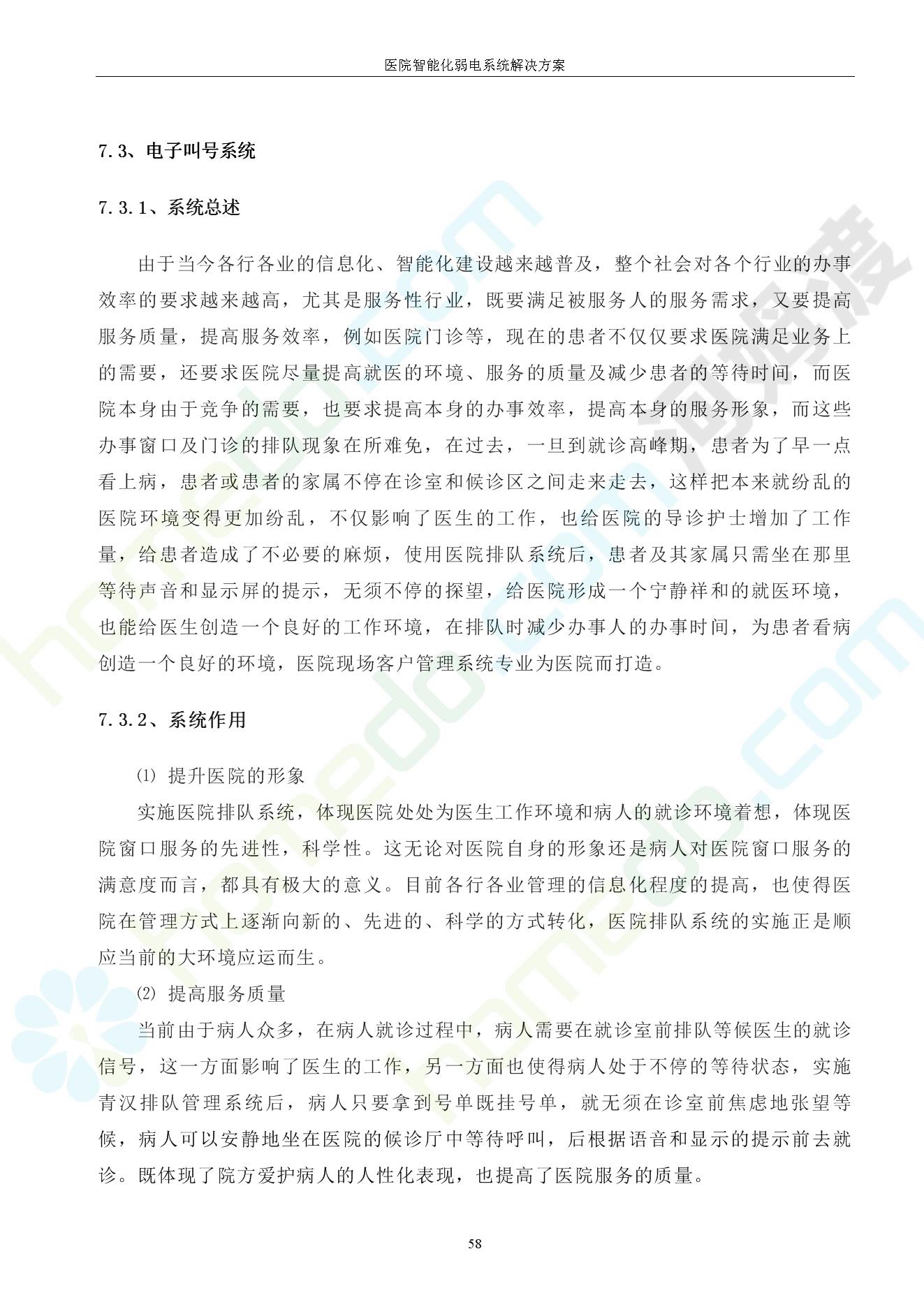 方案简介 由于智能化医院功能复杂,科技含量高,它的设计涉及到建筑学、 护理学、卫生学、生物学工程学等科学领域,加之医学发展快,与各种现代的高新技术相互渗透和结合,都影响医院的功能布局的设计