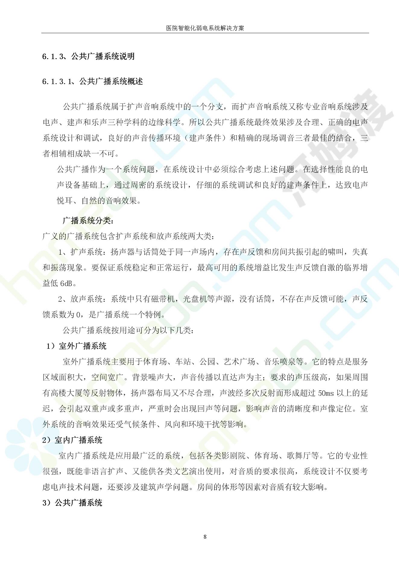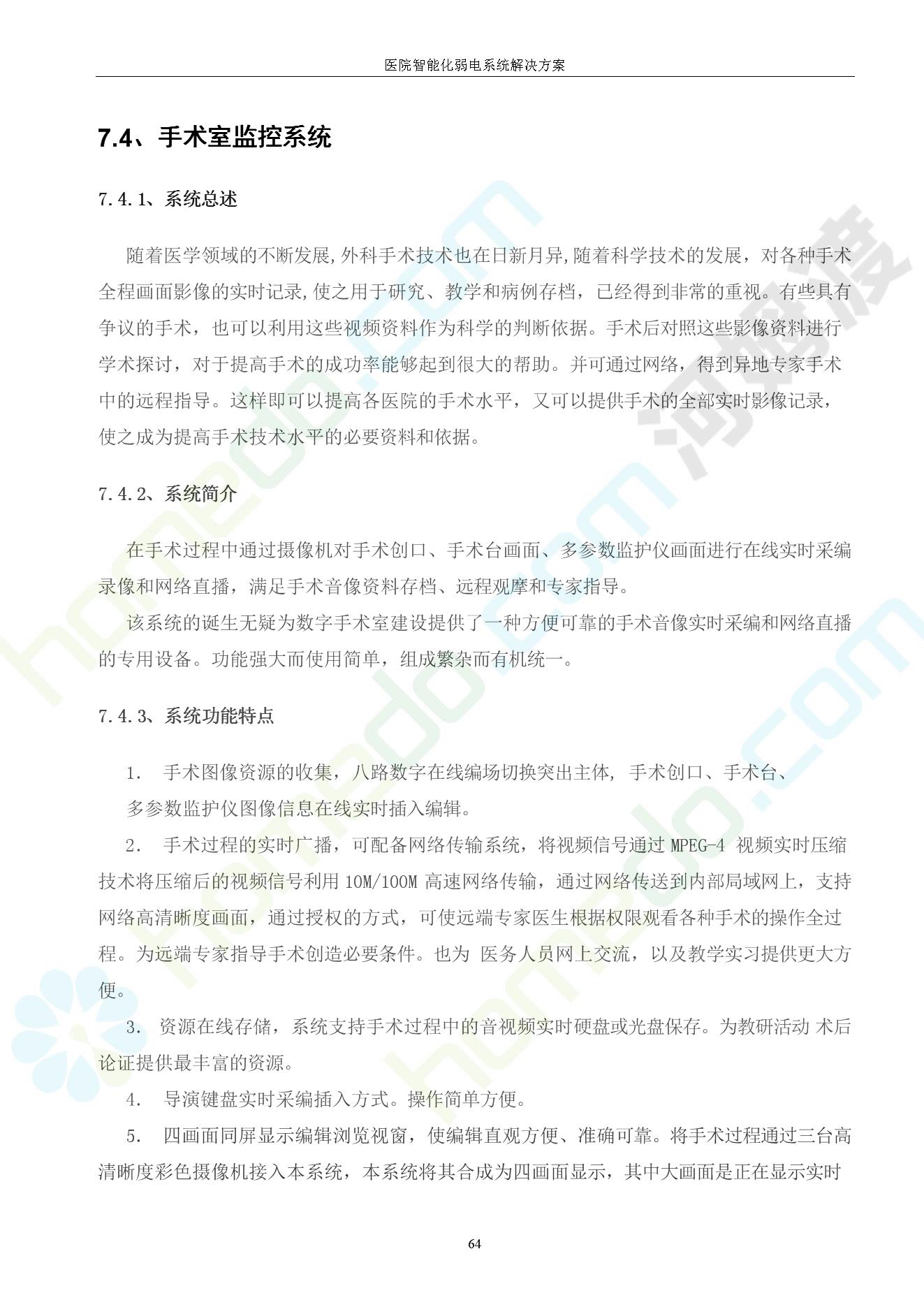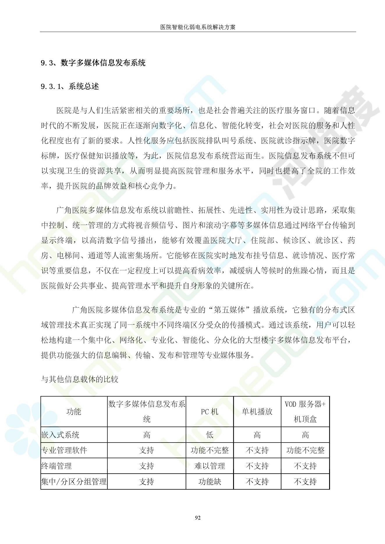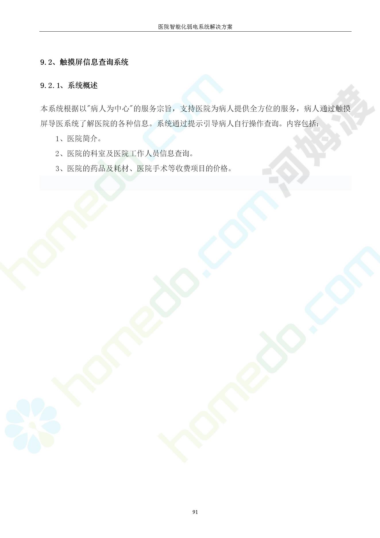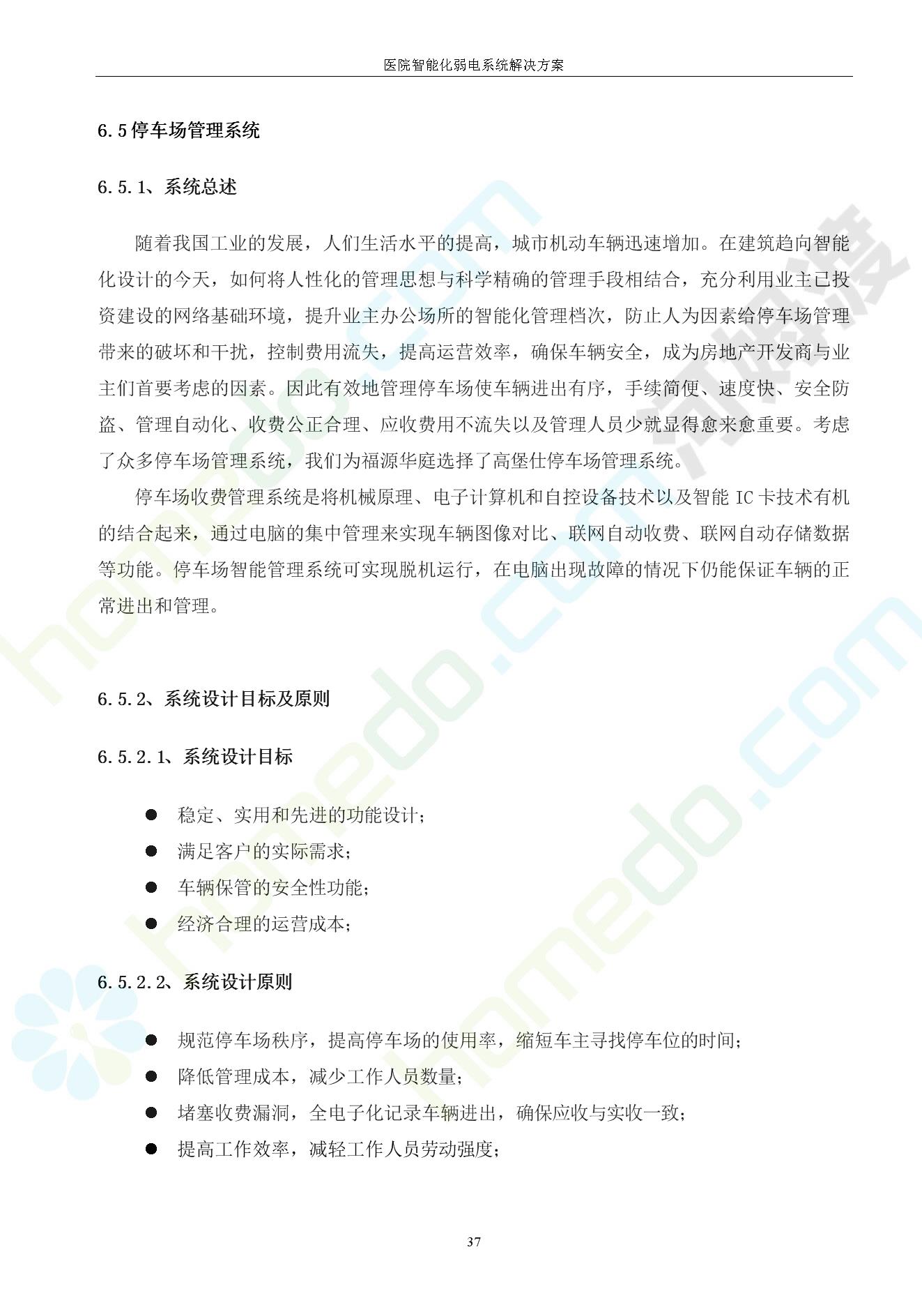 方案简介 由于智能化医院功能复杂,科技含量高,它的设计涉及到建筑学、 护理学、卫生学、生物学工程学等科学领域,加之医学发展快,与各种现代的高新技术相互渗透和结合,都影响医院的功能布局的设计