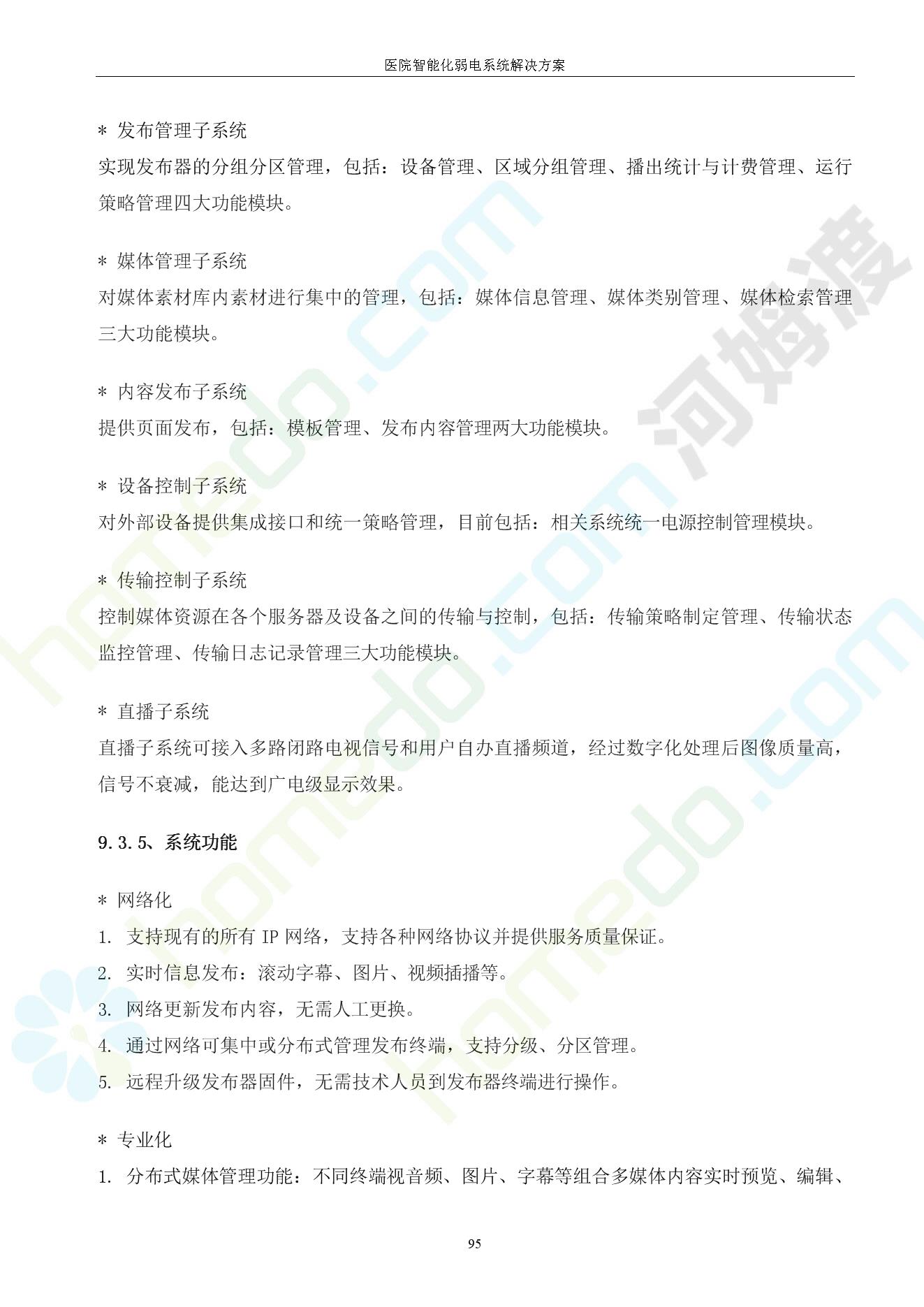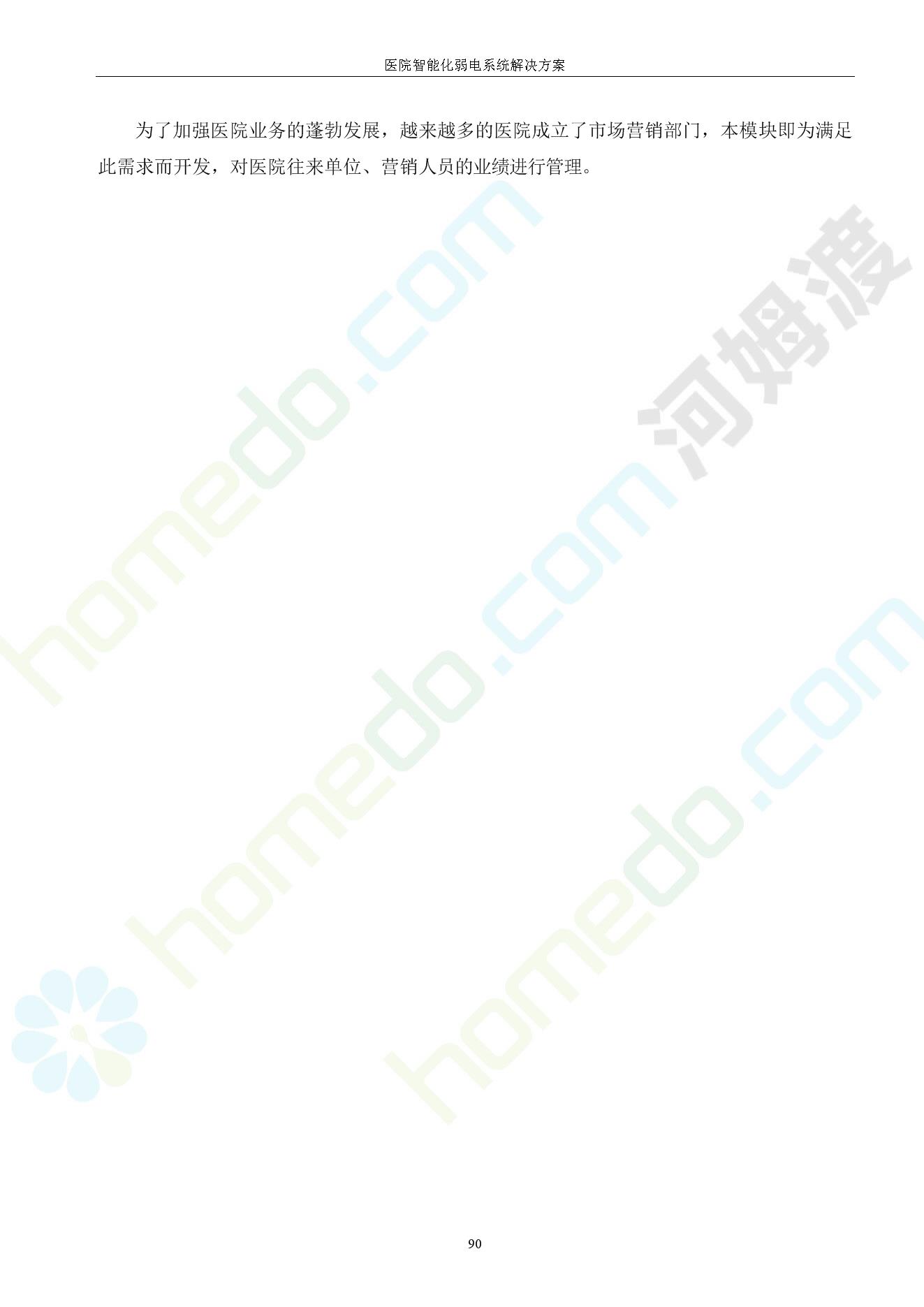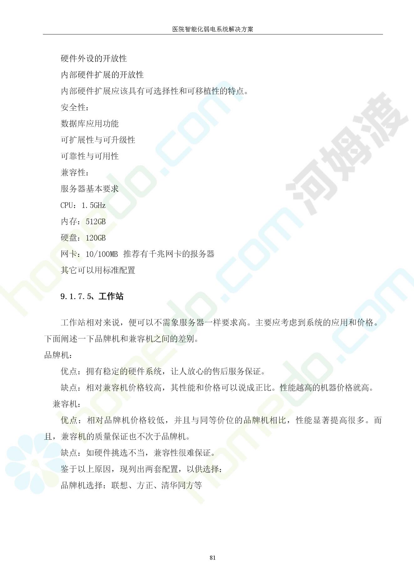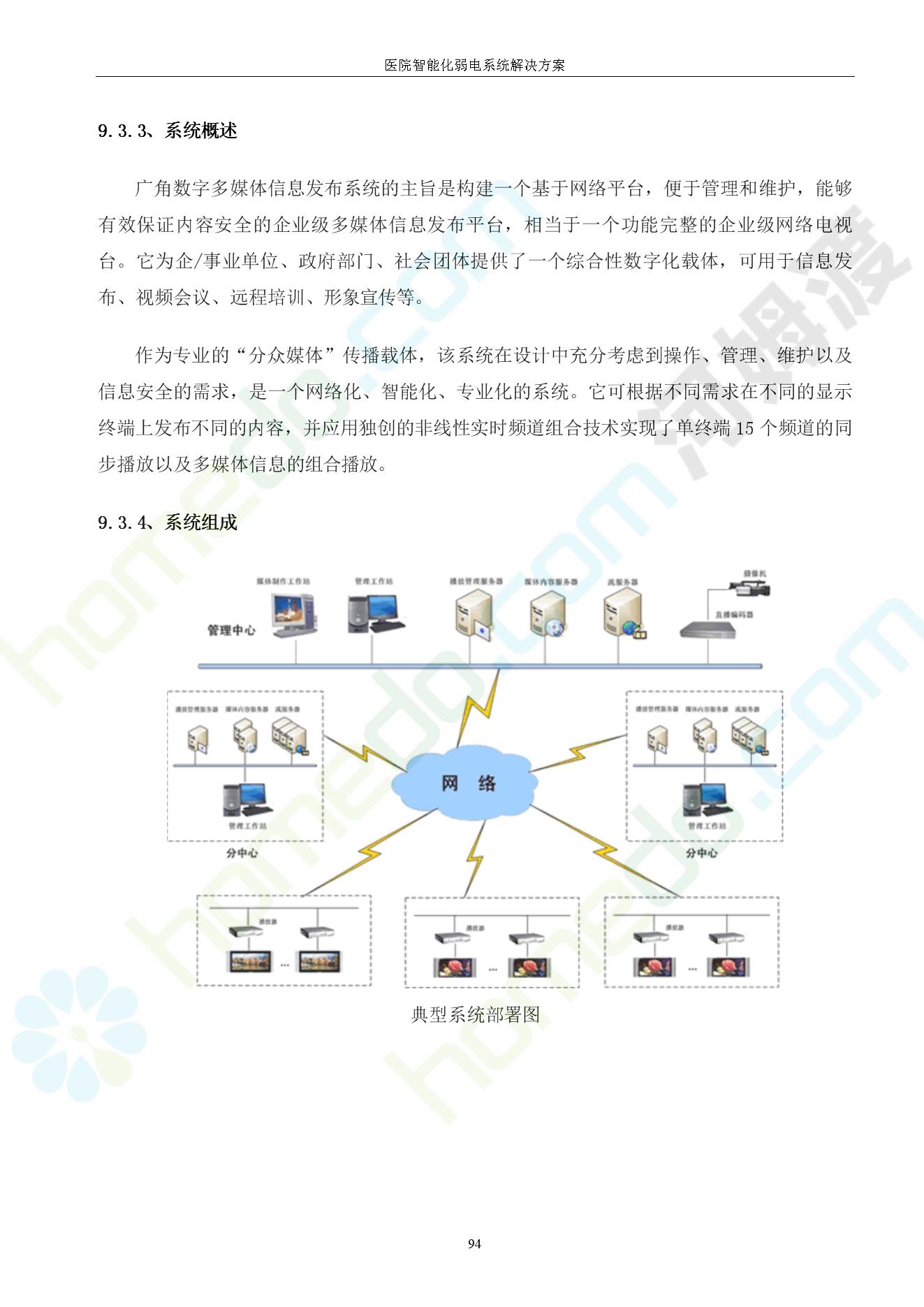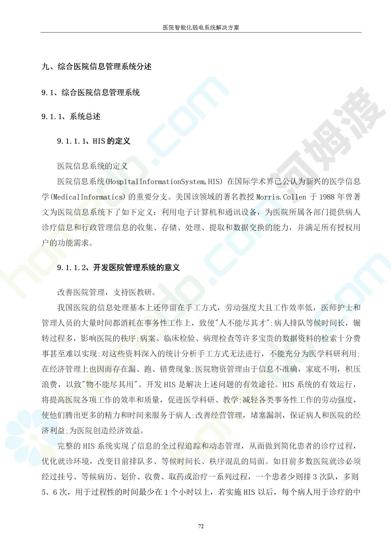 方案简介 由于智能化医院功能复杂,科技含量高,它的设计涉及到建筑学、 护理学、卫生学、生物学工程学等科学领域,加之医学发展快,与各种现代的高新技术相互渗透和结合,都影响医院的功能布局的设计