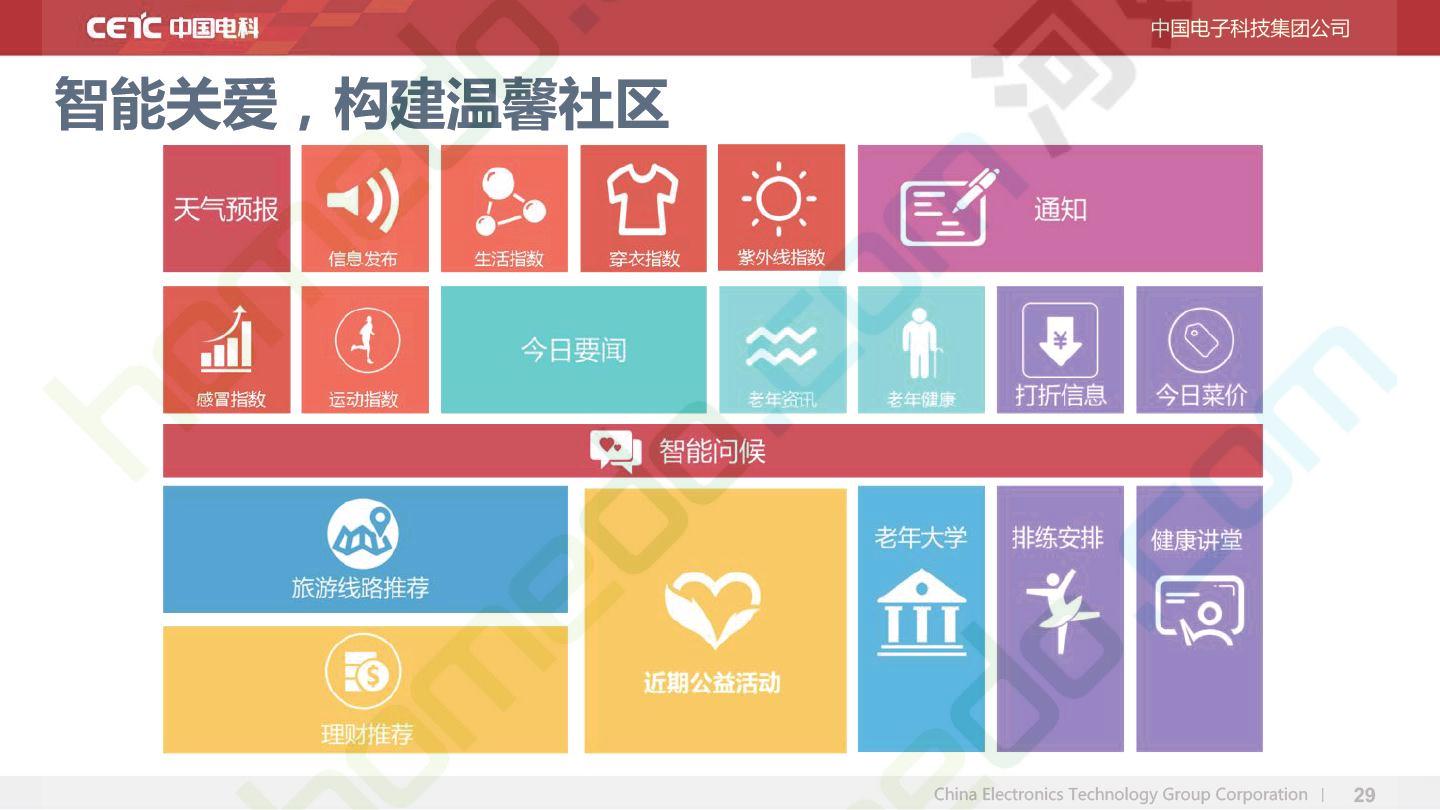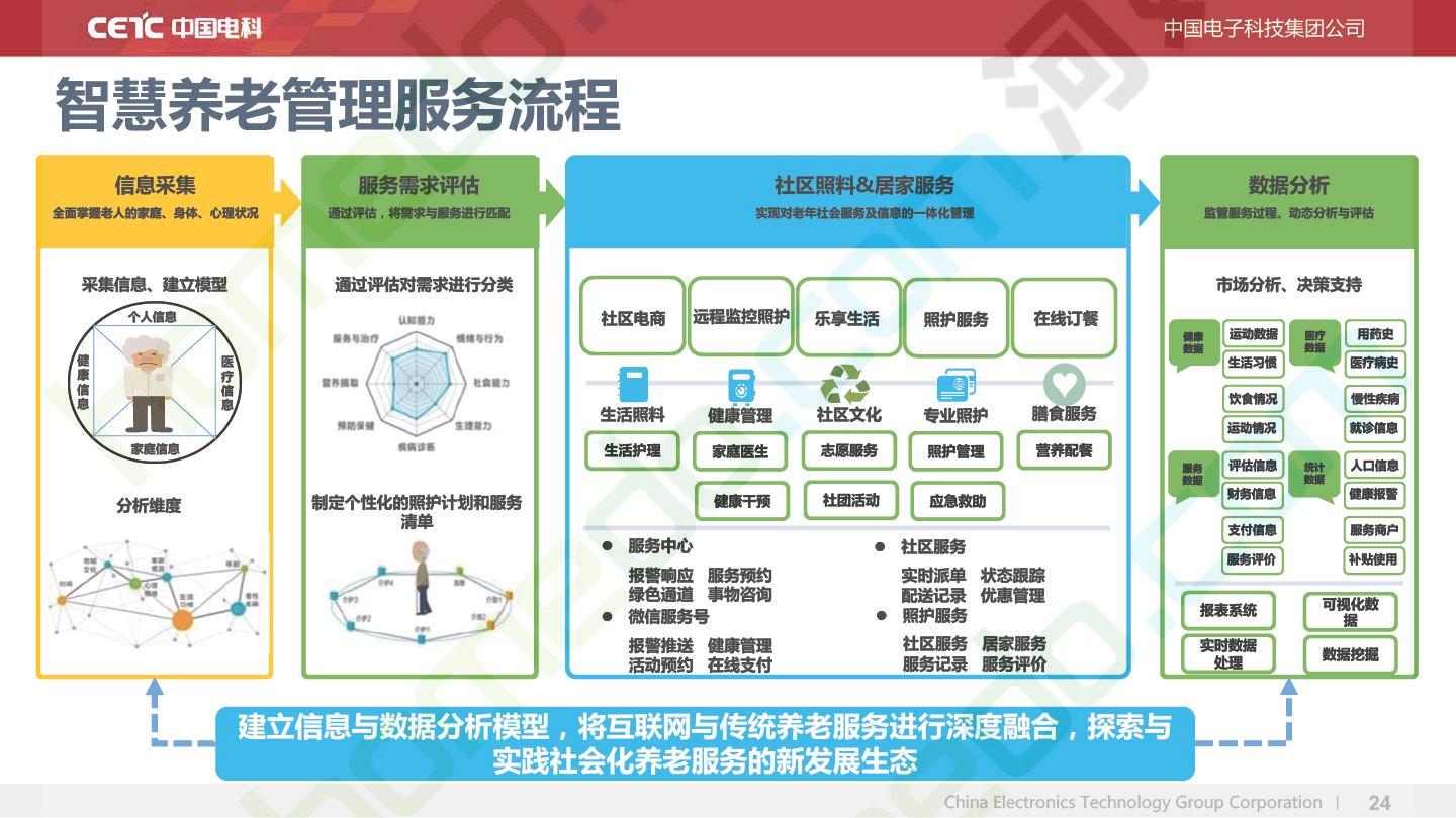 方案简介 智慧养老综合服务平台的构建,可以支撑社区养老服务中心,在各个社区养老中心里提供各类服务,包括医疗、膳食、关怀、法律、旅游、理财等等