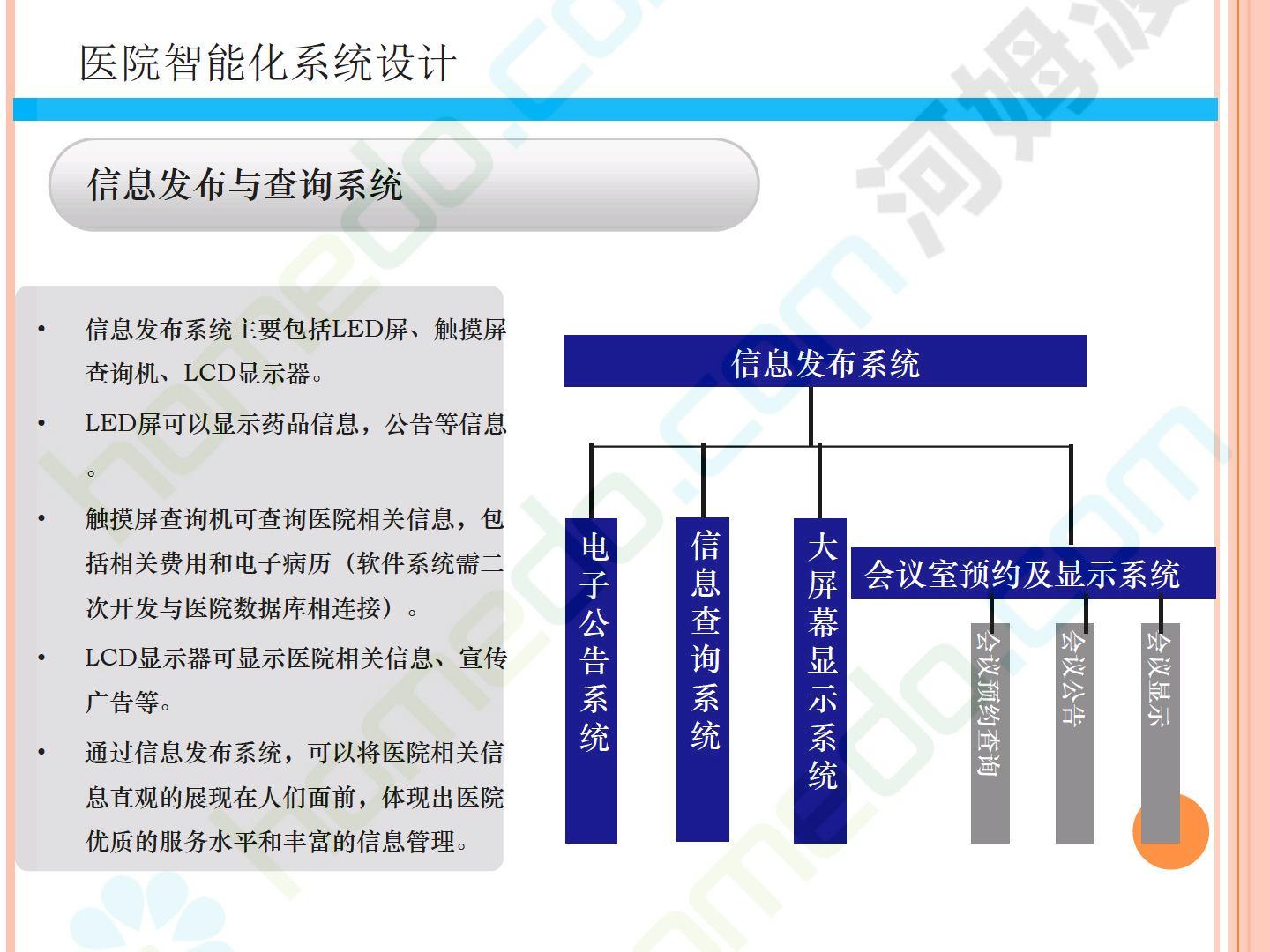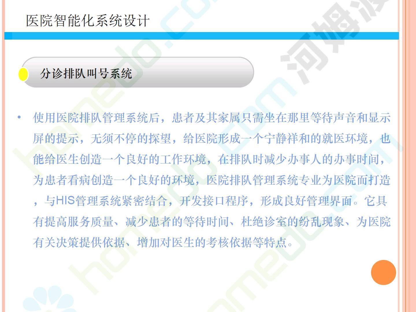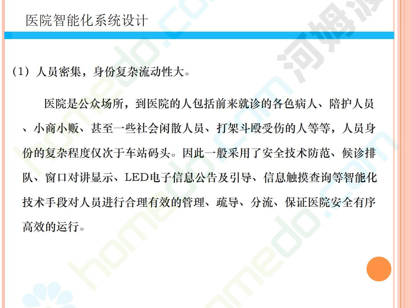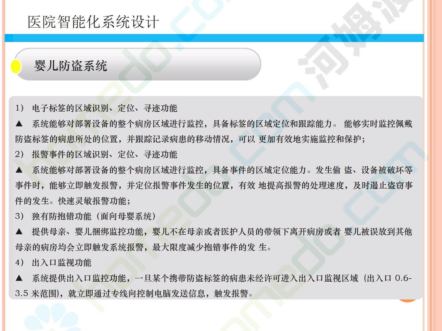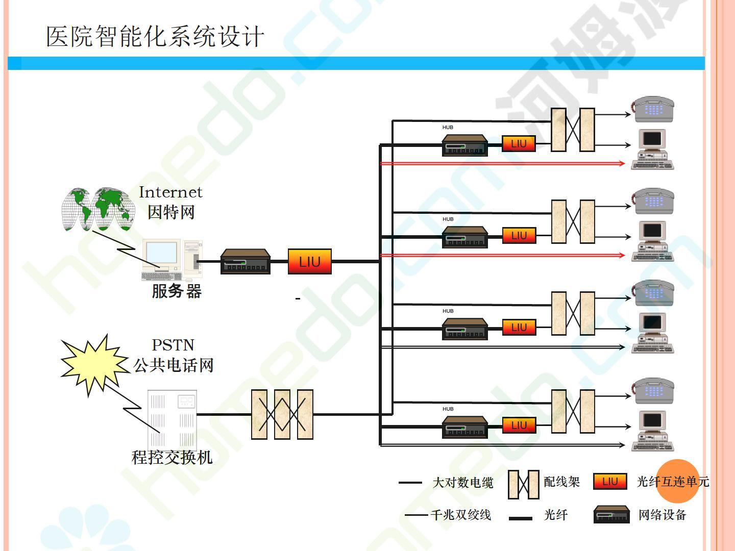 方案简介 医院建筑智能化、信息化系统的实现,提高医院服务效率,改善医疗环境,融洽医患关系,达到经济效益与社会效益的双赢。这是一个智能建筑行业应该关注的问题,也是智能化医院解决方案构建的基础和核心。