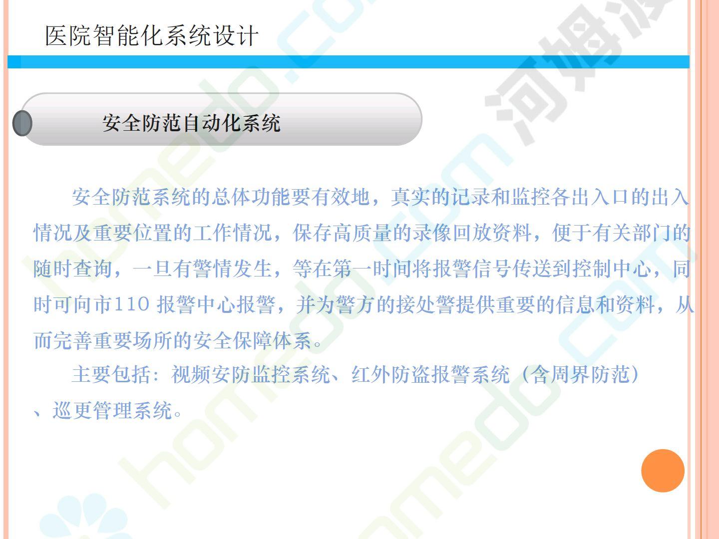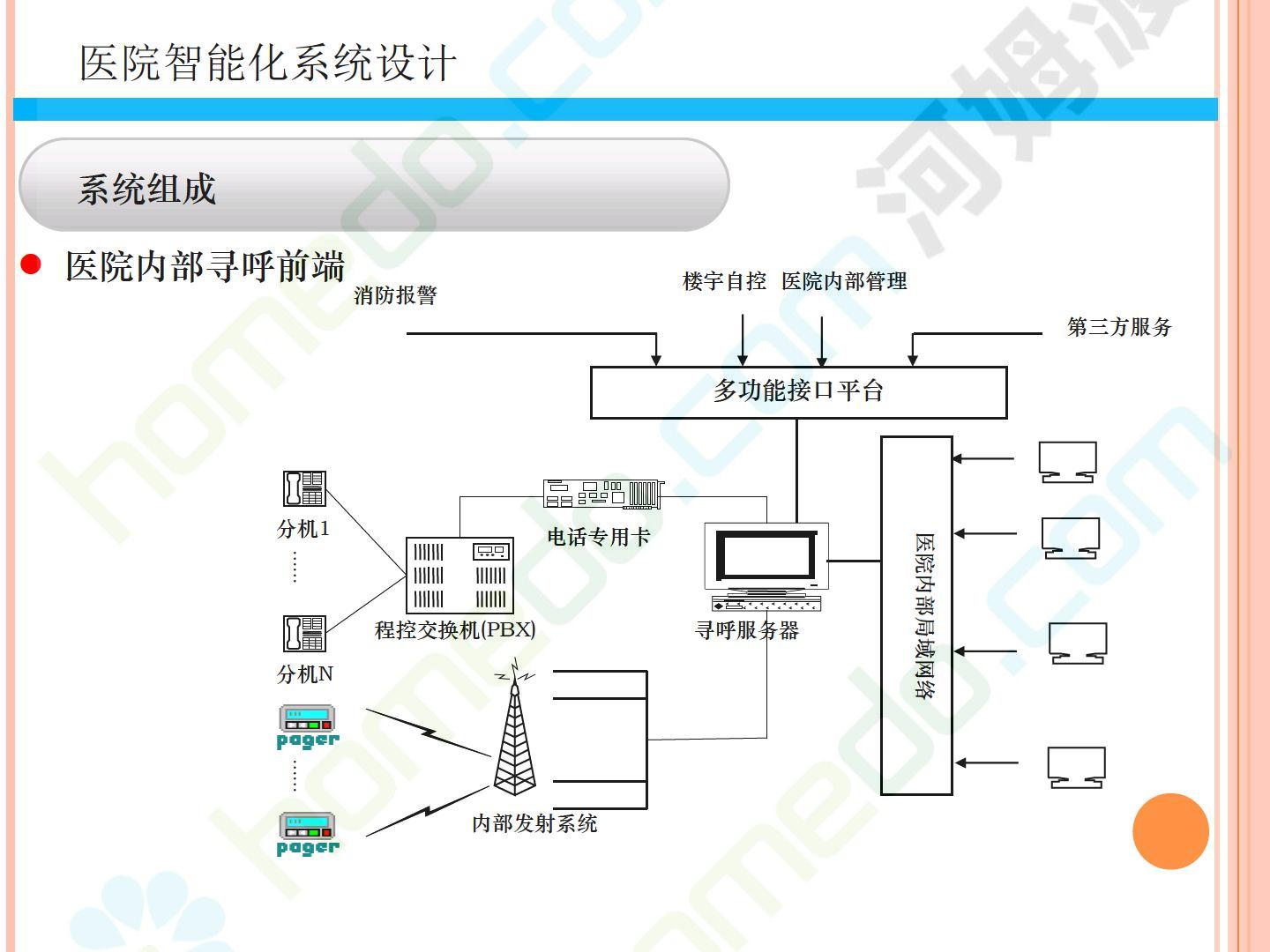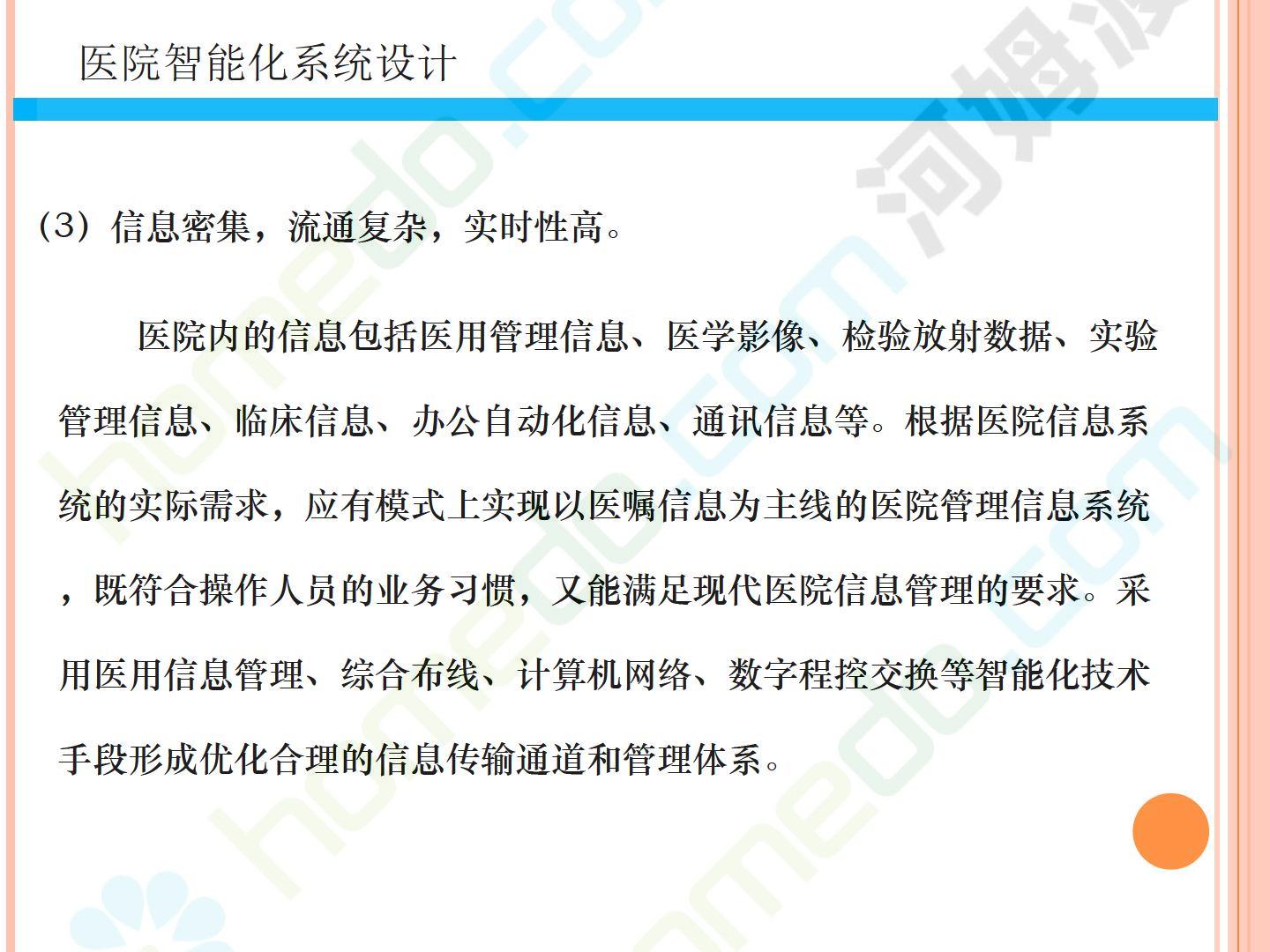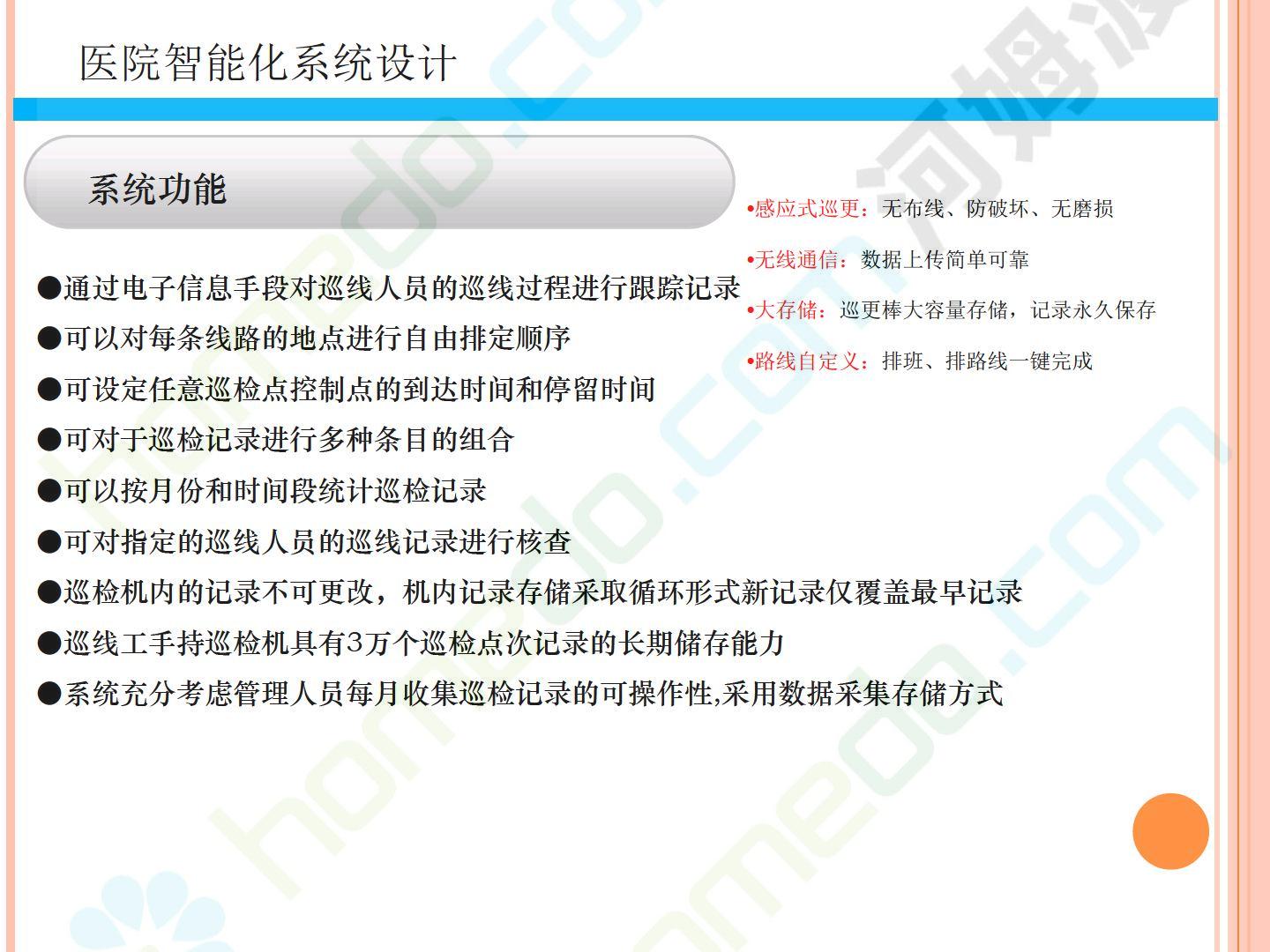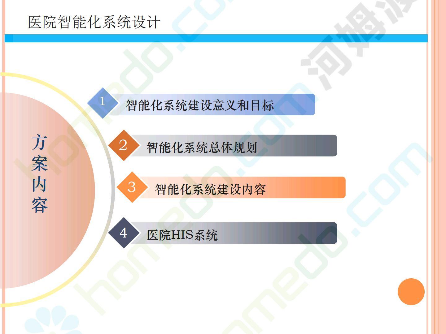 方案简介 医院建筑智能化、信息化系统的实现,提高医院服务效率,改善医疗环境,融洽医患关系,达到经济效益与社会效益的双赢。这是一个智能建筑行业应该关注的问题,也是智能化医院解决方案构建的基础和核心。