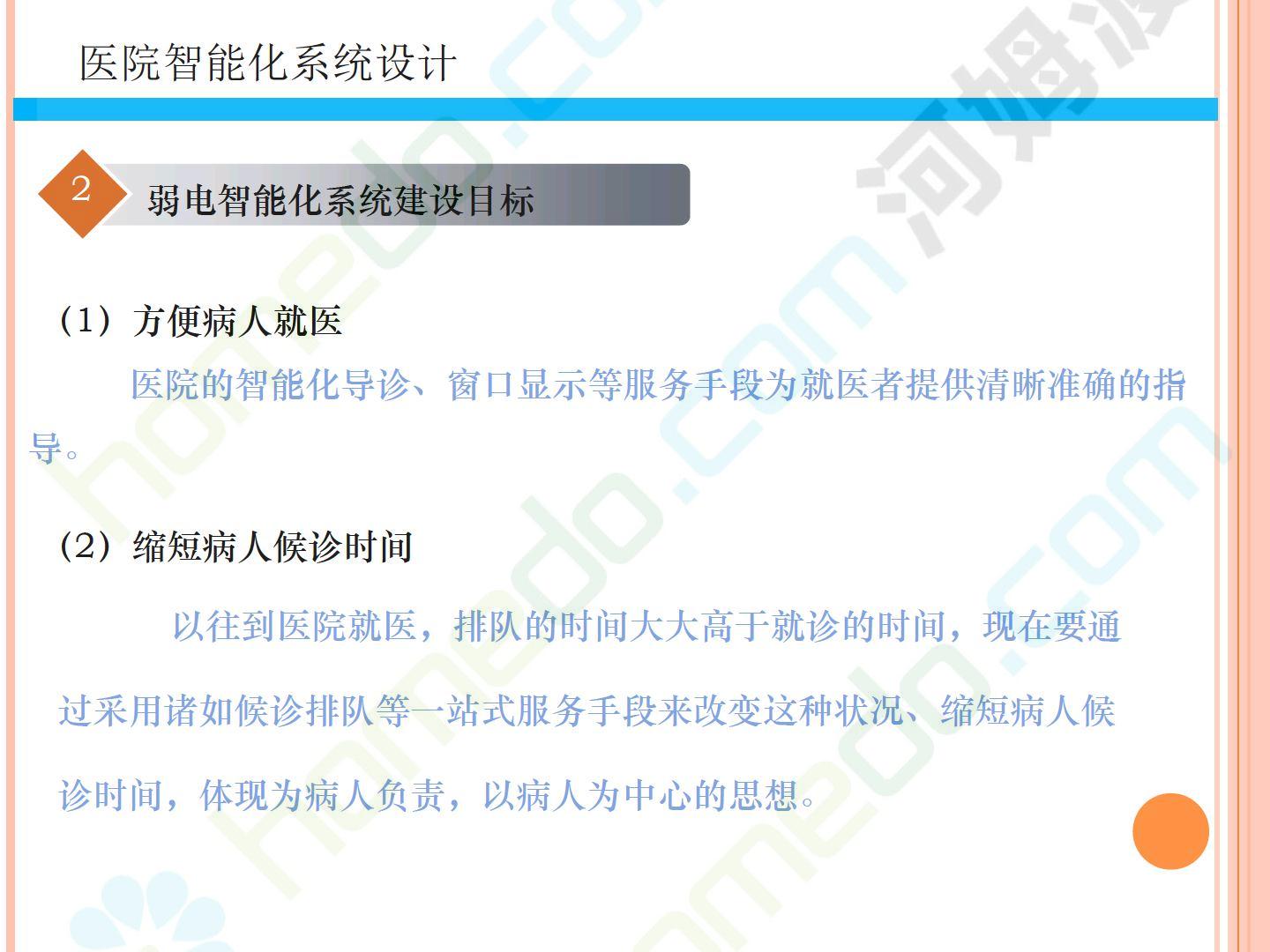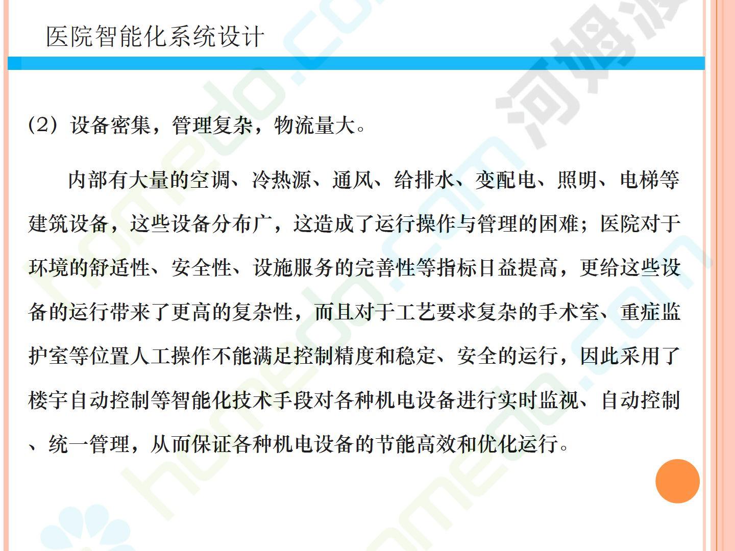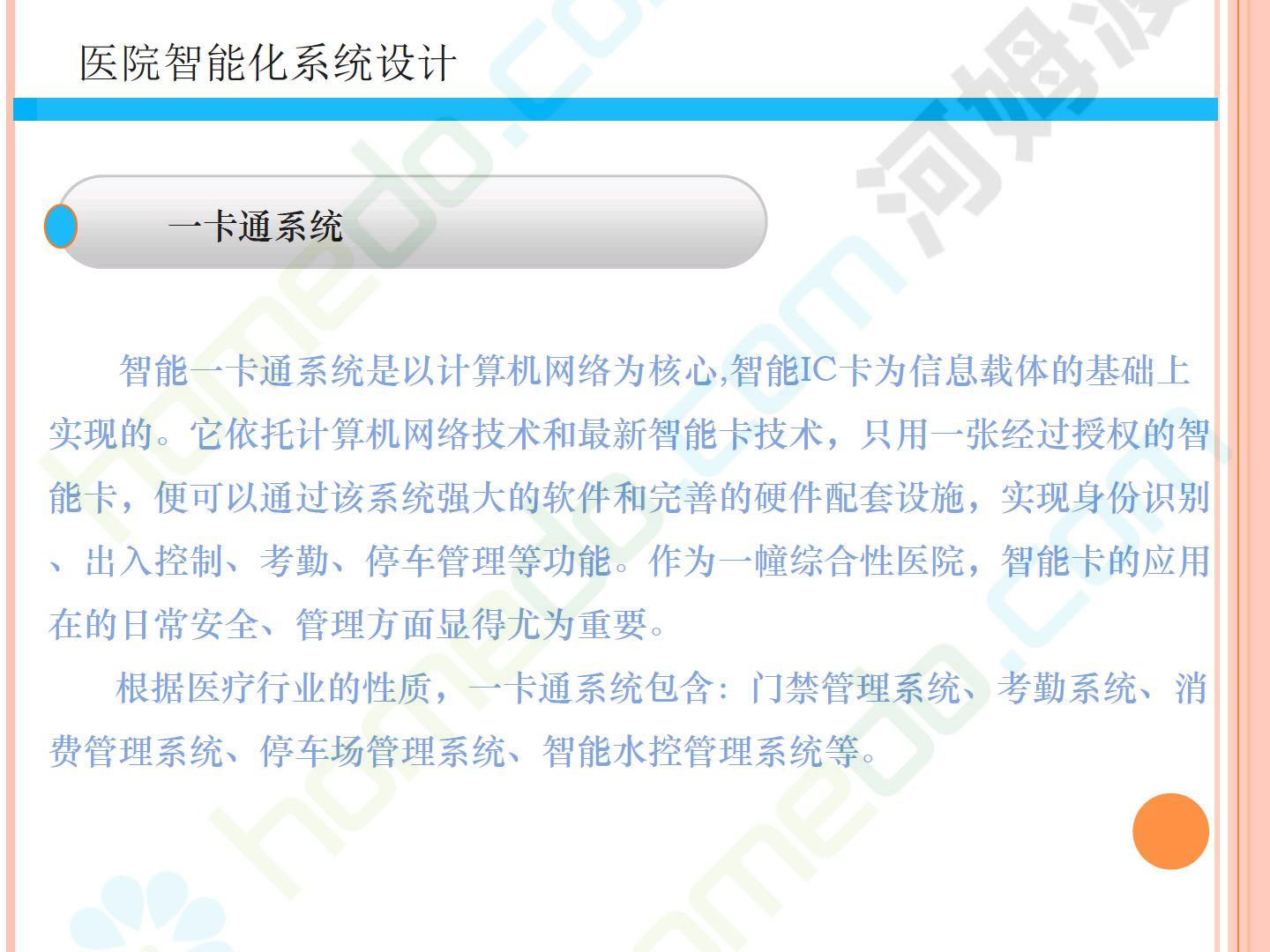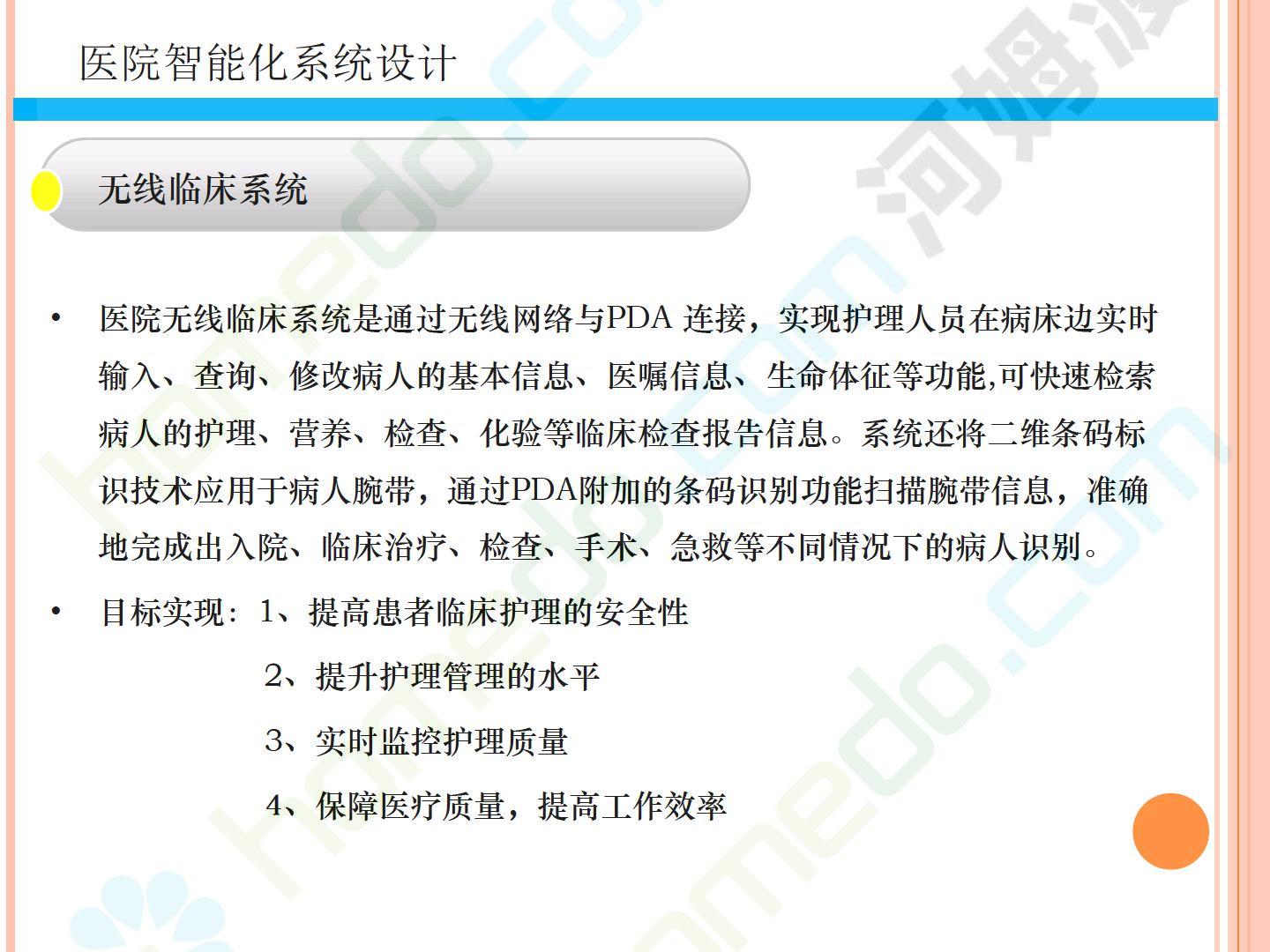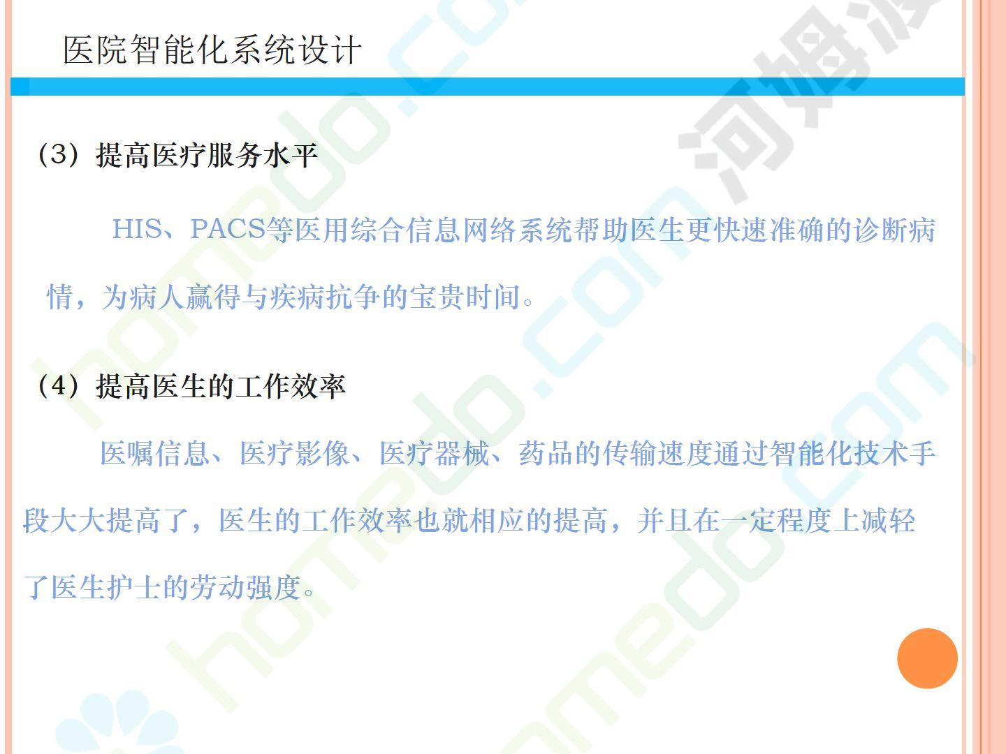 方案简介 医院建筑智能化、信息化系统的实现,提高医院服务效率,改善医疗环境,融洽医患关系,达到经济效益与社会效益的双赢。这是一个智能建筑行业应该关注的问题,也是智能化医院解决方案构建的基础和核心。