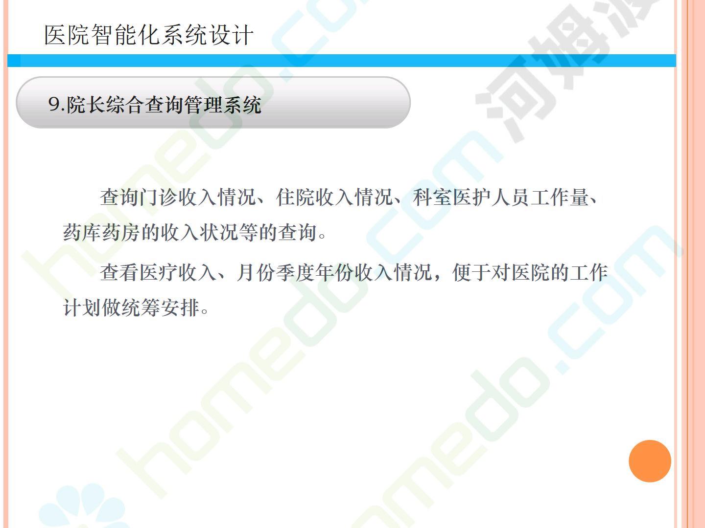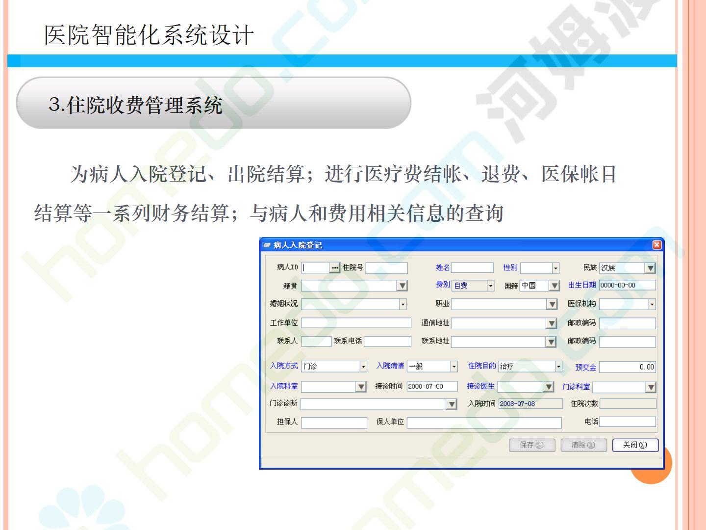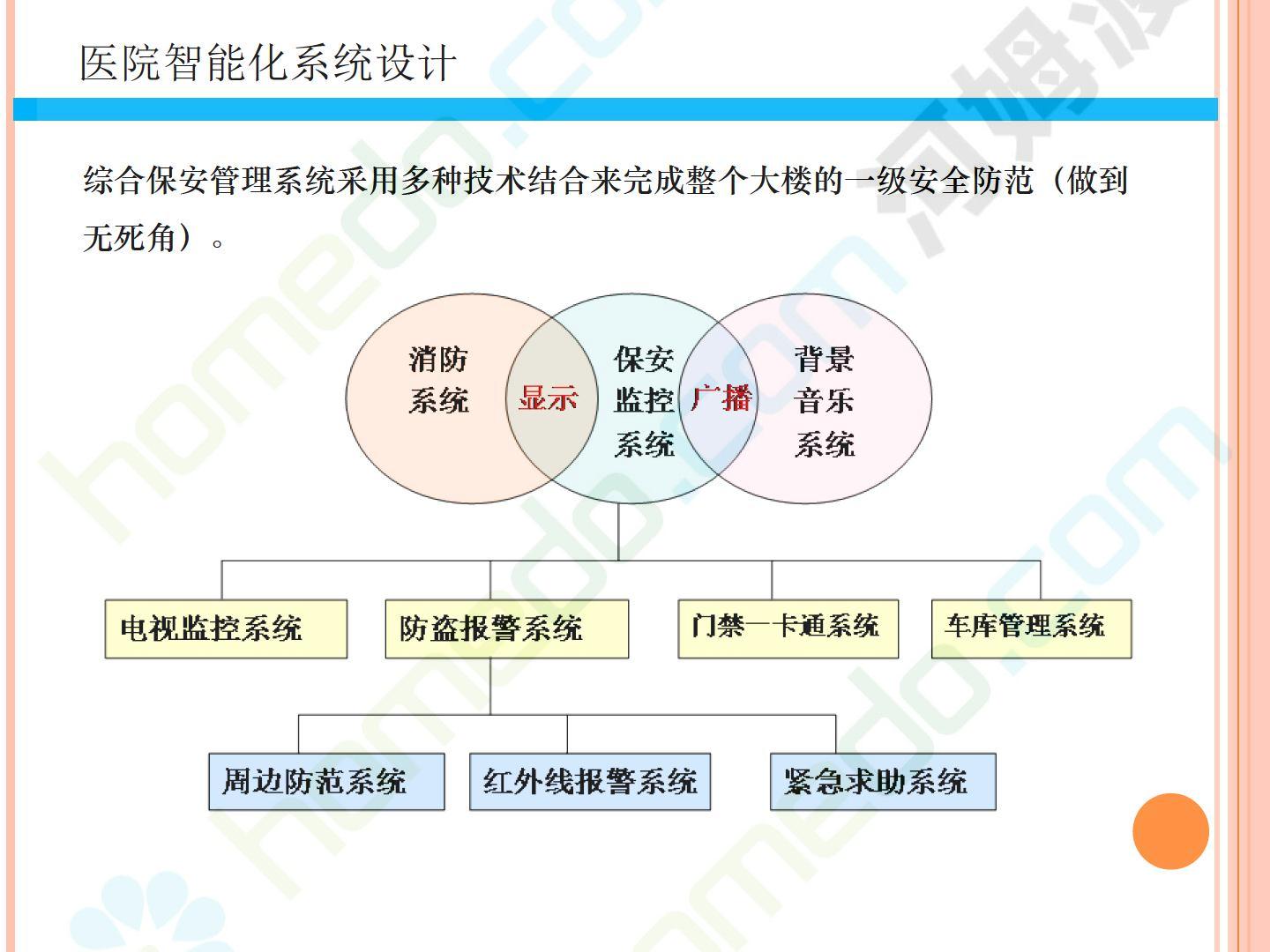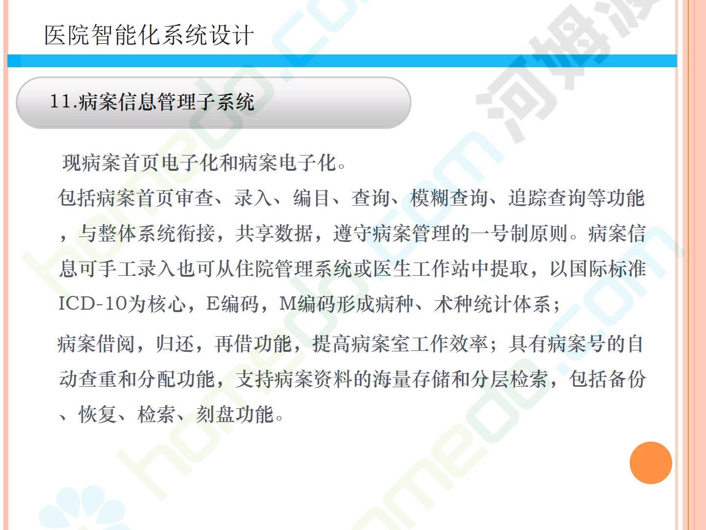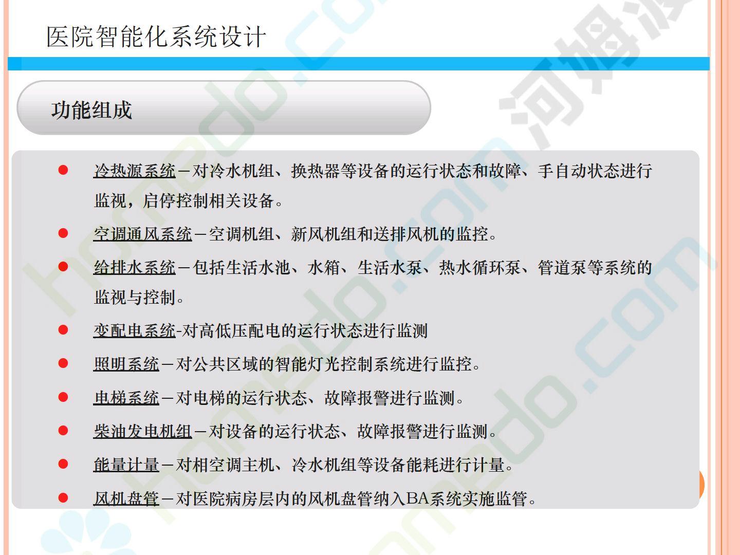 方案简介 医院建筑智能化、信息化系统的实现,提高医院服务效率,改善医疗环境,融洽医患关系,达到经济效益与社会效益的双赢。这是一个智能建筑行业应该关注的问题,也是智能化医院解决方案构建的基础和核心。