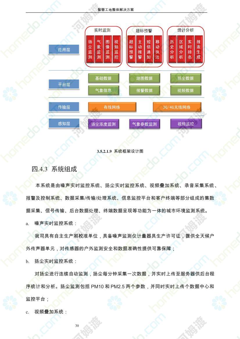 方案简介 本方案为智慧工地整体解决方案,系统基于综合管理平台,前端子系统可接入子系统包括(不限于)以下系统:视频监控系统、塔吊管理系统、环境监测系统,除此之外,平台支持通过标准接口(如OPC等)或通过SDK接入第三方设备进行联动。核心设备主要是鹰眼摄像机、塔吊安监系统。