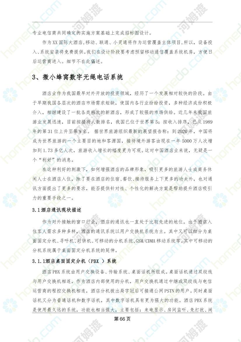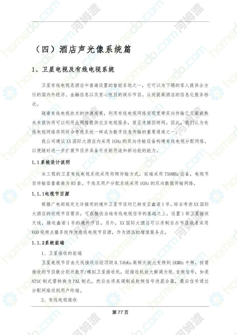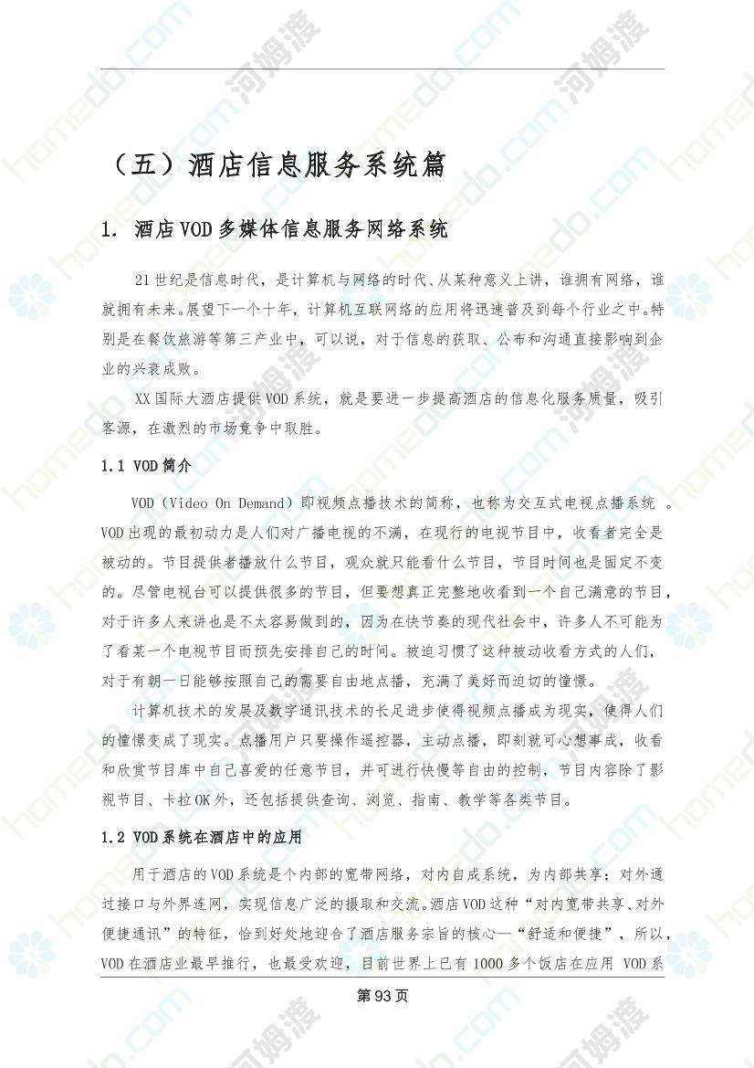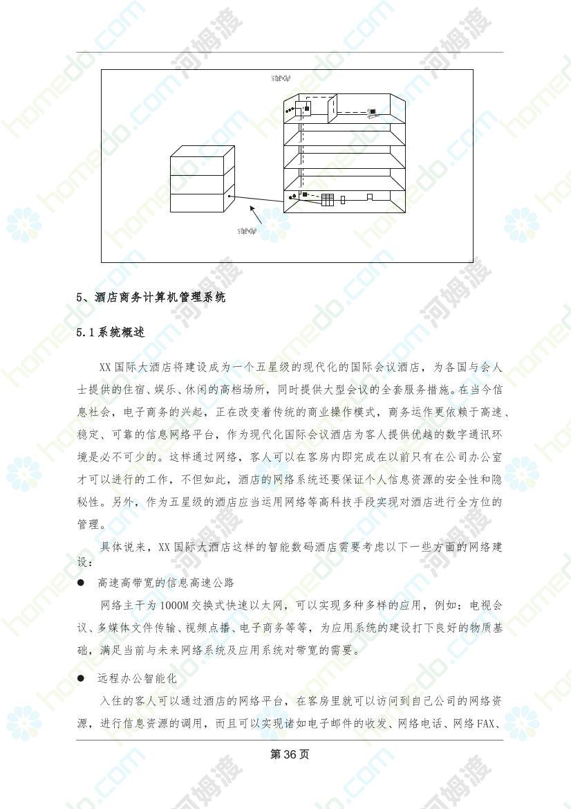 方案简介 本方案为五星级酒店弱电系统规划方案,方案内系统部分比较陈旧,但整体规划方案的架构清晰,仍具有一定参考价值。包含:酒店楼宇自控管理系统、客房管理系统、客房服务计算机实时信息管理系统、综合布线系统、酒店商务计算机管理系统、酒店机电设备集成管理系统、综合安全防范系统、程控电话交换机系统、移动通信信号覆盖系统、卫星电视及有线电视系统、数字摄录编系统等