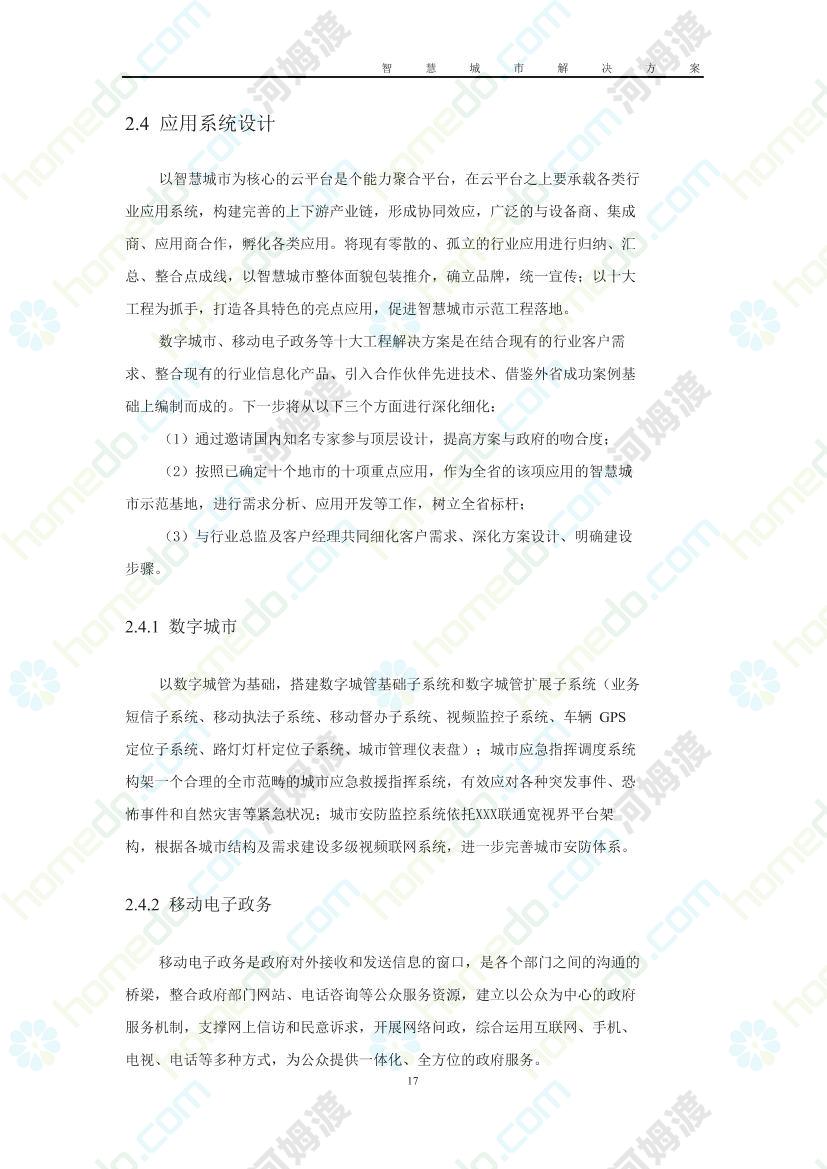 方案简介 智慧城市作为下一个万亿级的信息通信业务蓝海市场,将是XXX联通新的业 务增长点。据统计,2010 年以来,已有 20 个省近 50 个城市或地区提出了建设 “智慧城市”的目标和规划,旨在利用信息技术加强城市管理、改善城市服务、 完善城市功能。在此背景下,XXX联通积极响应政府提出的城市化发展策略,把 “智慧城市”作为业务发展重点,从行业应用切入,帮助政府落实规划,提高政 绩,达到 “强政、兴业、惠民”的最终目的。 XXX联通积极参与智慧城市建设,意义重大,具体如下: (1)以行业应用产品引领市场转型,提升核心竞争力,推动可持续经营。 抓住城市信息化机遇,依托行业应用,有效发挥基础资源及 3G