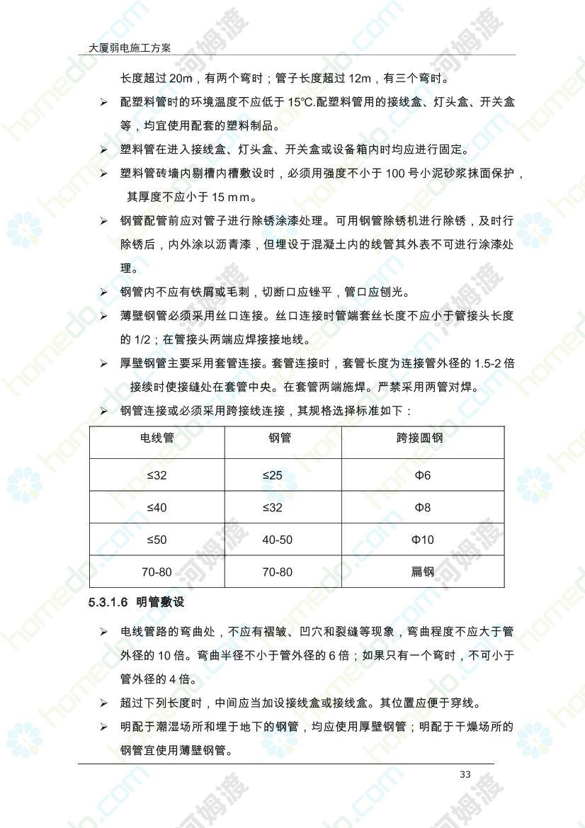 方案简介 本施工组织设计系本公司对大厦弱电系统工程施工的总体构思和部署,各单项工程的施工方案将依据本公司技术管理程序,在图纸会审之后,按照本大纲确定的基本原则,进一步完善细化,用以具体指导施工,确保本工程优质高速地建成。