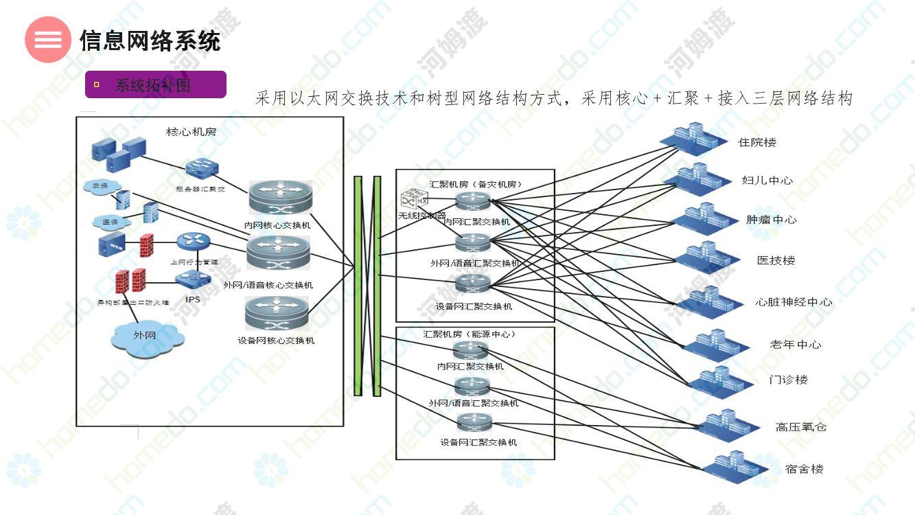 方案简介 重点介绍医院智能化弱电系统的规划及具体构成。鉴于篇幅限制,如有需要对医院医疗辅助系统了解的朋友,欢迎前往“医院医疗辅助系统技术方案介绍”